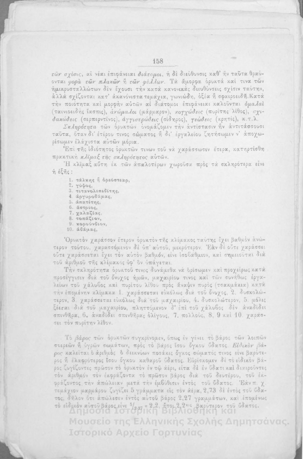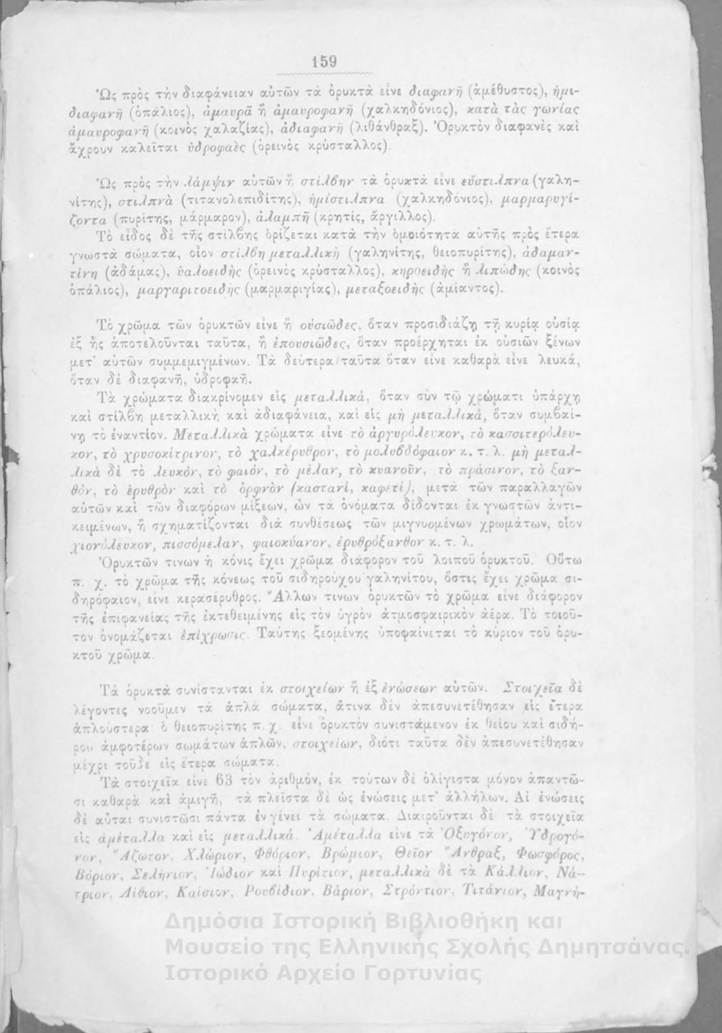 Βιβλίο Γεωλογίας/Ορυκτολογίας για την Δ΄ τάξη των Εξαταξίων Γυμνασίων που παρουσιάζει τα ορυκτά με βάση την κλάση στην οποία ανήκουν. Το τμήμα της γεωλογίας εστιάζει στους γεωλογικούς αιώνες, Ο συγγραφέας ήταν