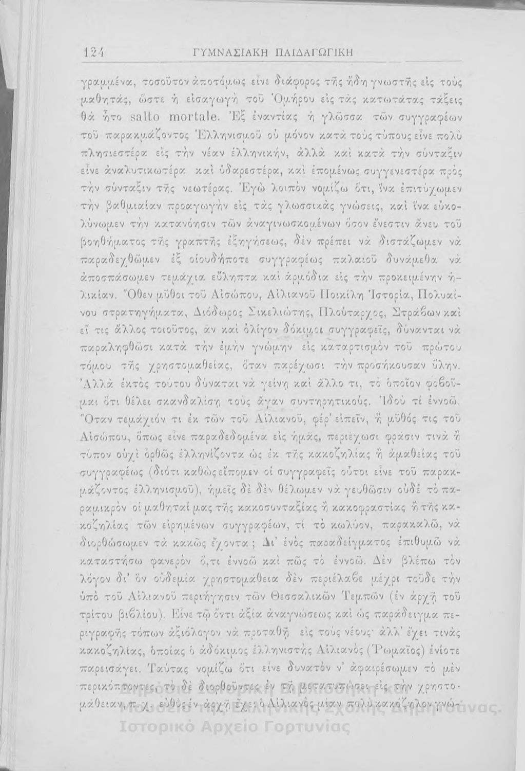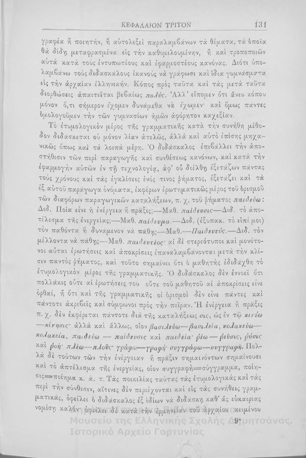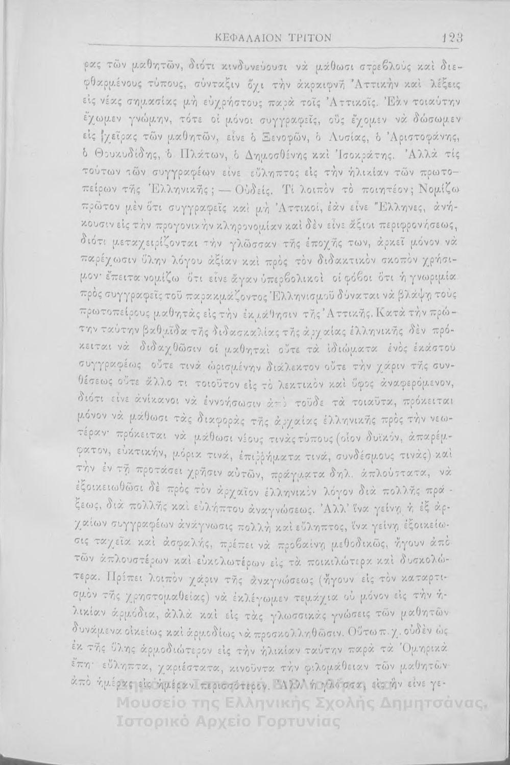 Βαθμίδα εκπαίδευσης: Δευτεροβάθμια Γλώσσα: Καθαρεύουσα |