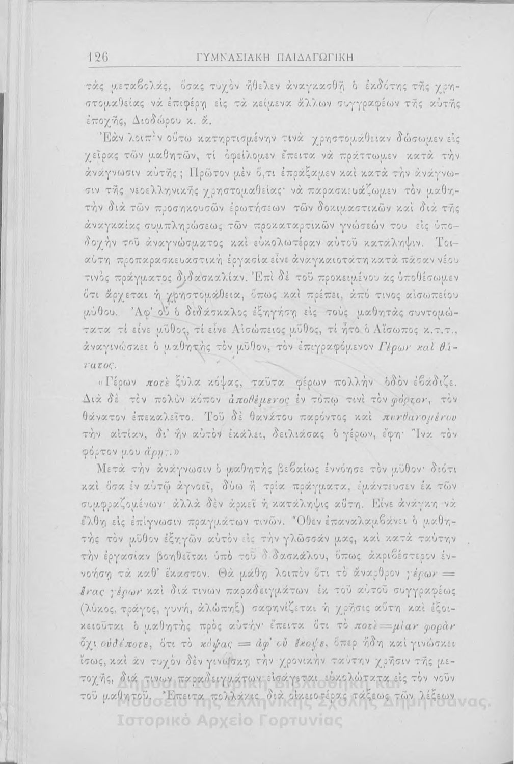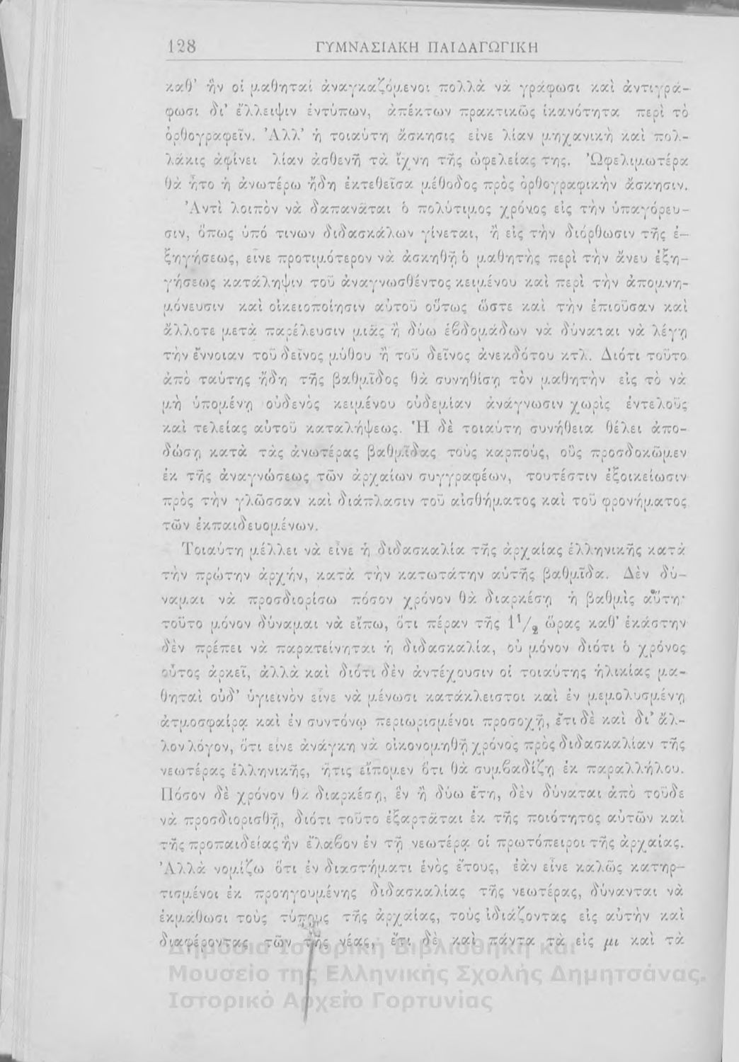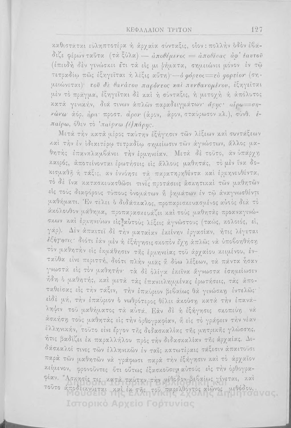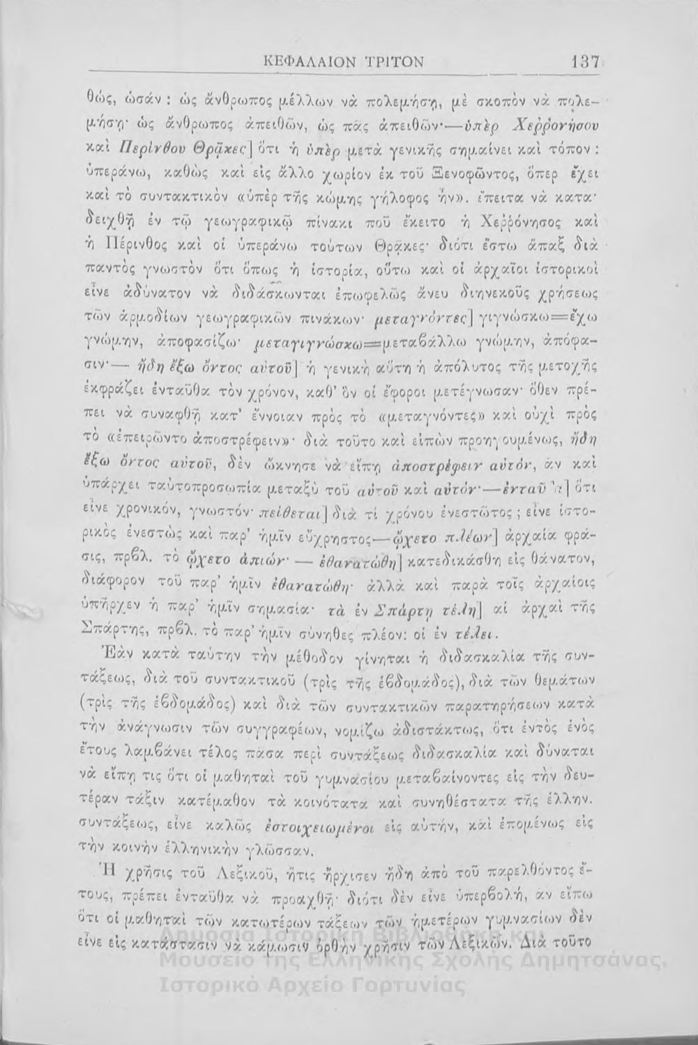Βαθμίδα εκπαίδευσης: Δευτεροβάθμια Γλώσσα: Καθαρεύουσα |