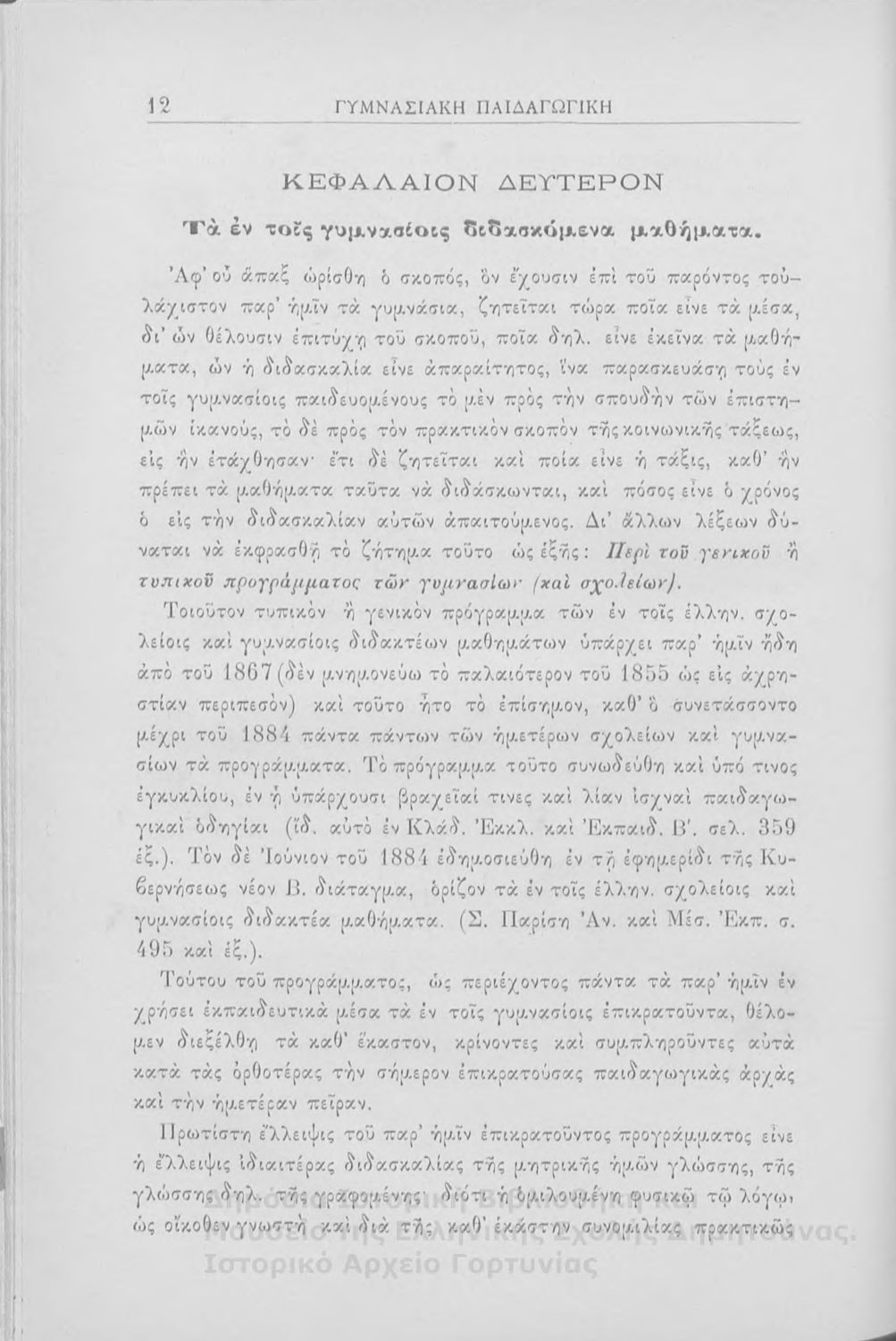 Γυμνασιακή παιδαγωγική : προς χρήσιν των τε φοιτητών της φιλολογίας και πάντων εν γένει των διδασκάλων της μέσης εκπαιδεύσεως