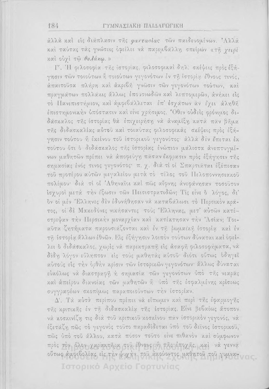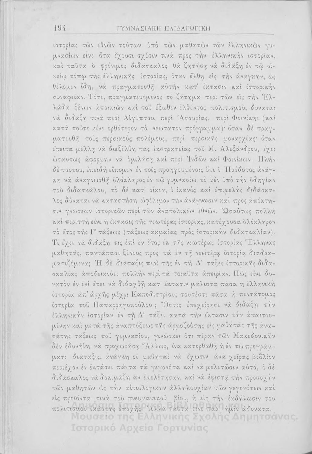 Κωδικός αναγνώρισης: 61-60842 Τίτλος: Γυμνασιακή παιδαγωγική : προς χρήσιν των τε φοιτητών της φιλολογίας και πάντων εν γένει των διδασκάλων της μέσης εκπαιδεύσεως Συγγραφέας: Ιωάννης Πανταζίδης Μέγεθος και υπόστρωμα: Παιδαγωγικό βοήθημα. |