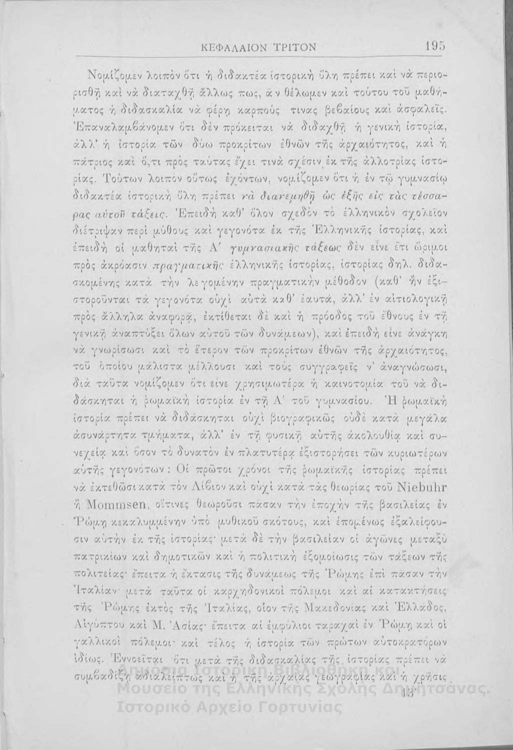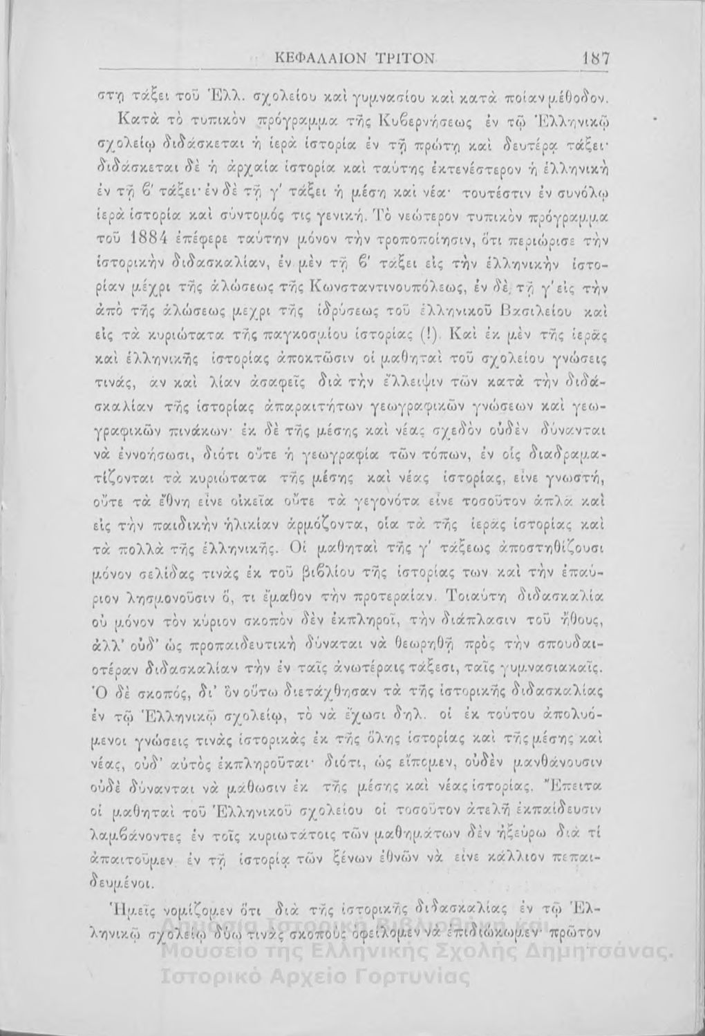 Βαθμίδα εκπαίδευσης: Δευτεροβάθμια Γλώσσα: Καθαρεύουσα |