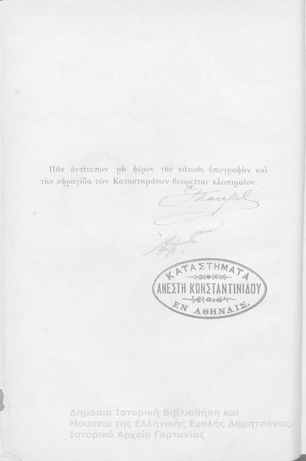 Εκδότης: Εκ του τυπογραφείου των καταστημάτων Ανέστη Κωνσταντινίδου