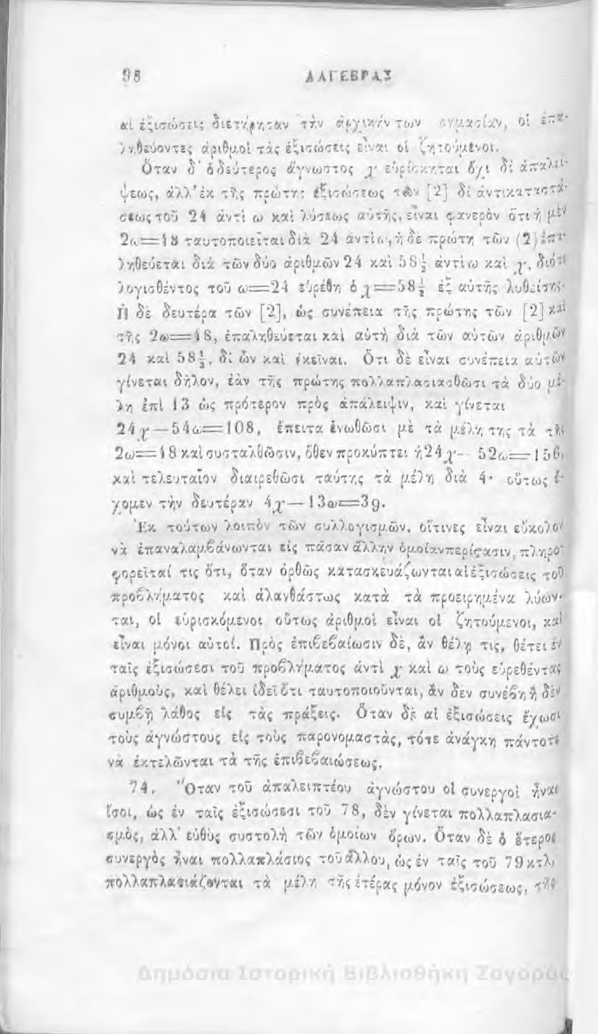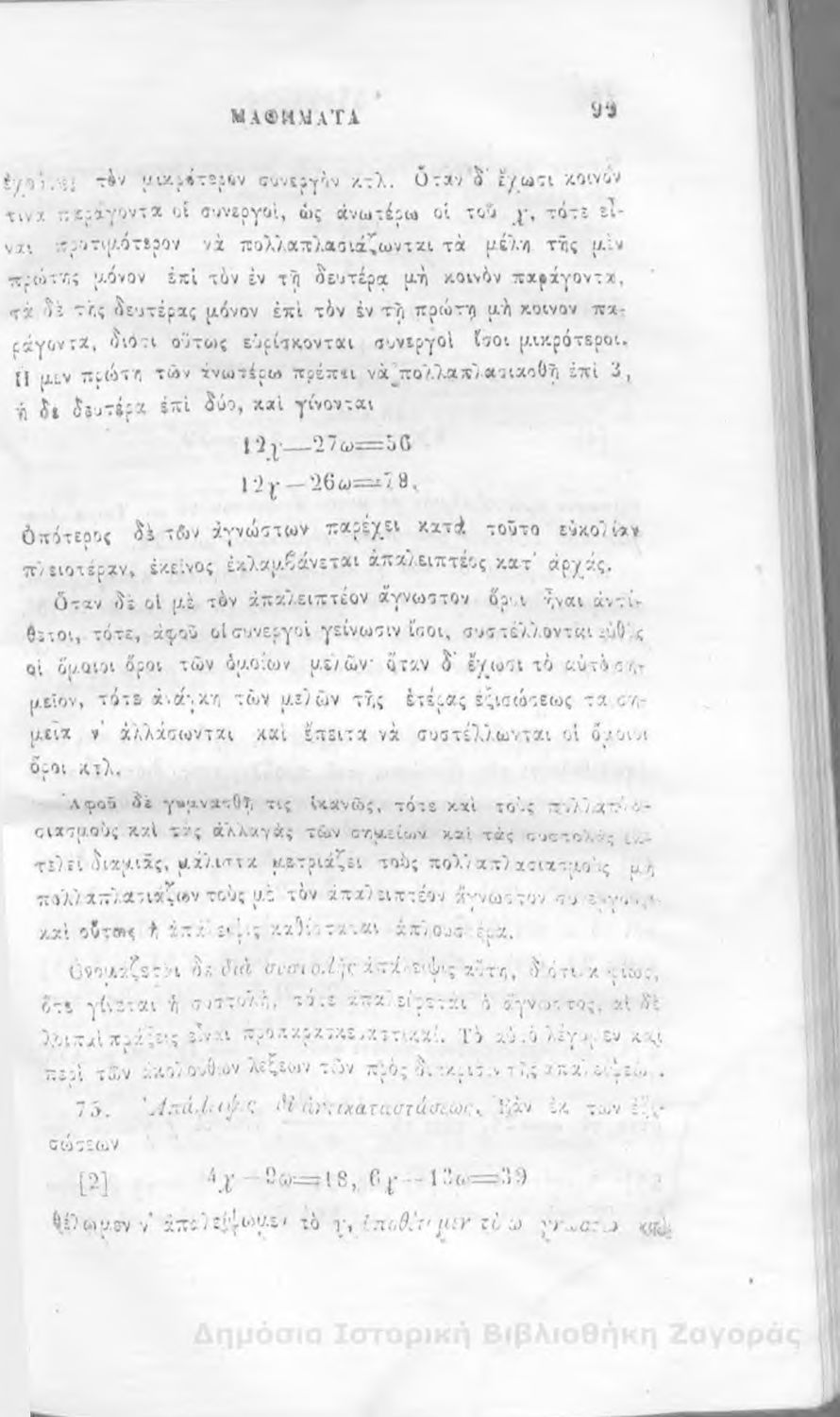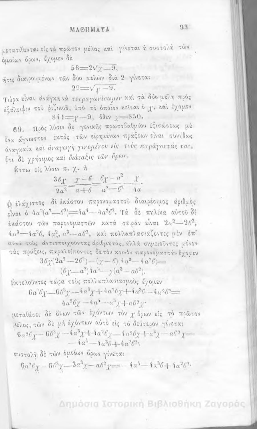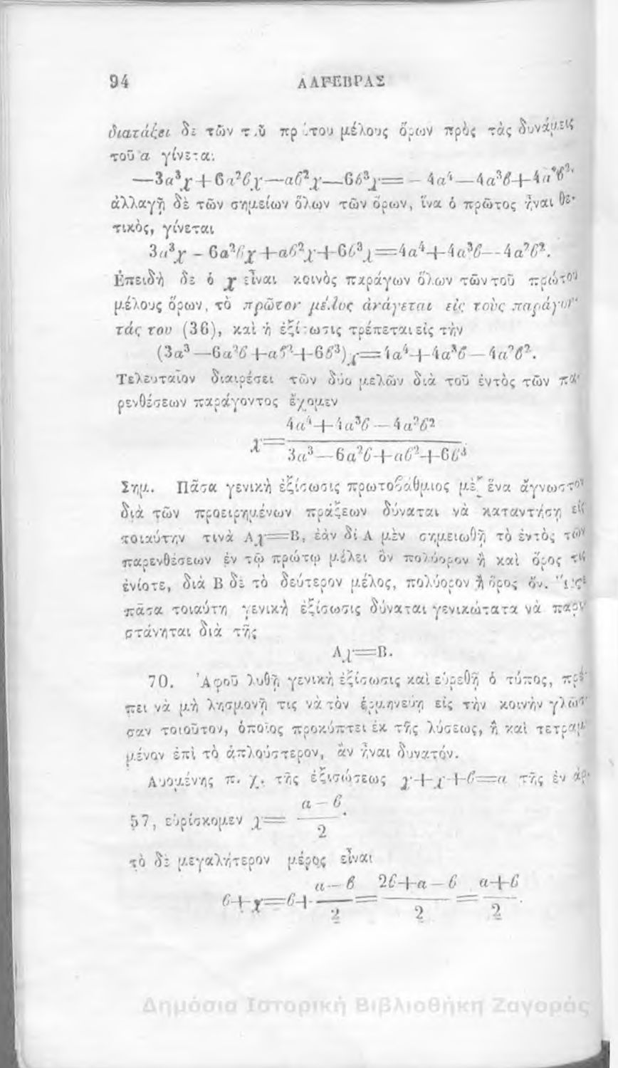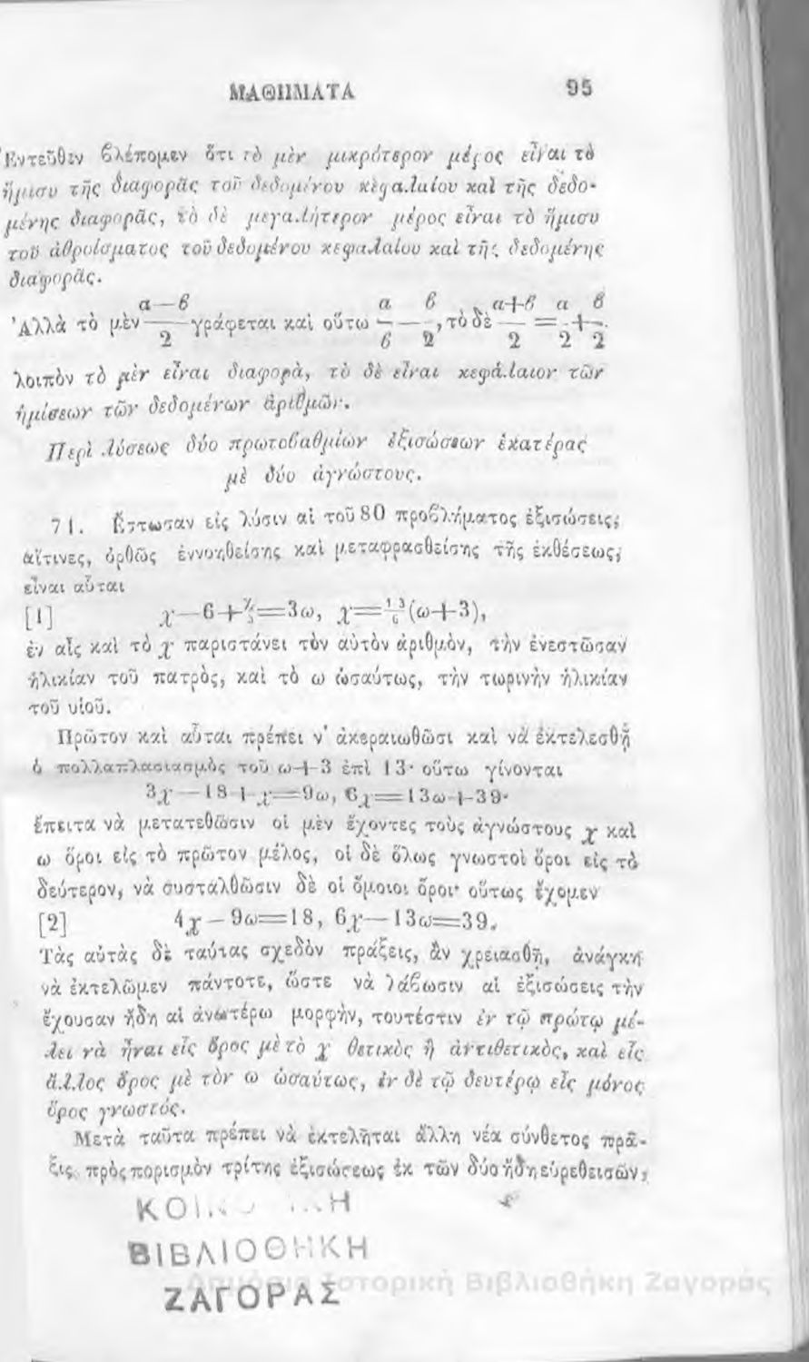 Βαθμίδα εκπαίδευσης: Δευτεροβάθμια Μάθημα: Άλγεβρα Γλώσσα: Καθαρεύουσα |