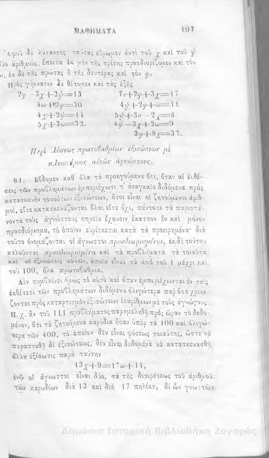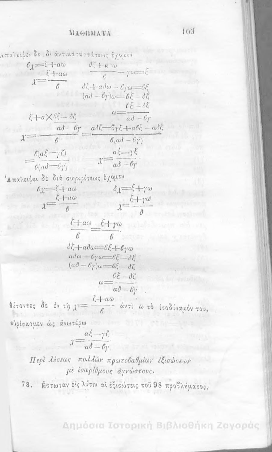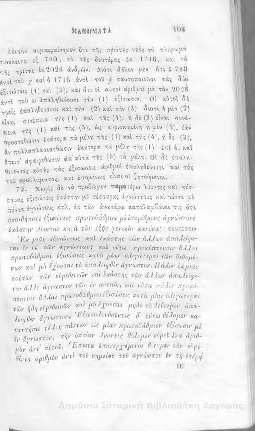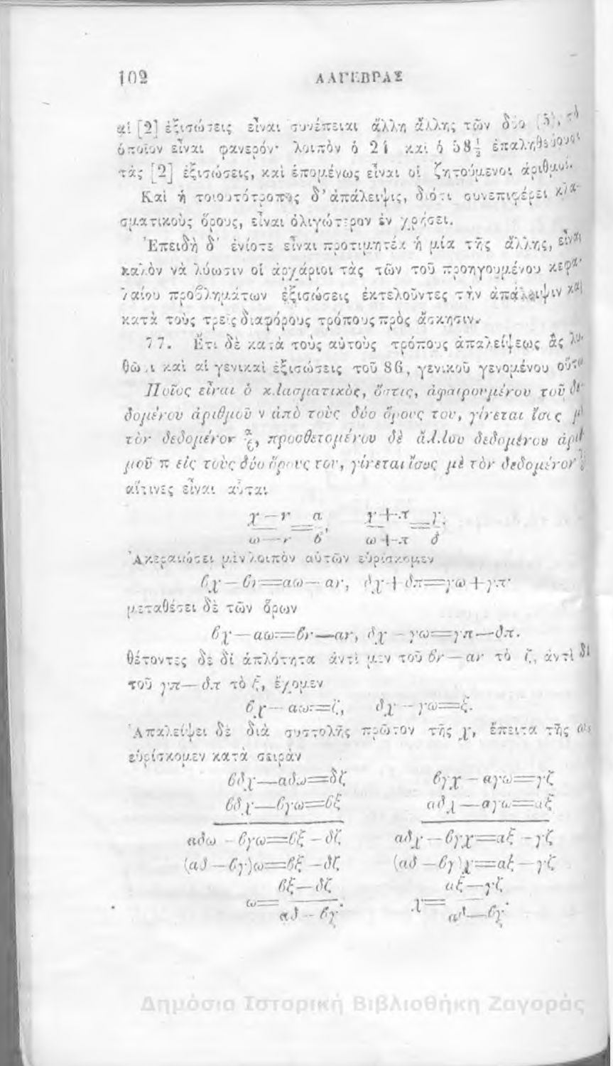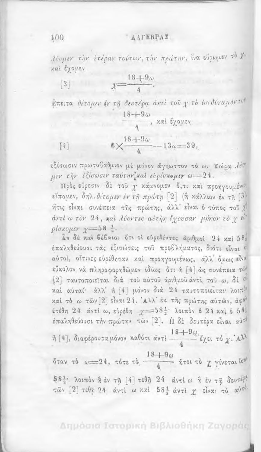 Βαθμίδα εκπαίδευσης: Δευτεροβάθμια Μάθημα: Άλγεβρα Γλώσσα: Καθαρεύουσα |