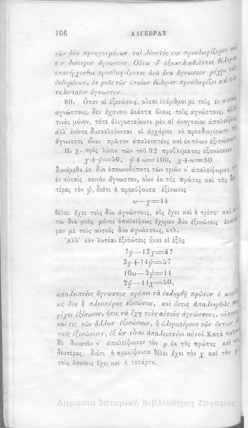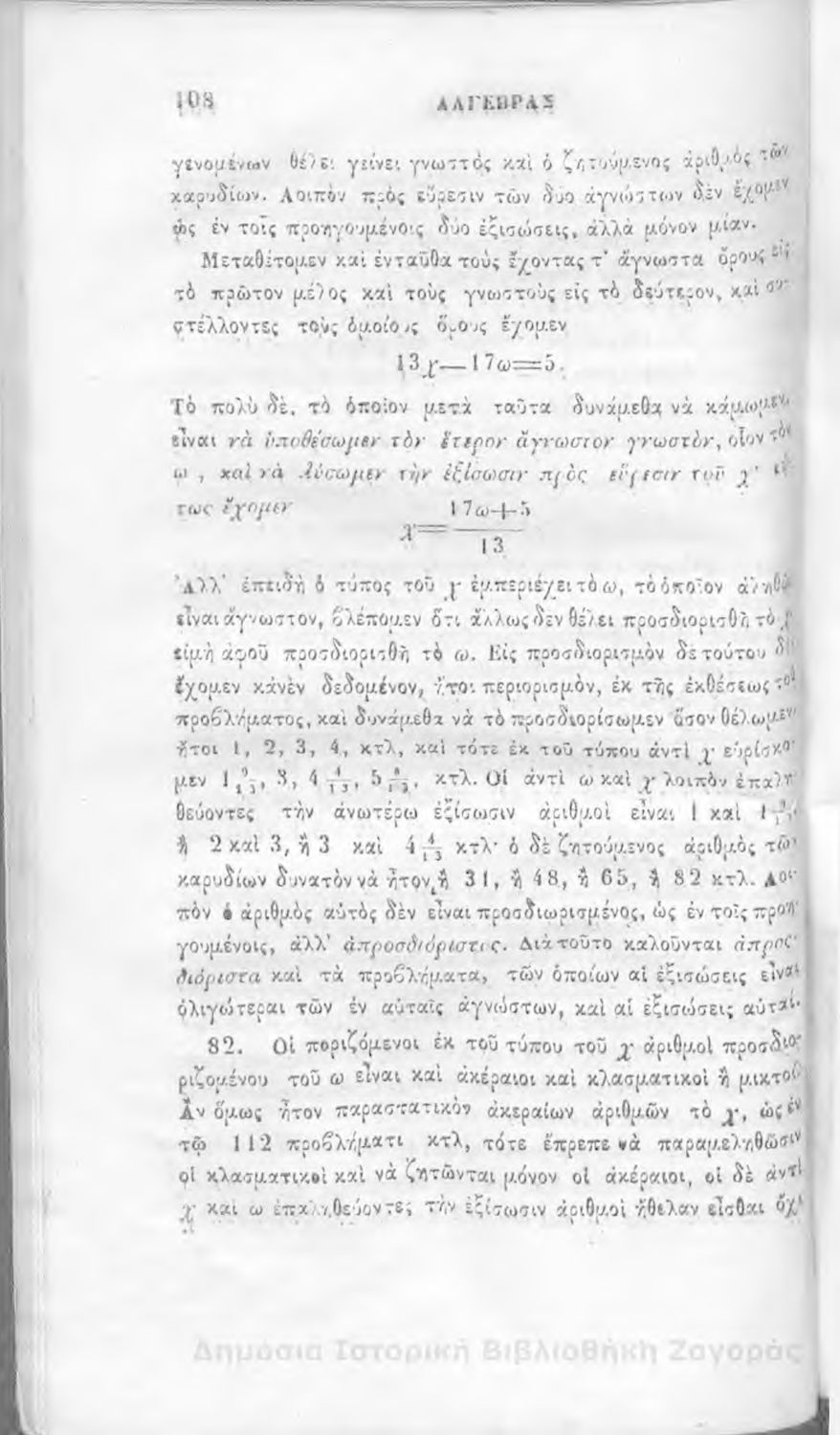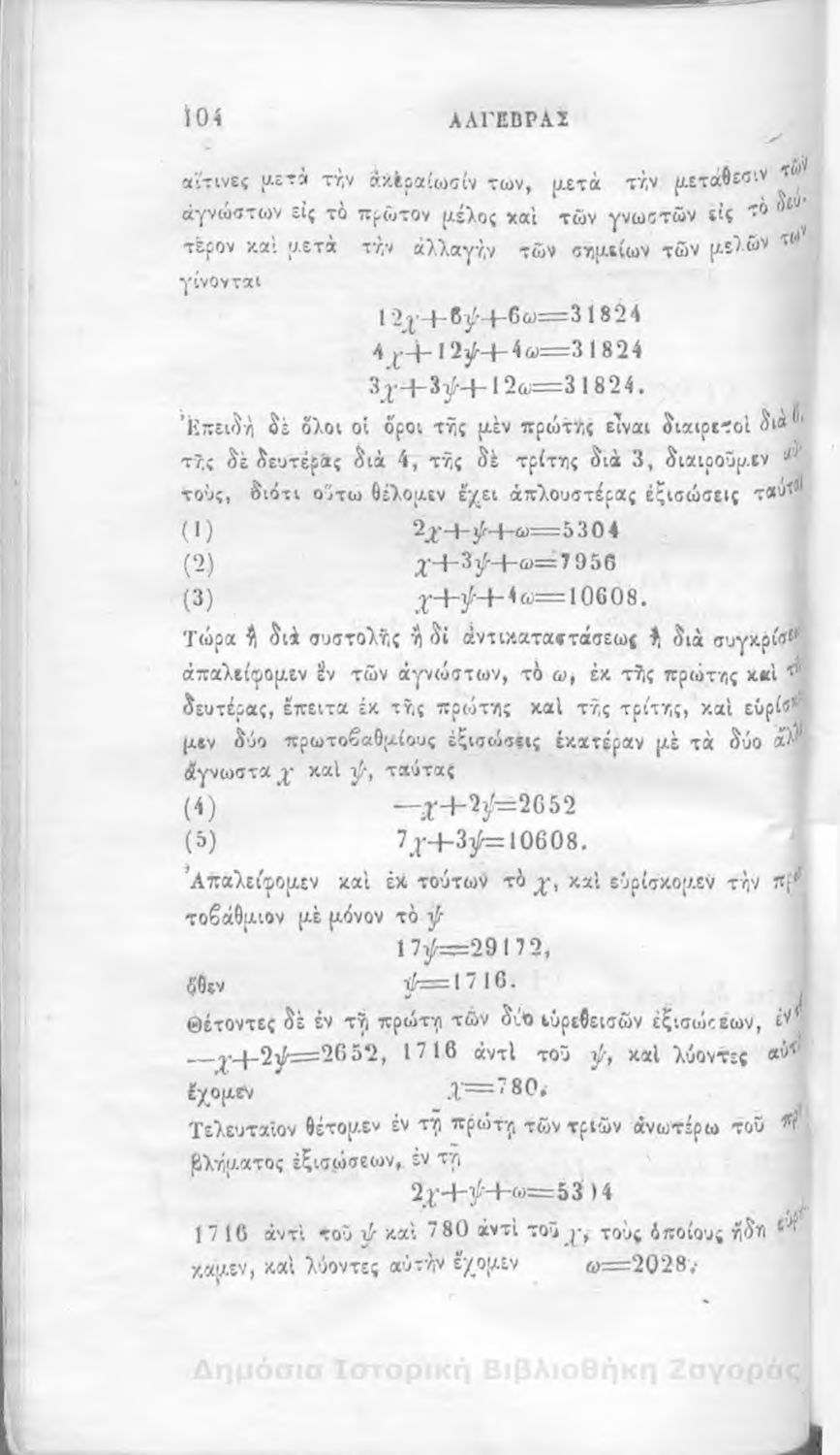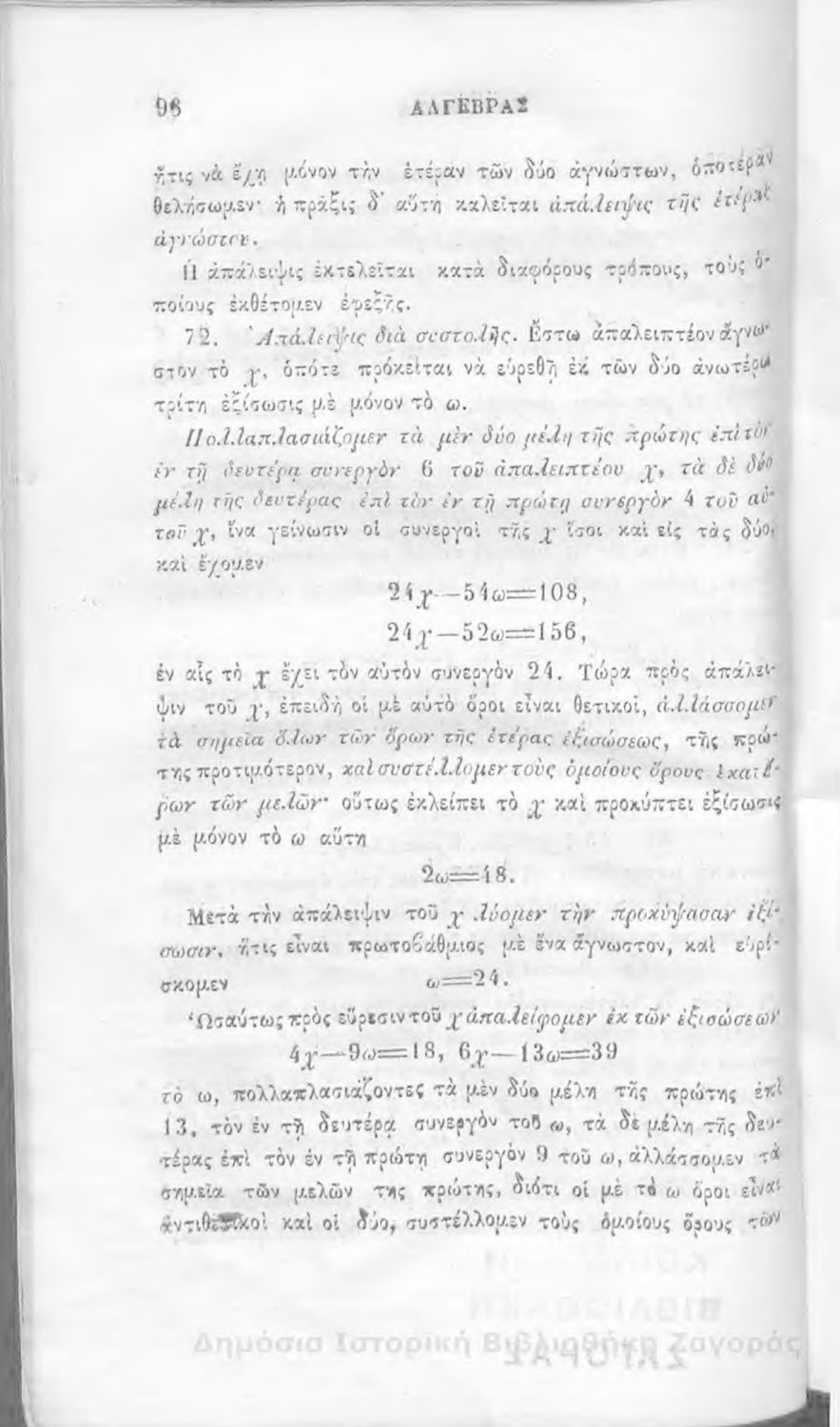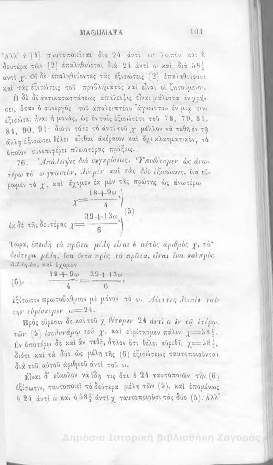 Βαθμίδα εκπαίδευσης: Δευτεροβάθμια Μάθημα: Άλγεβρα Γλώσσα: Καθαρεύουσα |