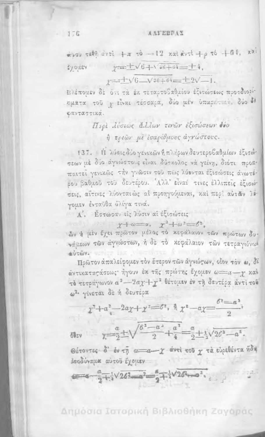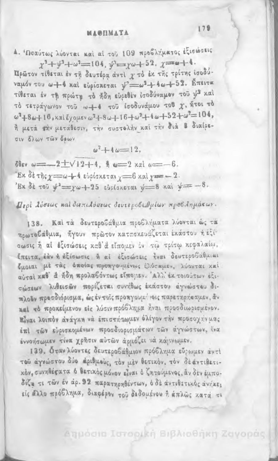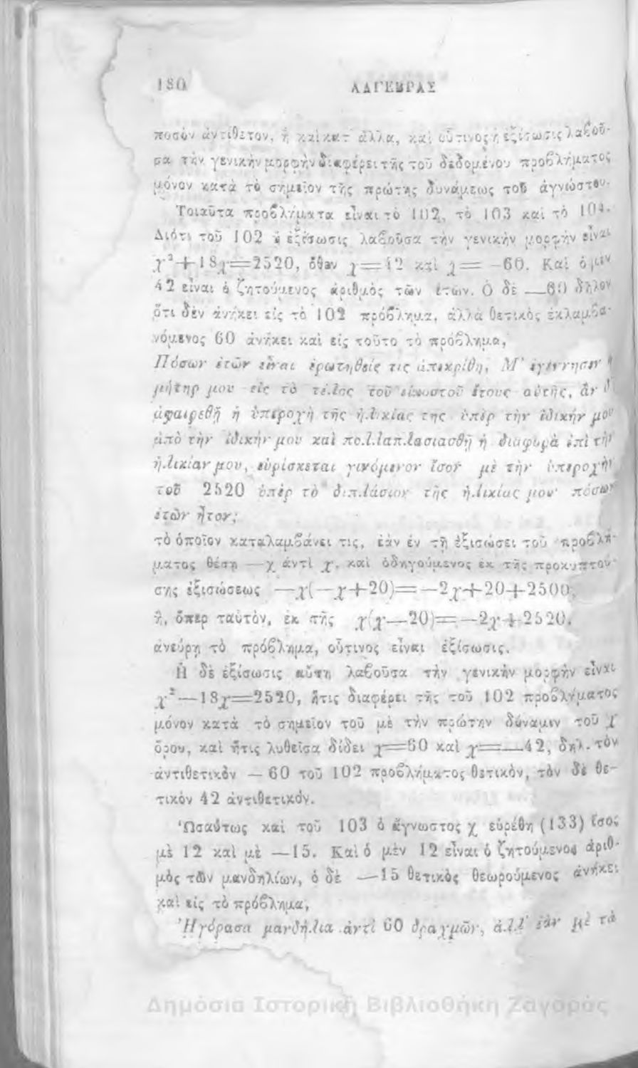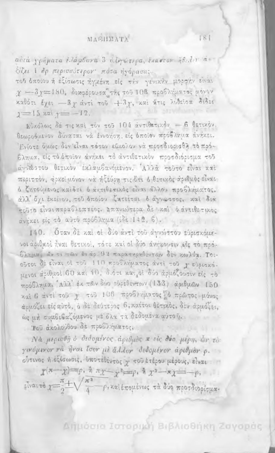 Βαθμίδα εκπαίδευσης: Δευτεροβάθμια Μάθημα: Άλγεβρα Γλώσσα: Καθαρεύουσα |