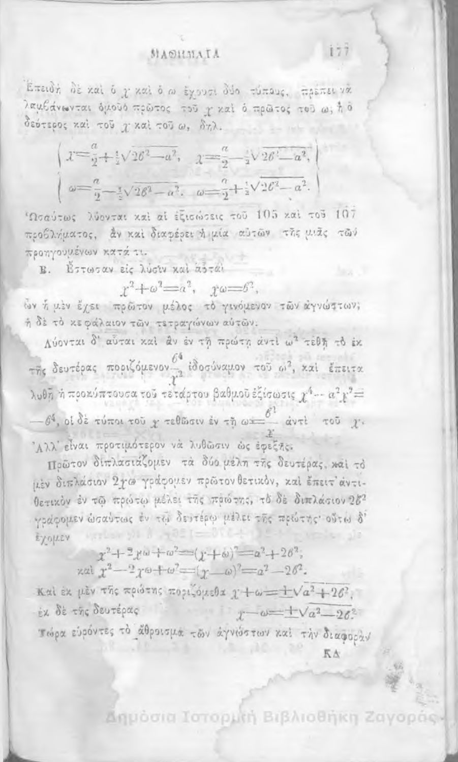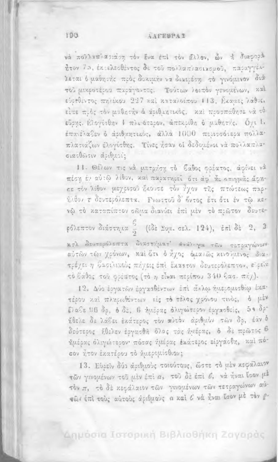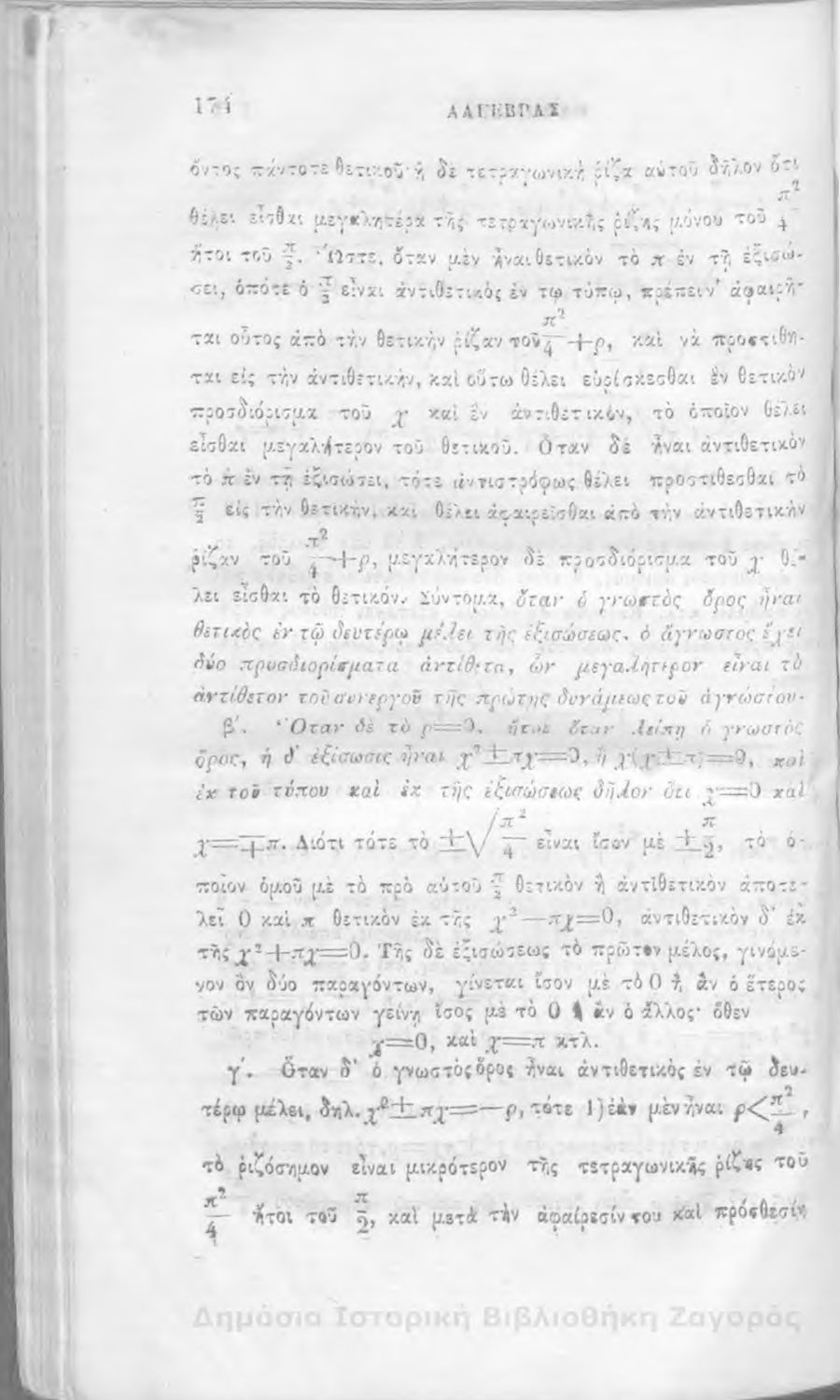 Βαθμίδα εκπαίδευσης: Δευτεροβάθμια Μάθημα: Άλγεβρα Γλώσσα: Καθαρεύουσα |