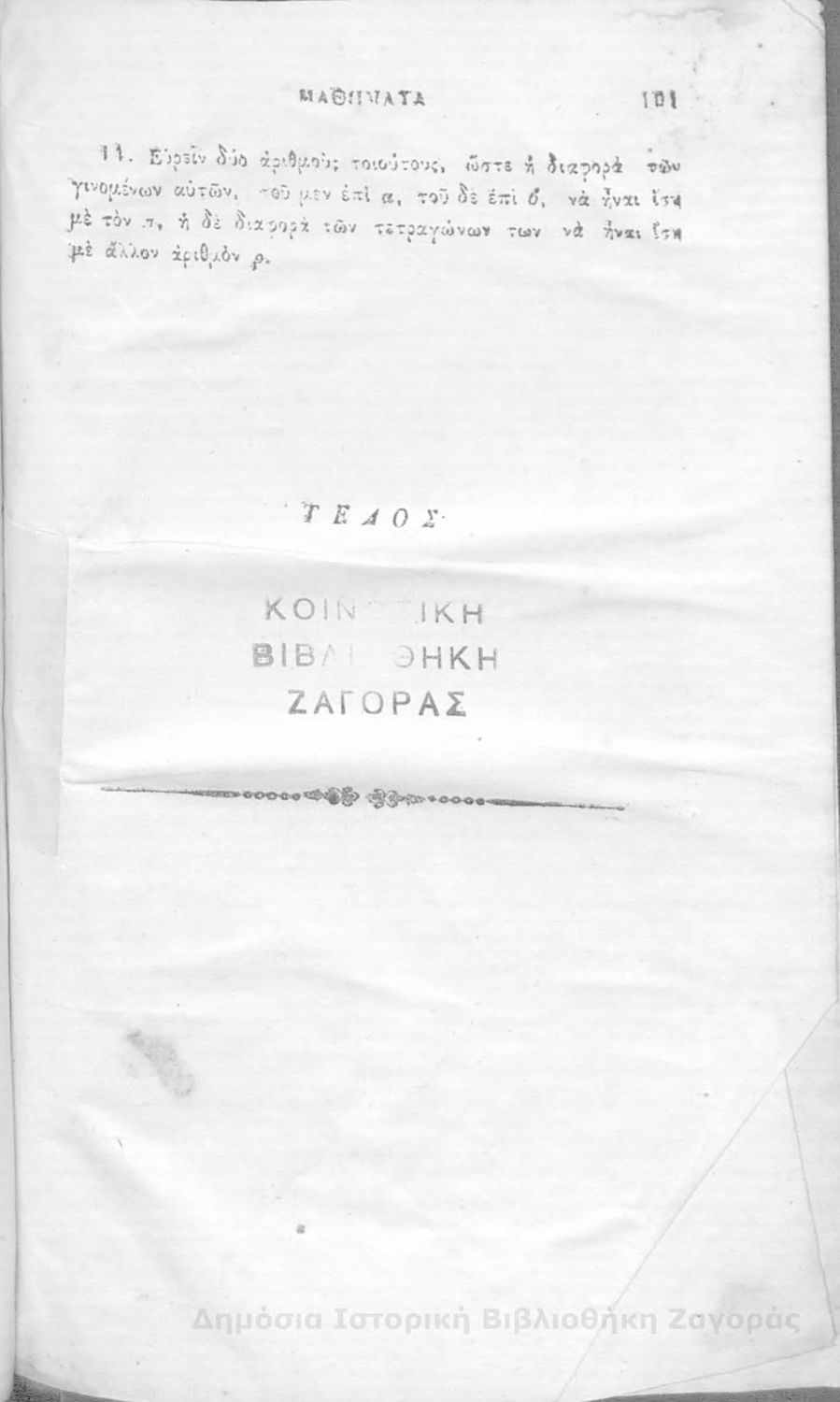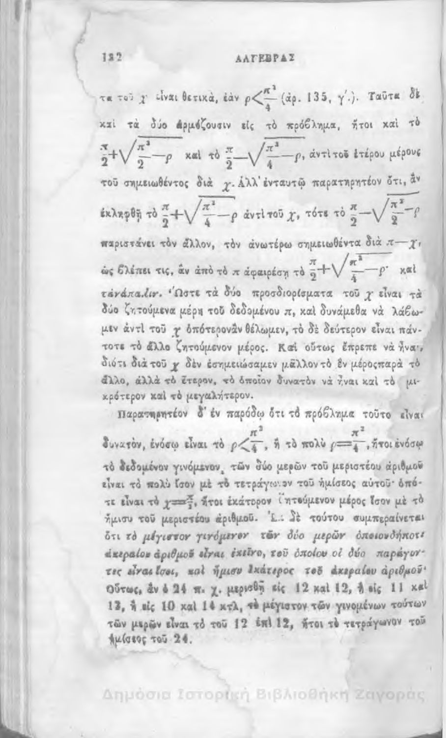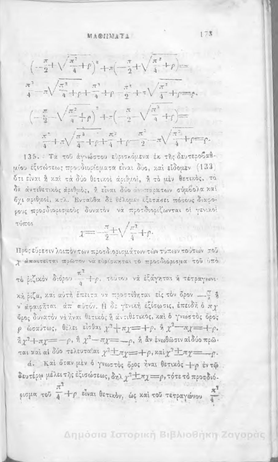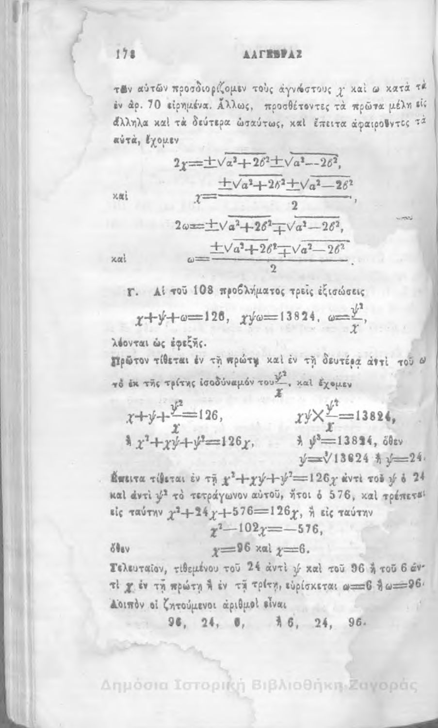 Βαθμίδα εκπαίδευσης: Δευτεροβάθμια Μάθημα: Άλγεβρα Γλώσσα: Καθαρεύουσα |