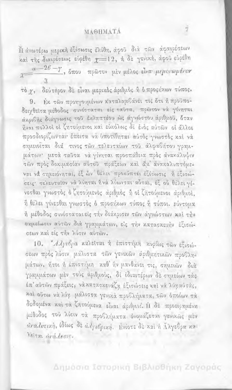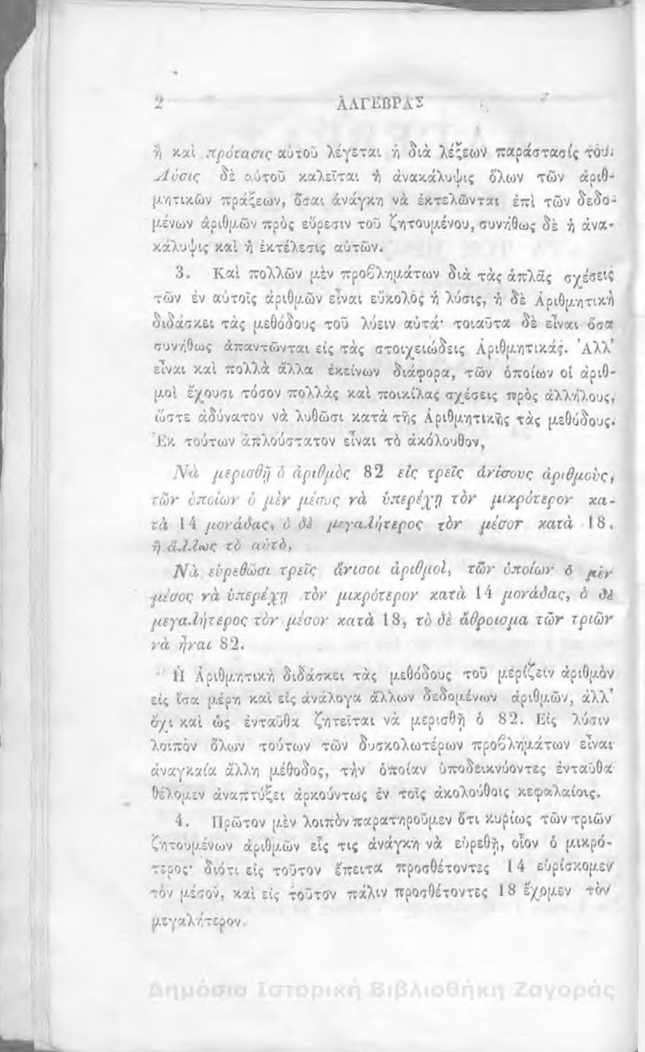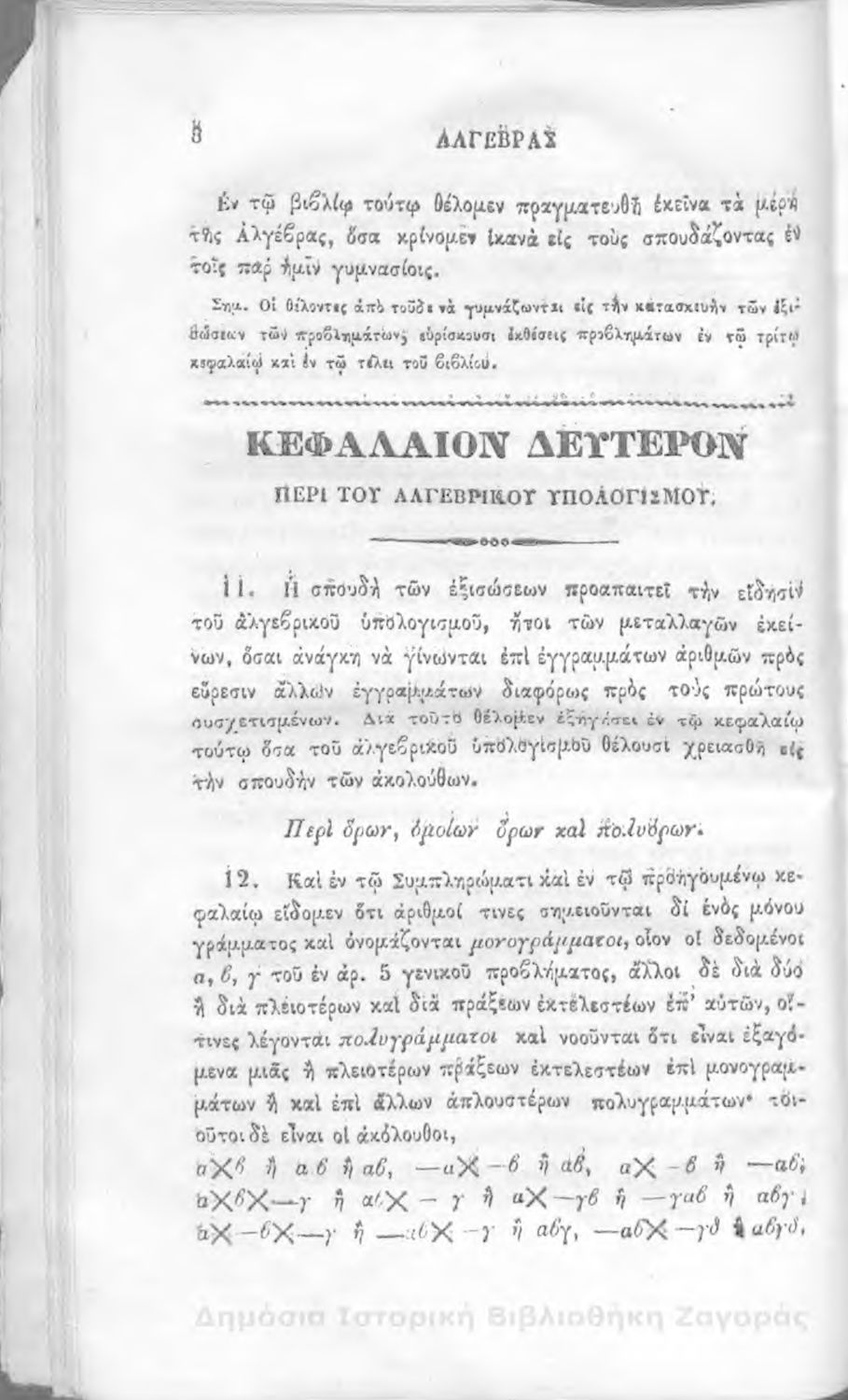 Βαθμίδα εκπαίδευσης: Δευτεροβάθμια Μάθημα: Άλγεβρα Γλώσσα: Καθαρεύουσα |