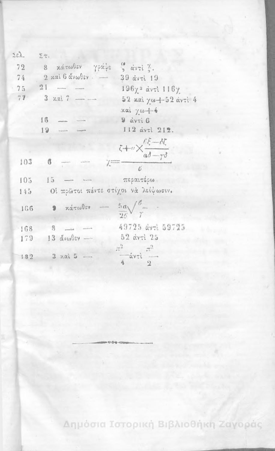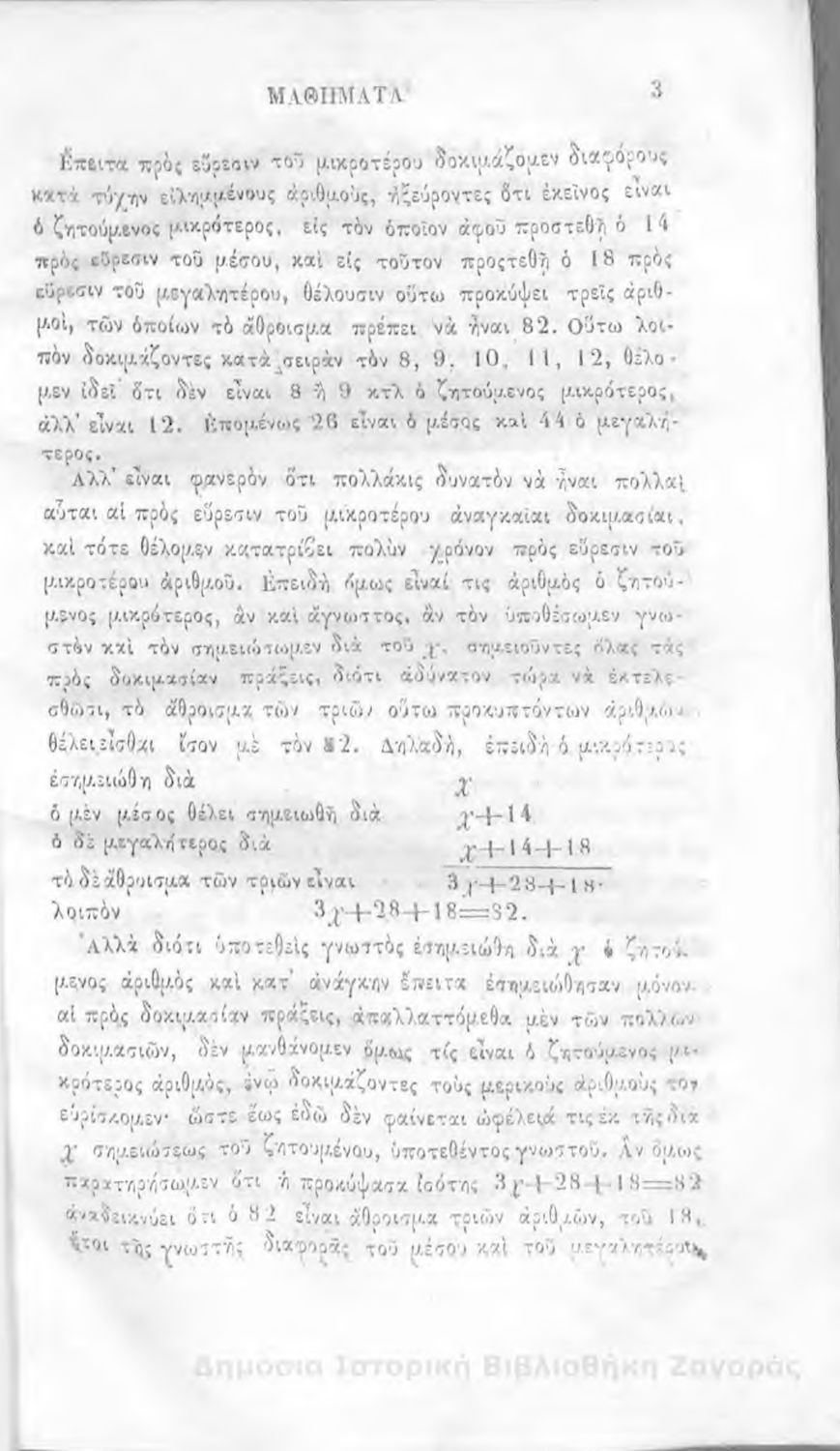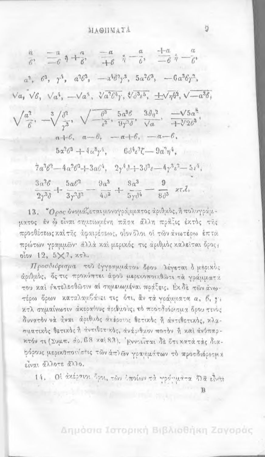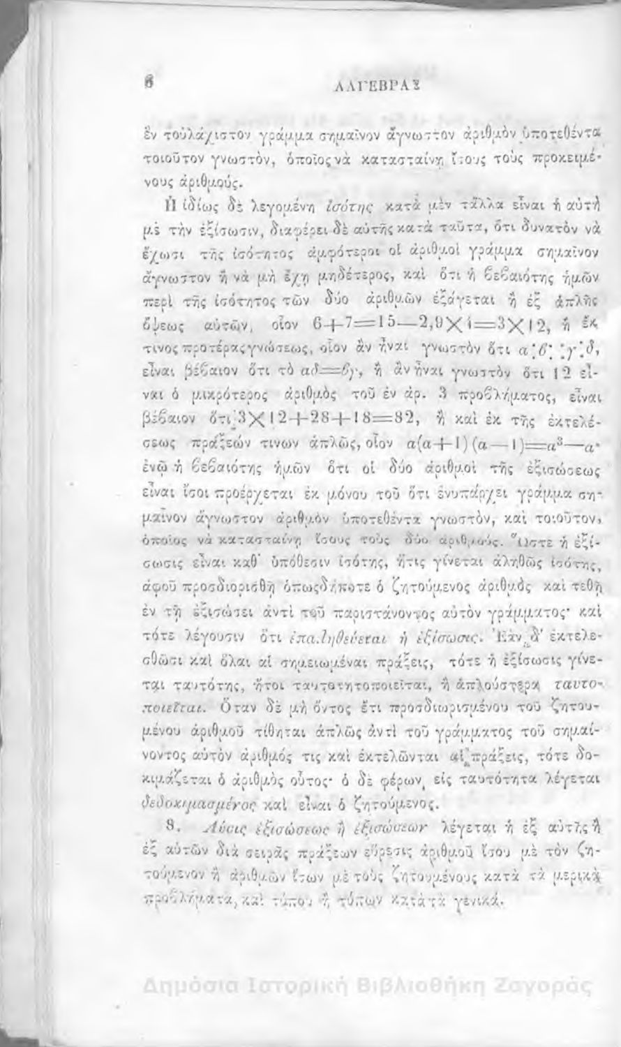 Βαθμίδα εκπαίδευσης: Δευτεροβάθμια Μάθημα: Άλγεβρα Γλώσσα: Καθαρεύουσα |
