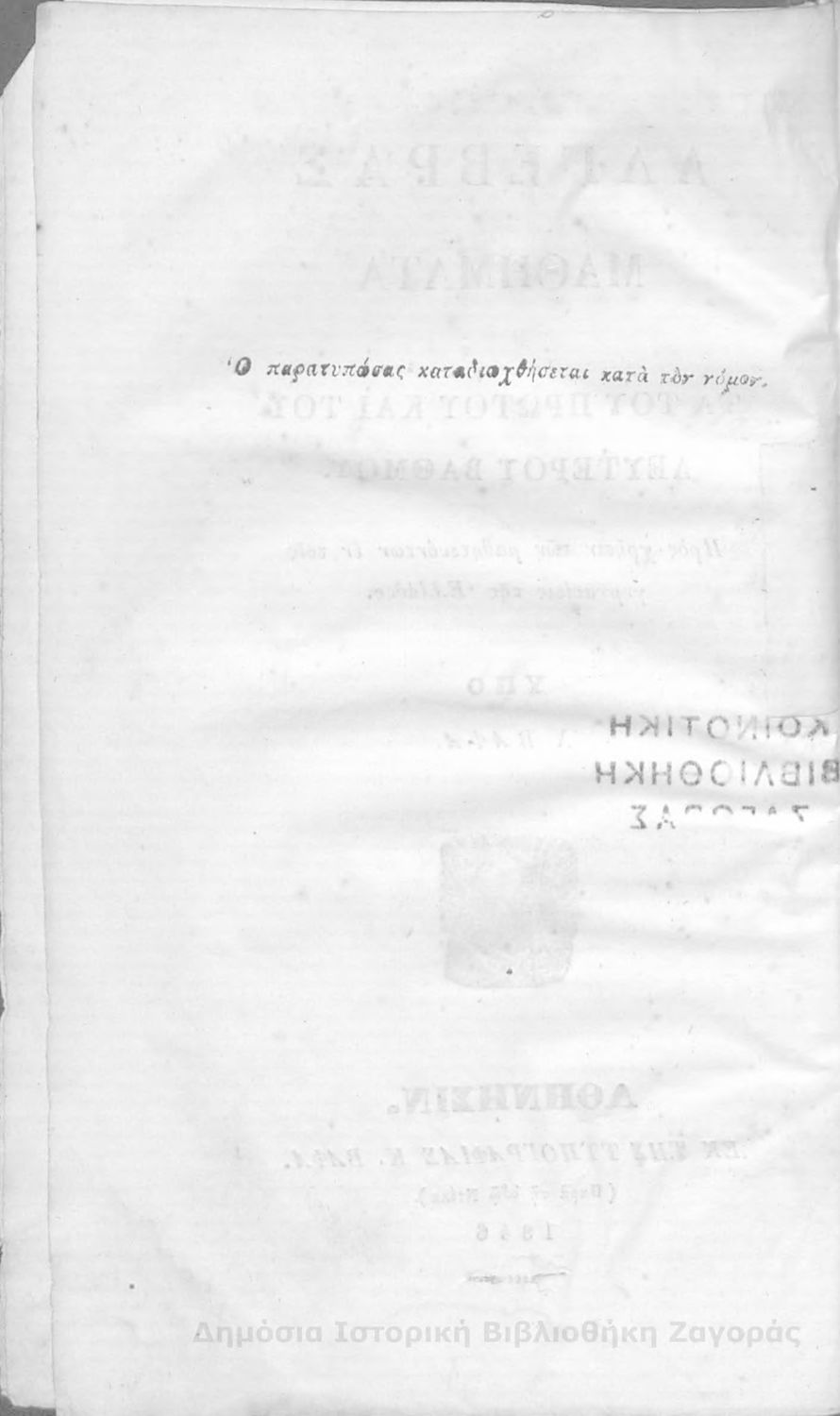 Εκδότης: Εκ της τυπογραφείας Κ. Βάφα Έτος έκδοσης: 1846 |