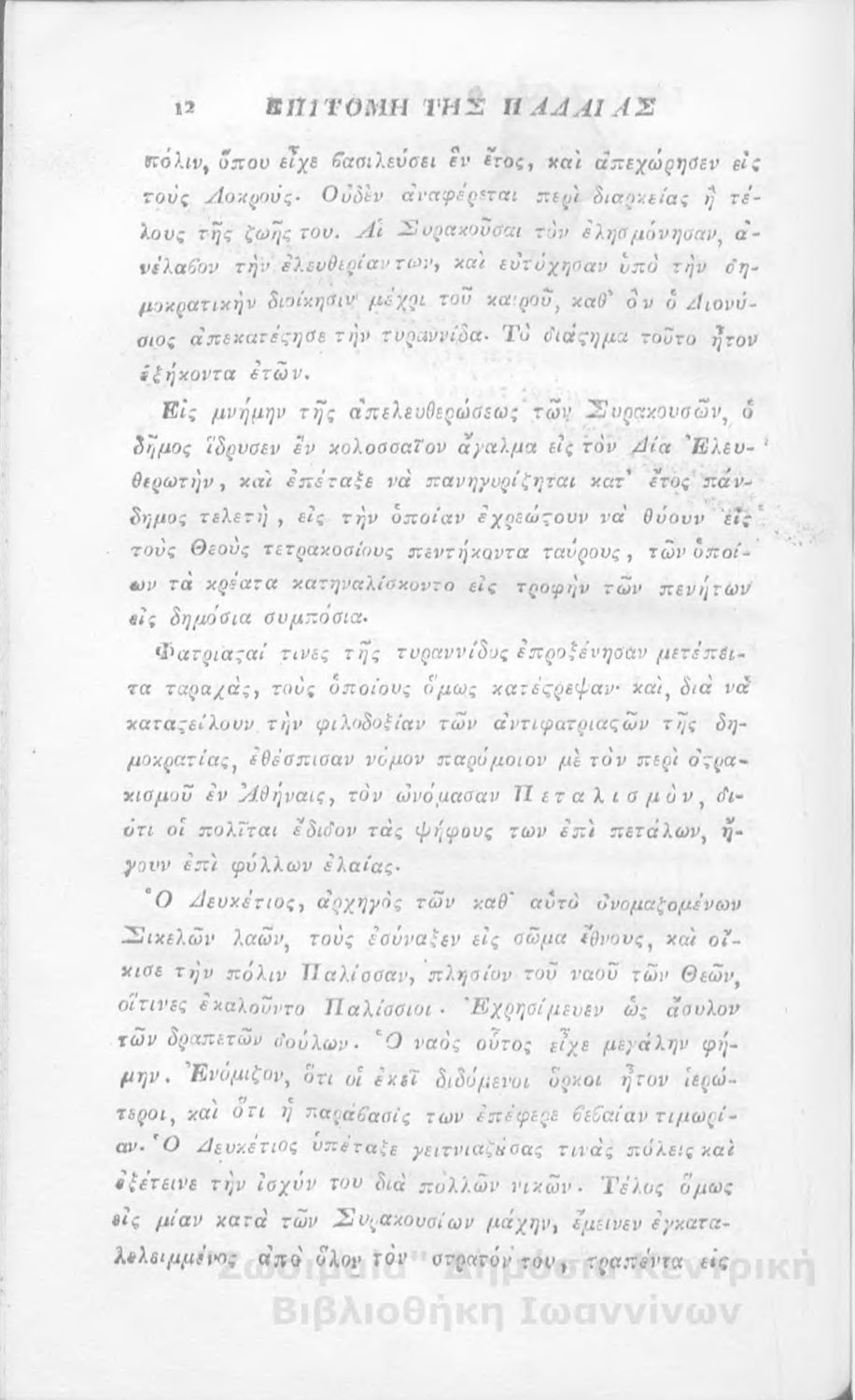 Τίτλος: Επιτομή της παλαιάς ιστορίας της Ελλάδος, προς χρήσιν της νεολαίας