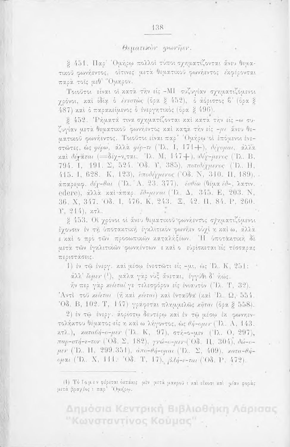 Γραμματική Ομηρική : Προς χρήσιν των εν τοις γυμνασίοις μαθητών και των φιλολόγων