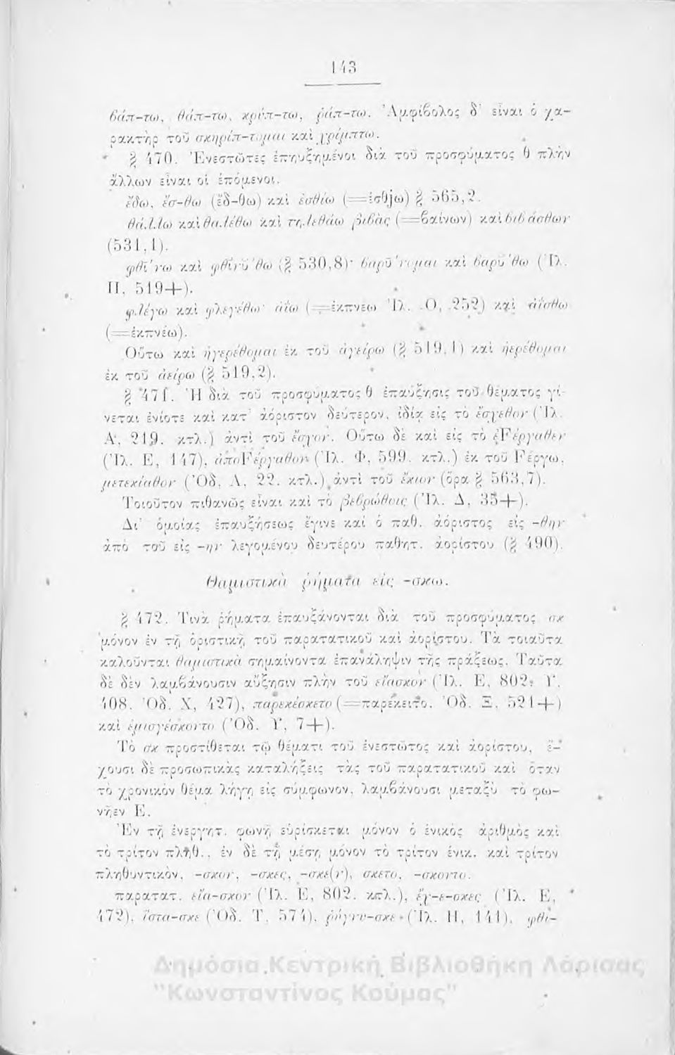 Μαθητικό βοήθημα Αρχαίων Ελληνικών για τα Ελληνικά Σχολεία, Παρθεναγωγεία και Γυμνάσια που περιλαμβάνει γραμματική της αρχαίας ελληνικής και κατάλογο ανωμάλων ρημάτων.