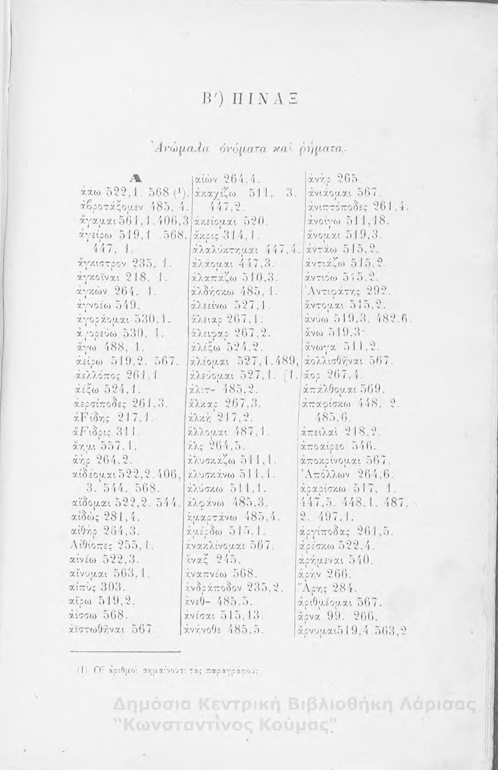 Μαθητικό βοήθημα Αρχαίων Ελληνικών για τα Ελληνικά Σχολεία, Παρθεναγωγεία και Γυμνάσια που περιλαμβάνει γραμματική της αρχαίας ελληνικής και κατάλογο ανωμάλων ρημάτων.