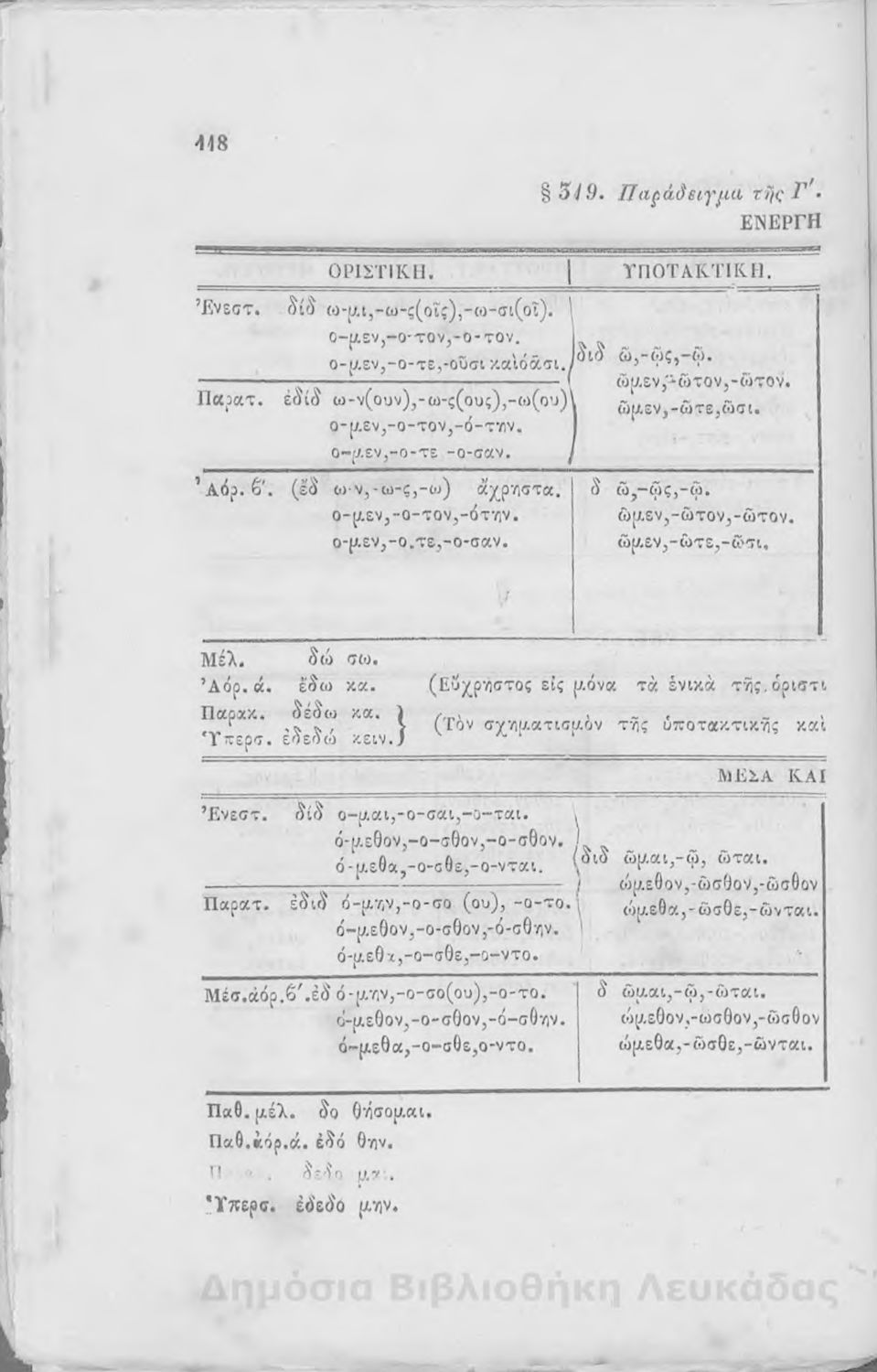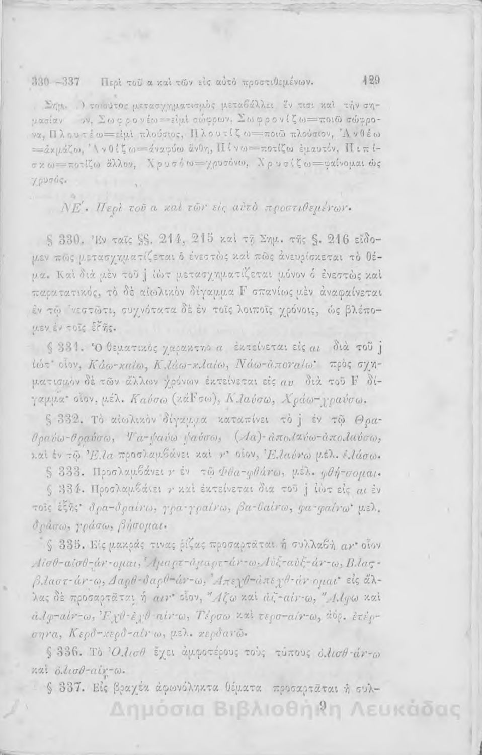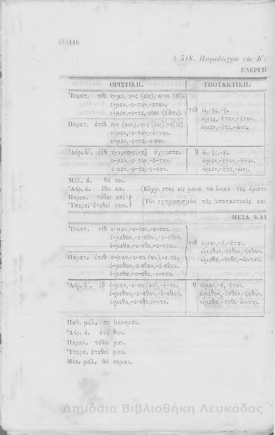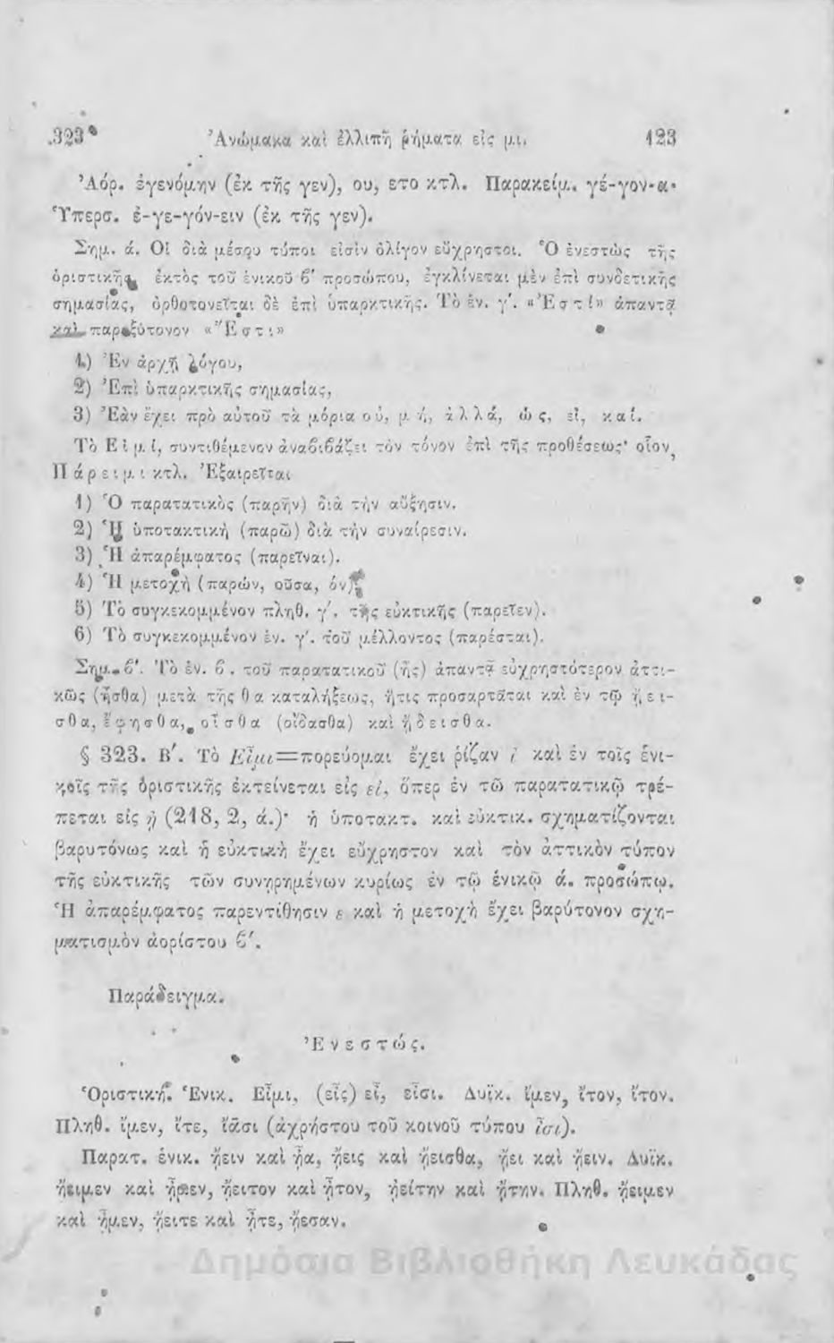 Σχολικό εγχειρίδιο Αρχαίων Ελληνικών για τα Ελληνικά Σχολεία και Παρθεναγωγεία που περιέχει τους κανόνες γραμματικής και είναι χωρισμένο σε φθογγολογικό, τυπολογικό και ετυμολογικό μέρος.