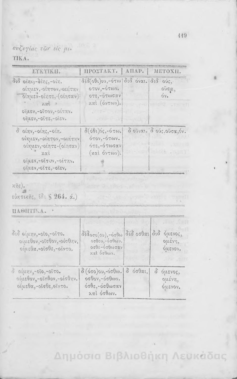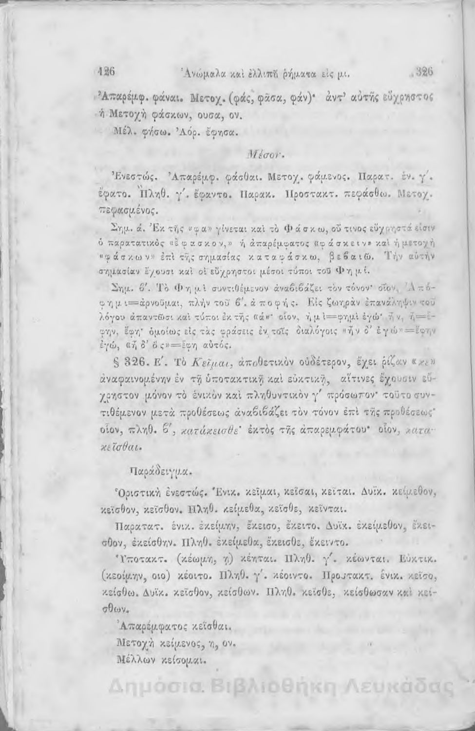Μαθητικό βοήθημα Αρχαίων Ελληνικών για τα Ελληνικά Σχολεία, Παρθεναγωγεία και Γυμνάσια που περιλαμβάνει γραμματική της αρχαίας ελληνικής και κατάλογο ανωμάλων ρημάτων.