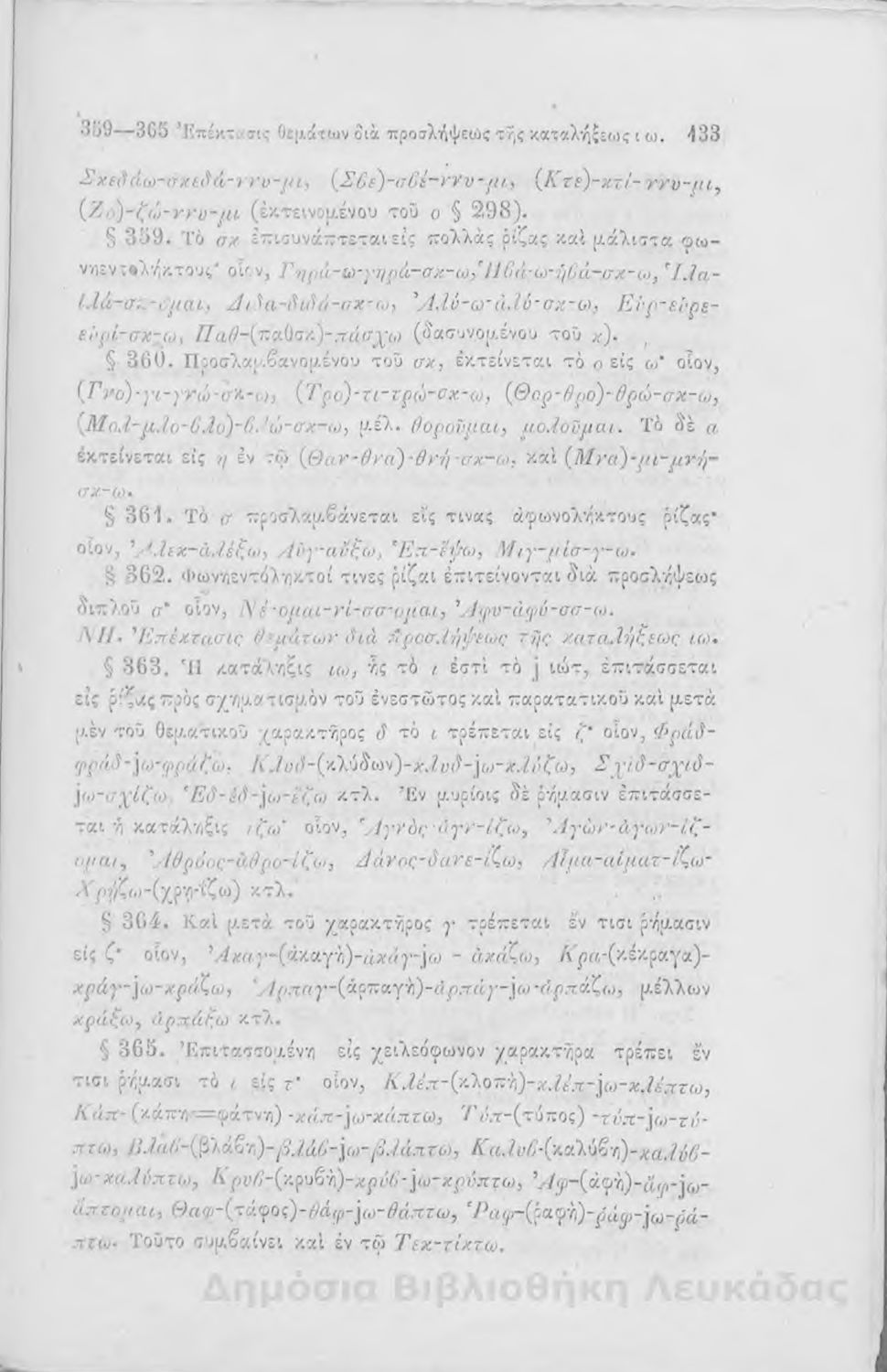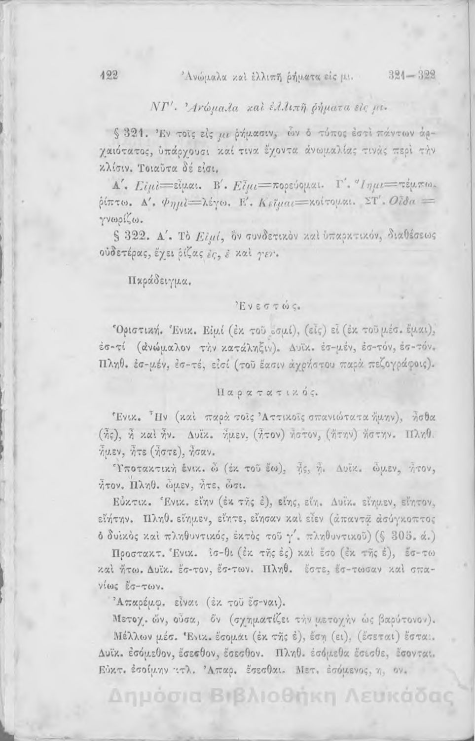 Σχολικό εγχειρίδιο Αρχαίων Ελληνικών για τα Ελληνικά Σχολεία, Παρθεναγωγεία και Γυμνάσια που περιέχει τους κανόνες γραμματικής και είναι χωρισμένο σε φθογγολογικό, τυπολογικό και ετυμολογικό μέρος.