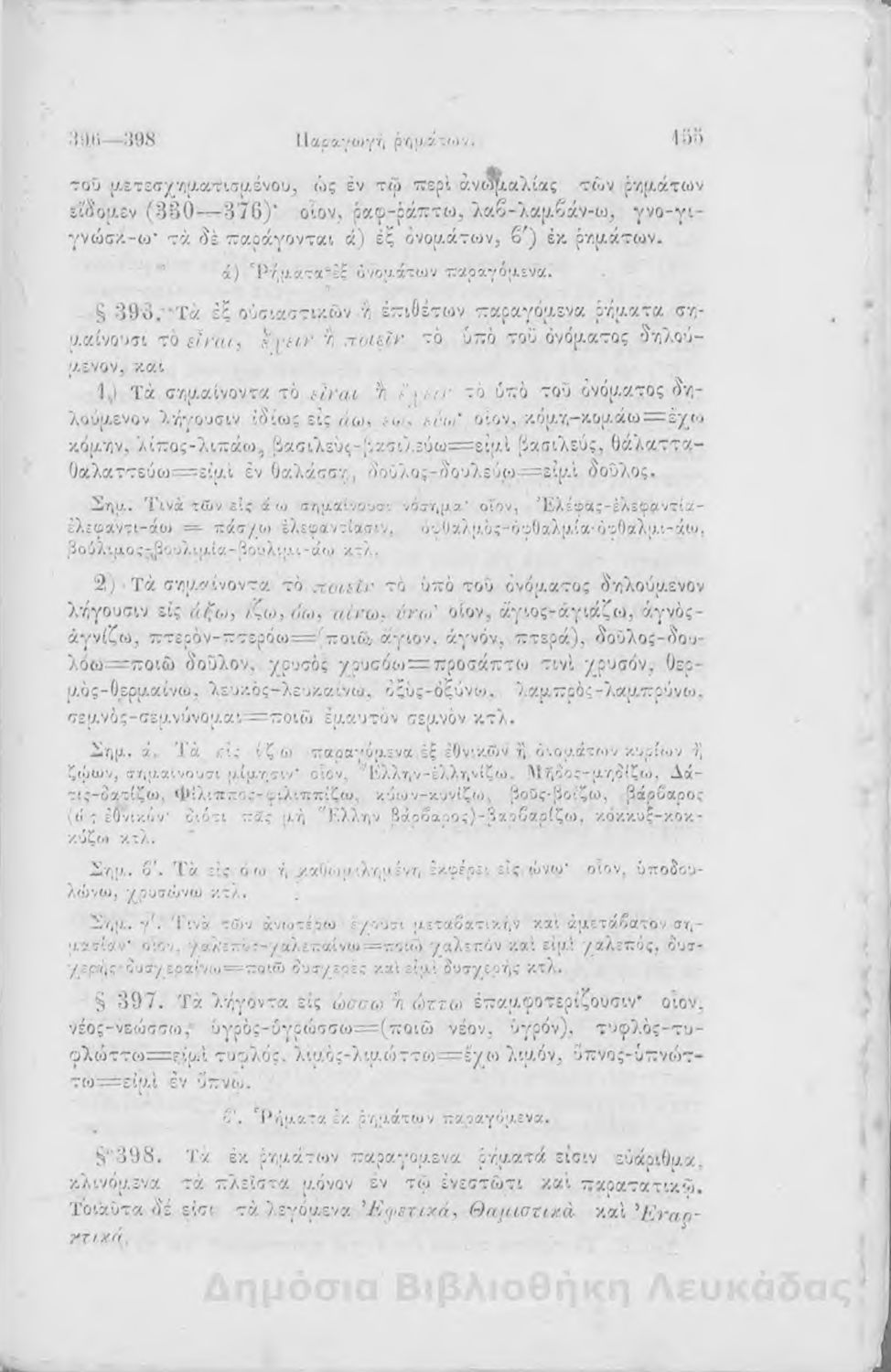 Μαθητικό βοήθημα Αρχαίων Ελληνικών για τα Ελληνικά Σχολεία, Παρθεναγωγεία και Γυμνάσια που περιλαμβάνει γραμματική της αρχαίας ελληνικής και κατάλογο ανωμάλων ρημάτων.