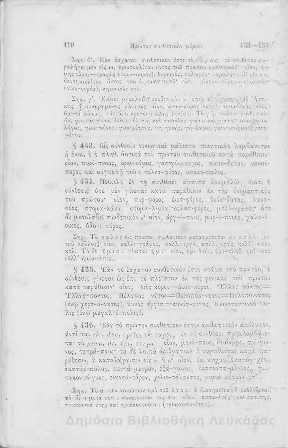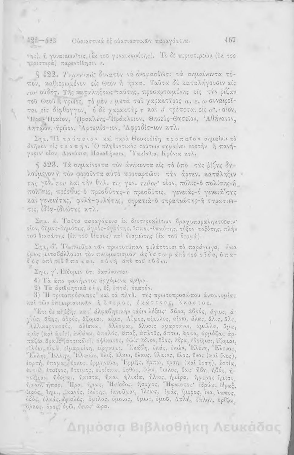 Σχολικό εγχειρίδιο Αρχαίων Ελληνικών για τα Ελληνικά Σχολεία, Παρθεναγωγεία και Γυμνάσια που περιέχει τους κανόνες γραμματικής και είναι χωρισμένο σε φθογγολογικό, τυπολογικό και ετυμολογικό μέρος.