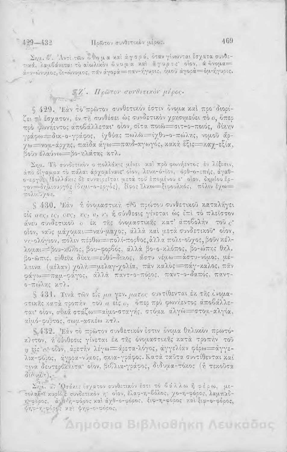 Σχολικό εγχειρίδιο Αρχαίων Ελληνικών για τα Ελληνικά Σχολεία και Παρθεναγωγεία που περιέχει τους κανόνες γραμματικής και είναι χωρισμένο σε φθογγολογικό, τυπολογικό και ετυμολογικό μέρος.
