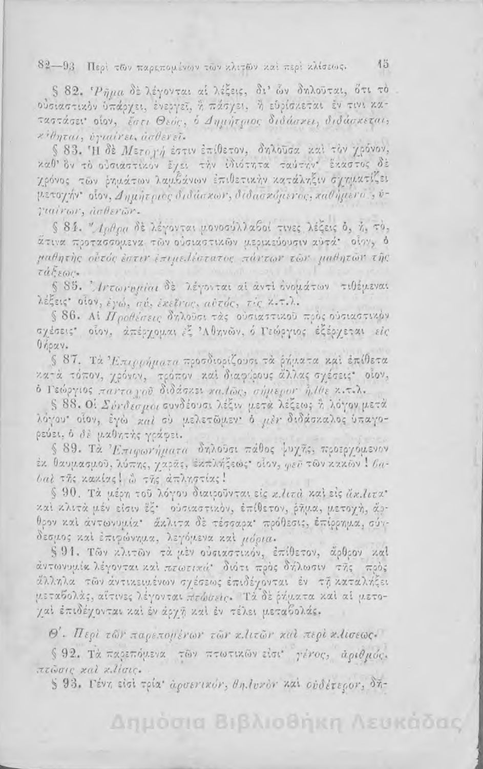 Σχολικό εγχειρίδιο Αρχαίων Ελληνικών για τα Ελληνικά Σχολεία και Παρθεναγωγεία που περιέχει τους κανόνες γραμματικής και είναι χωρισμένο σε φθογγολογικό, τυπολογικό και ετυμολογικό μέρος.