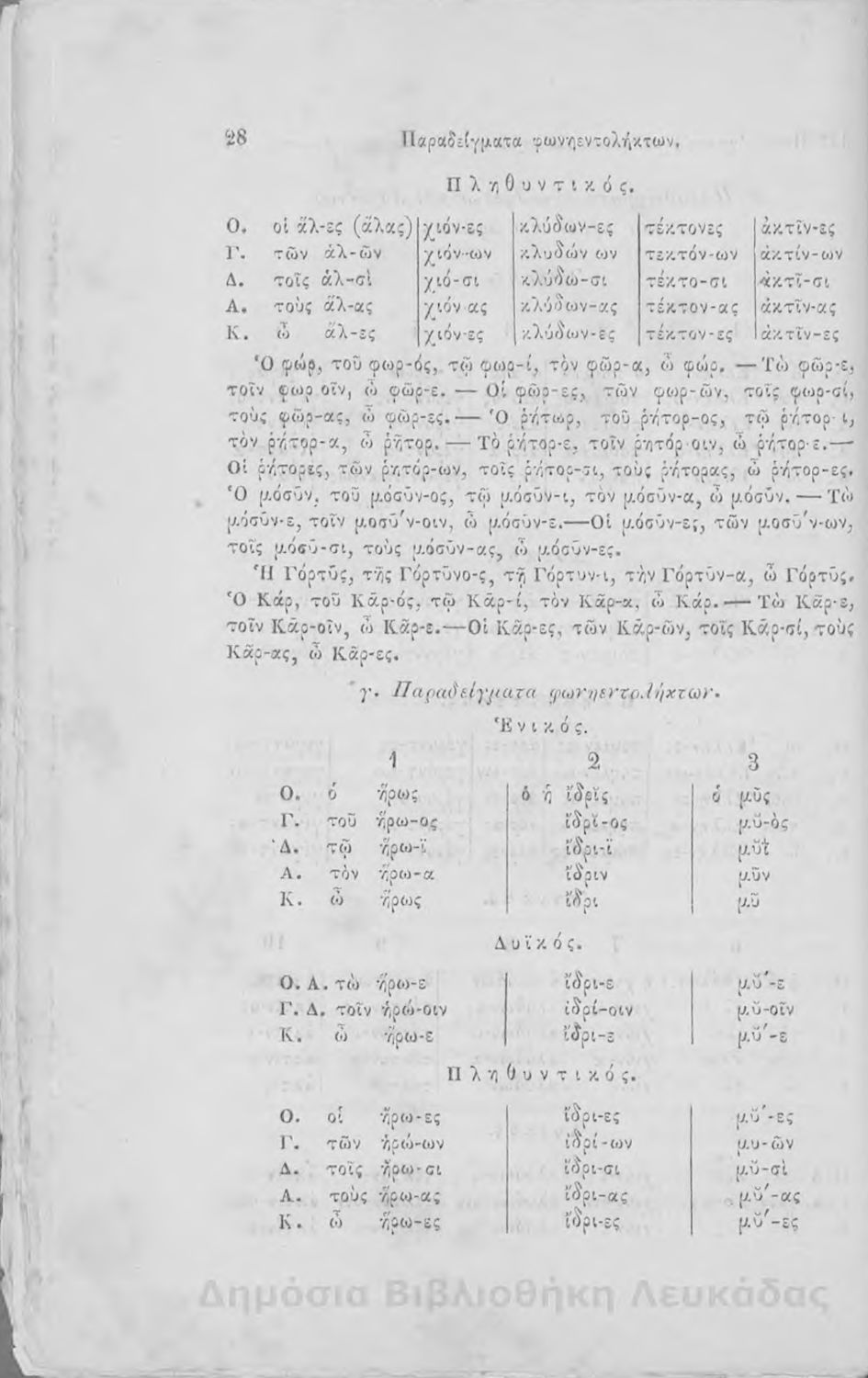 Σχολικό εγχειρίδιο Αρχαίων Ελληνικών για τα Ελληνικά Σχολεία και Παρθεναγωγεία που αποτελεί γραμματική της αρχαίας ελληνικής και είναι χωρισμένο σε φθογγολογικό, τυπολογικό και ετυμολογικό μέρος.