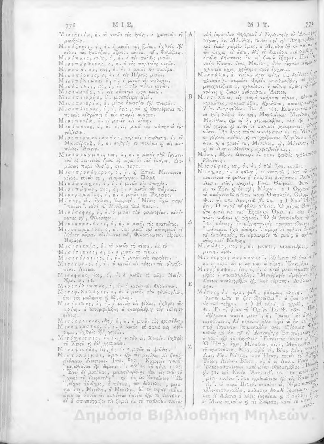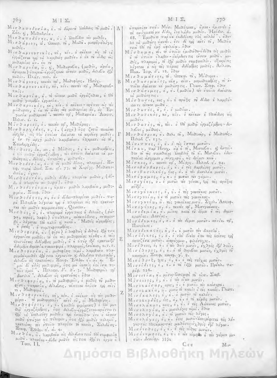 Τίτλος: Λεξικόν ελληνικόν προς χρήσιν των περί τους παλαιούς συγγραφείς ενασχολούμενων