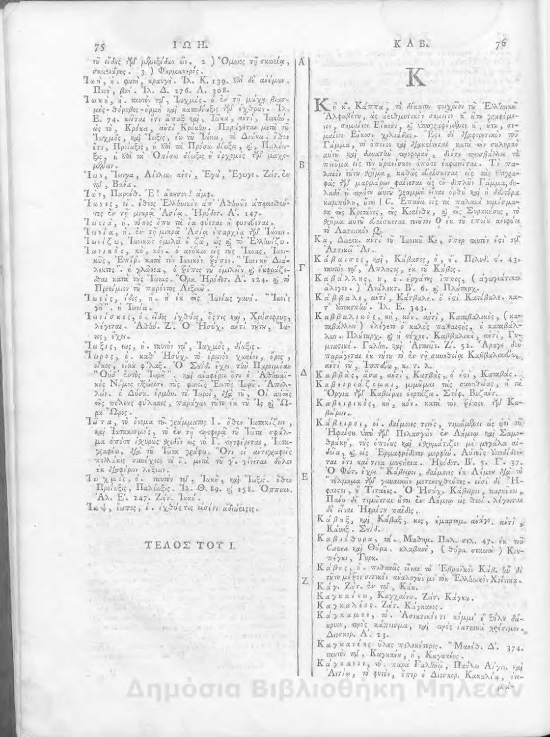 Τίτλος: Λεξικόν ελληνικόν προς χρήσιν των περί τους παλαιούς συγγραφείς ενασχολούμενων