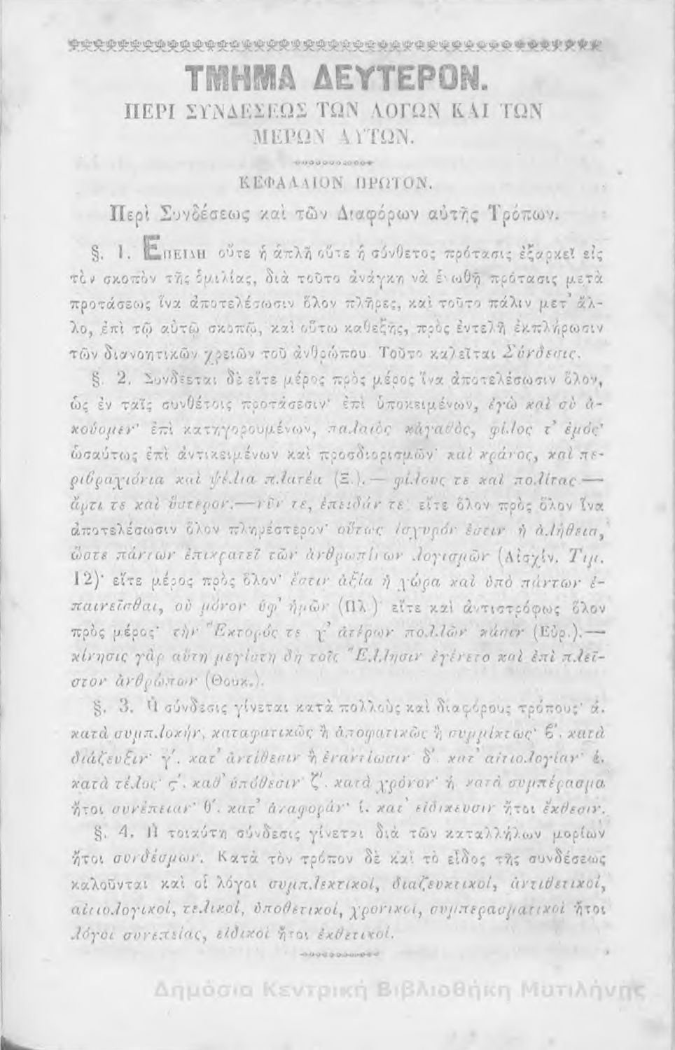Βαθμίδα εκπαίδευσης: Δευτεροβάθμια Μάθημα: Νέα Ελληνικά Γλώσσα: Καθαρεύουσα |