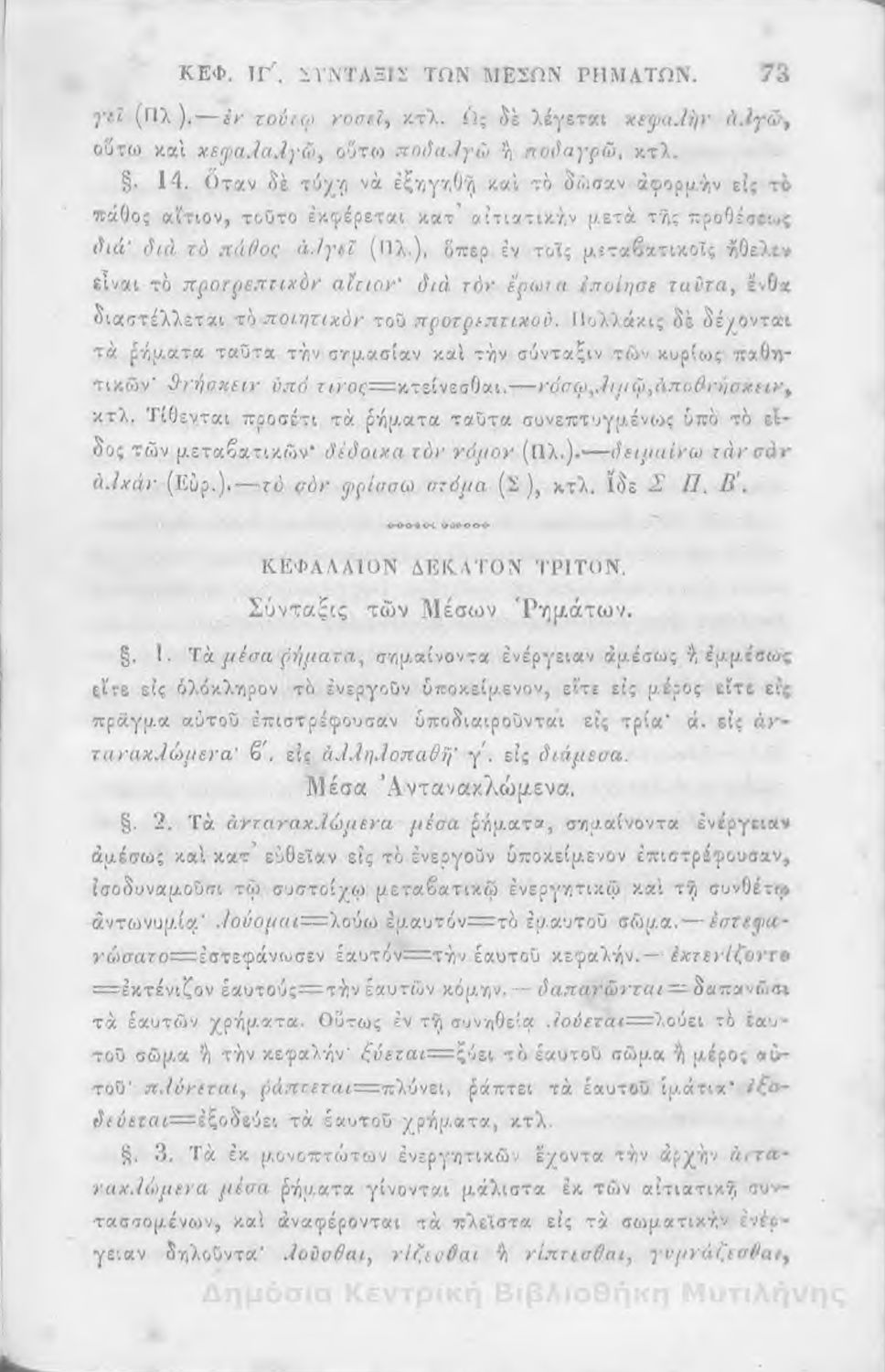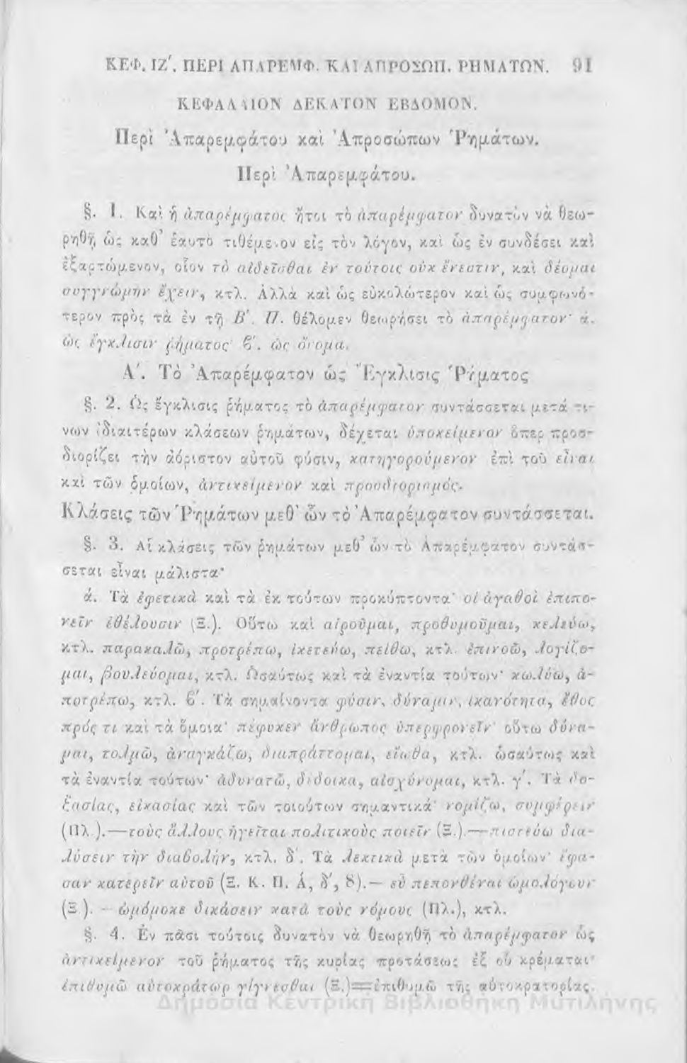 Βαθμίδα εκπαίδευσης: Δευτεροβάθμια Μάθημα: Νέα Ελληνικά Γλώσσα: Καθαρεύουσα |