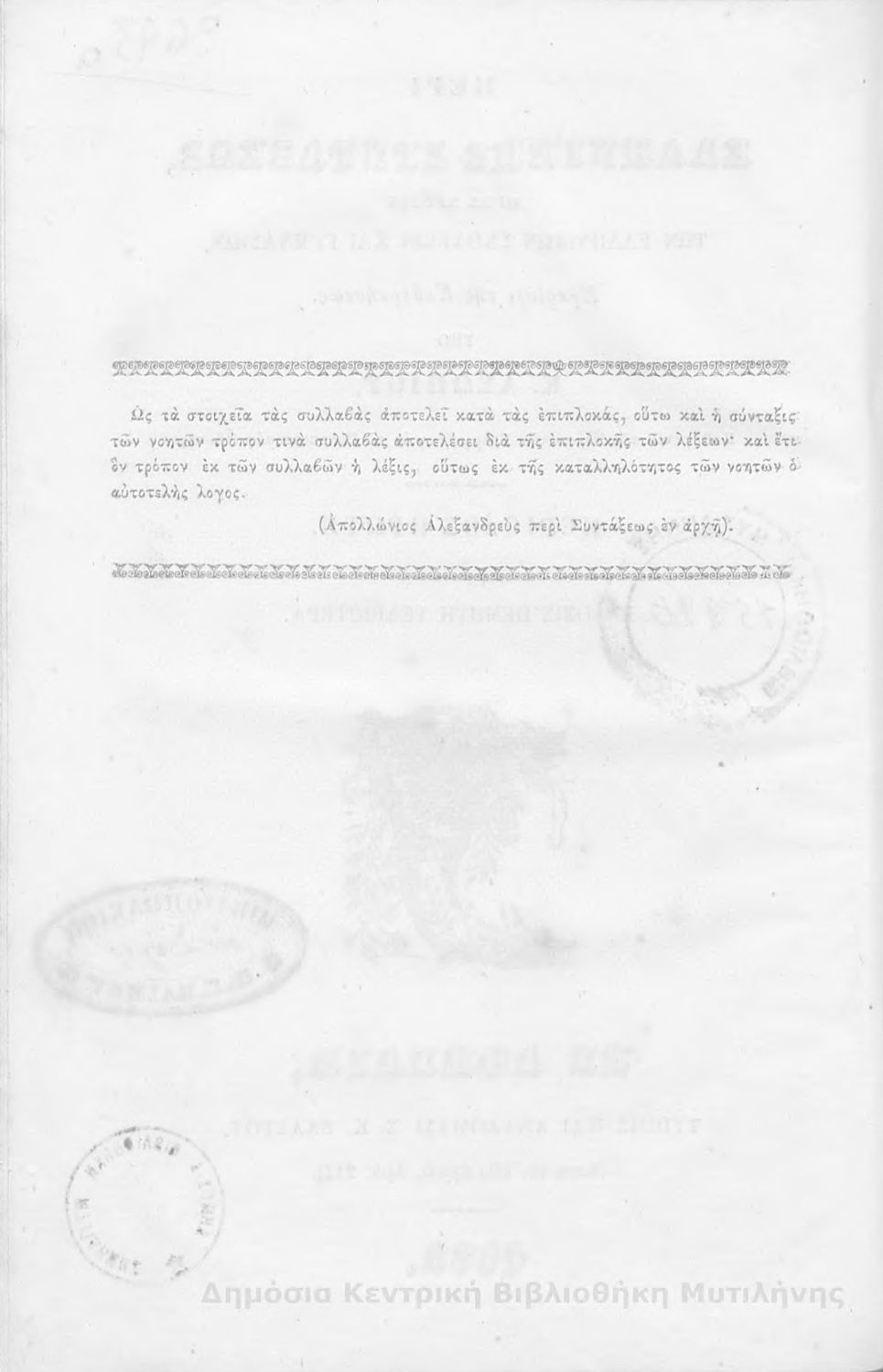 Εντοπισμός πρωτοτύπου: Δημόσια Βιβλιοθήκη Μυτιλήνης Κωδικός βιβλιοθήκης: 71807 Διεύθυνση URL: |