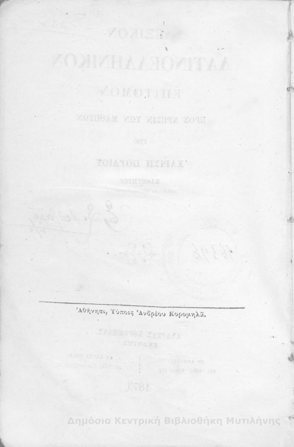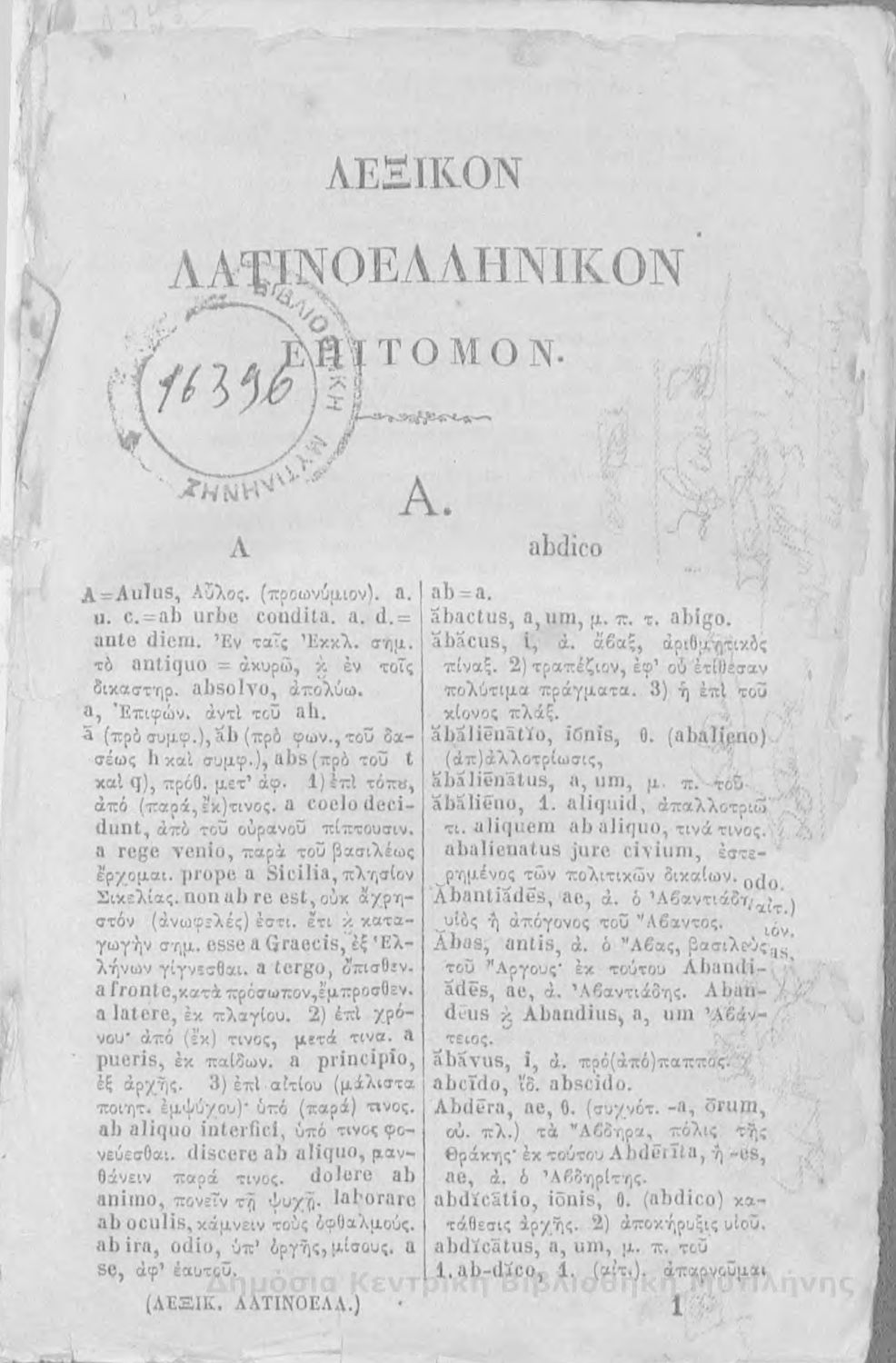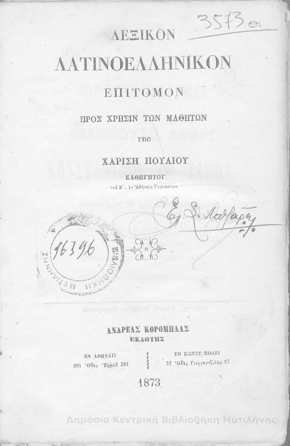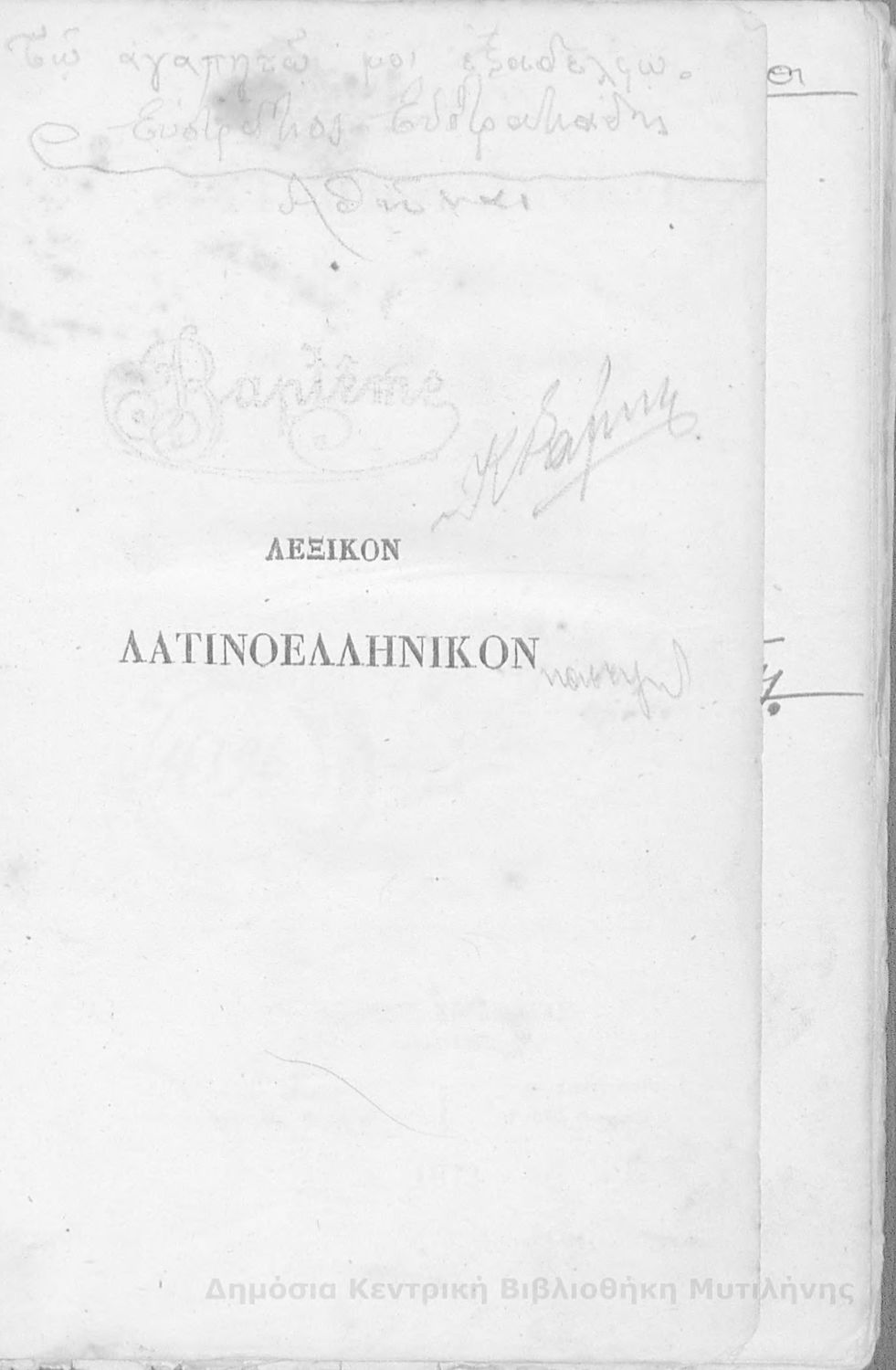 Τίτλος: Λεξικόν λατινοελληνικόν επίτομον: προς χρήσιν μαθητών