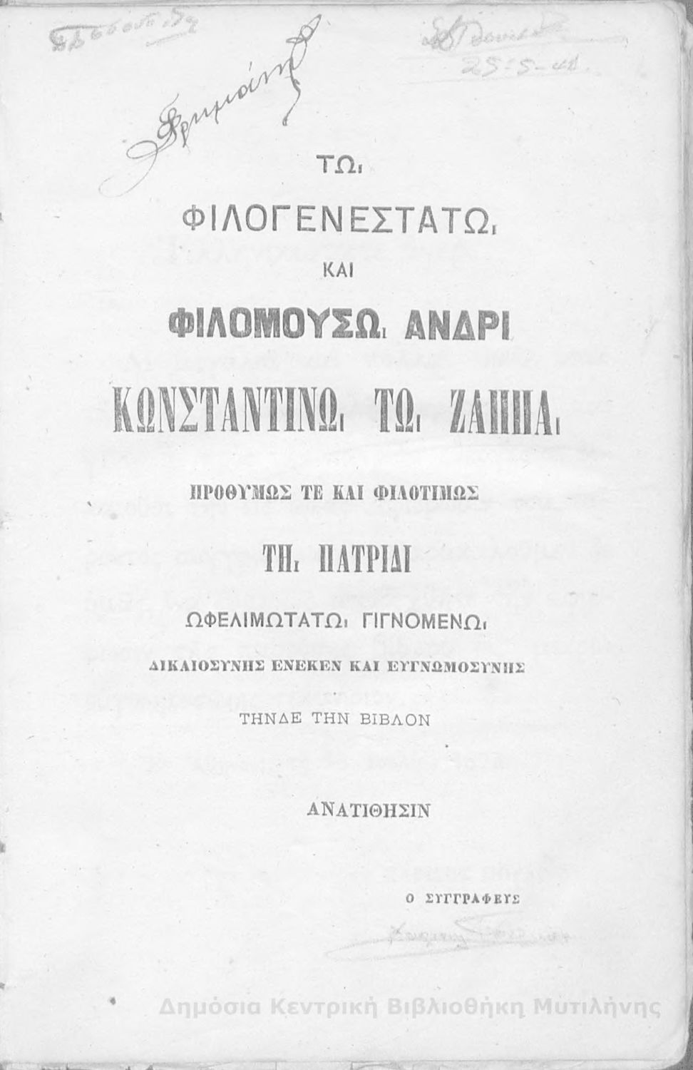 Εντοπισμός πρωτοτύπου: Δημόσια Βιβλιοθήκη Μυτιλήνης