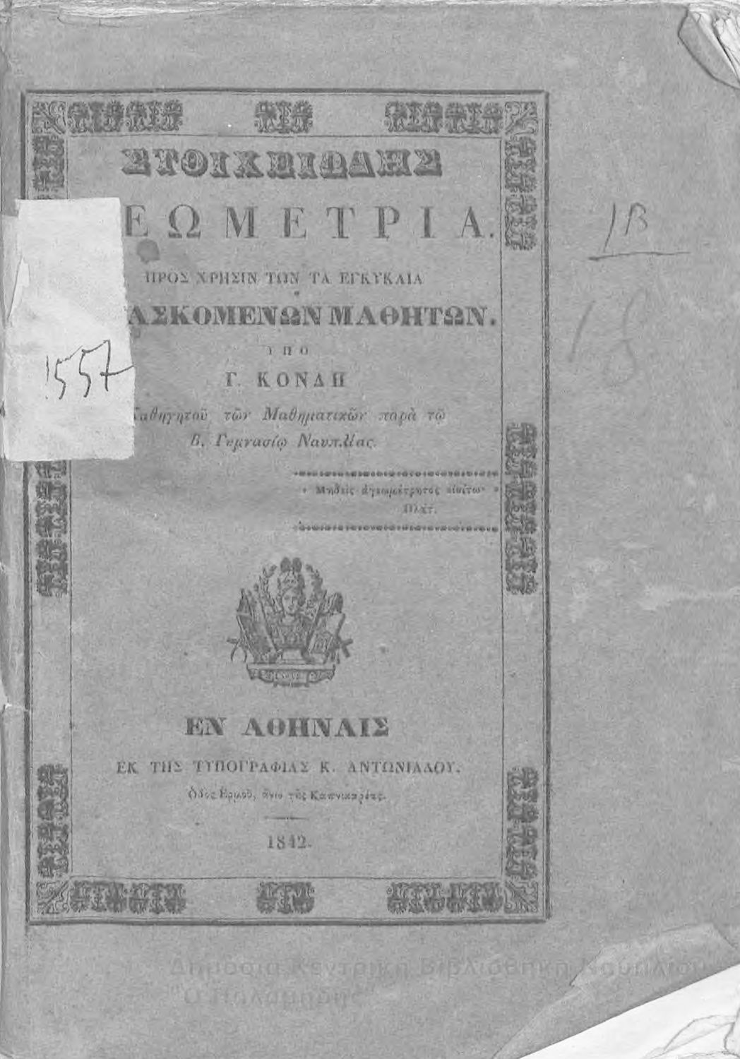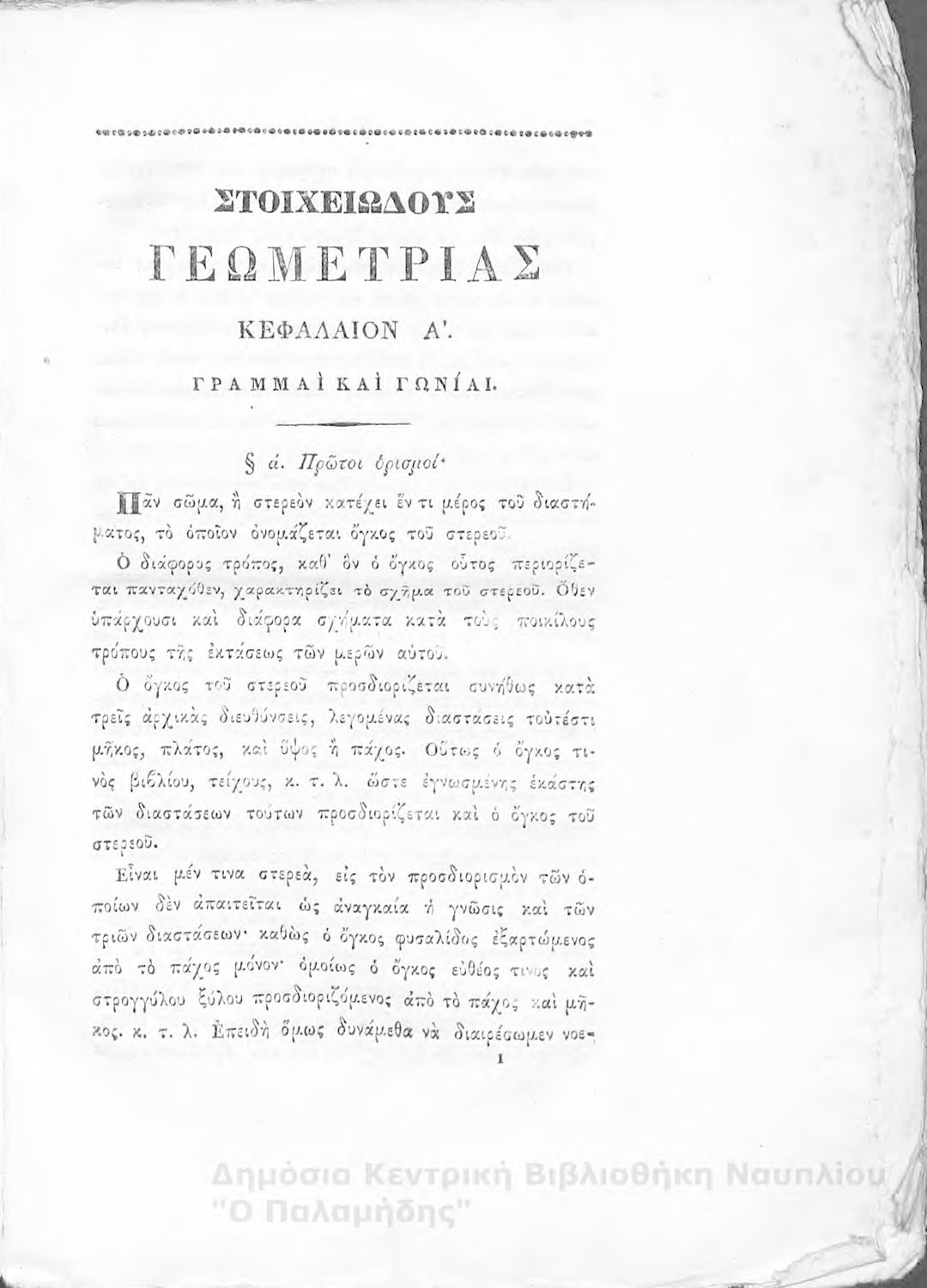 Τίτλος: Στοιχειώδης γεωμετρία: προς χρήσιν των τα εγκύκλια διδασκομένων μαθητών