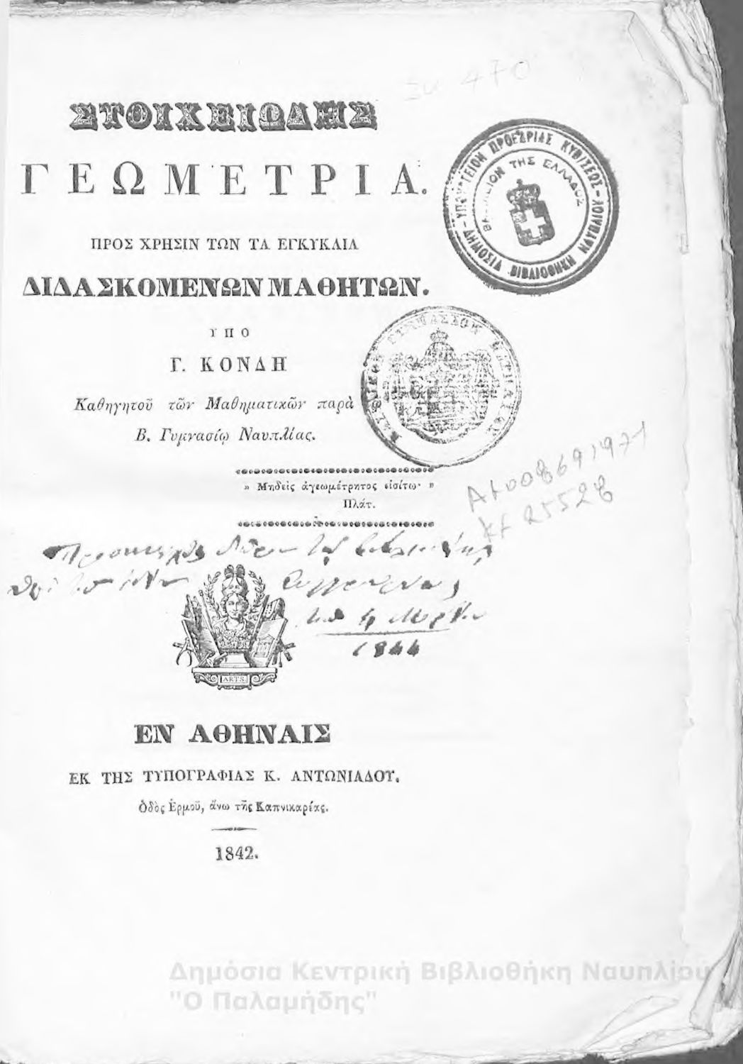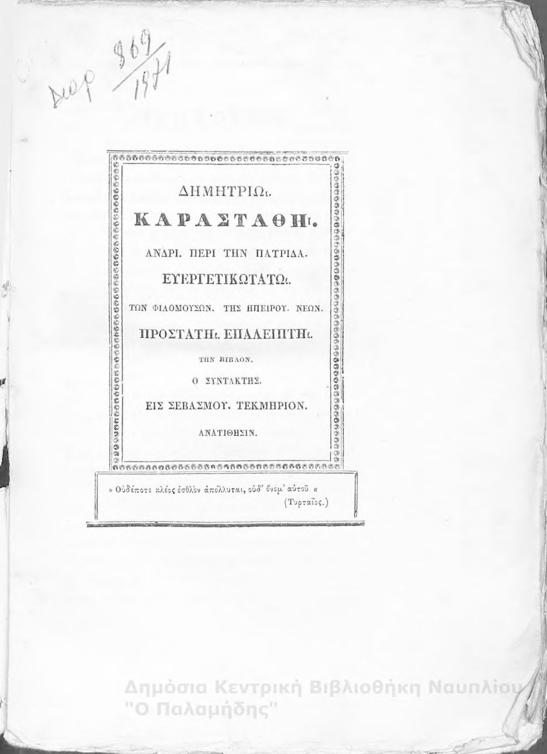 Εντοπισμός πρωτοτύπου: Δημόσια Βιβλιοθήκη Ναυπλίου