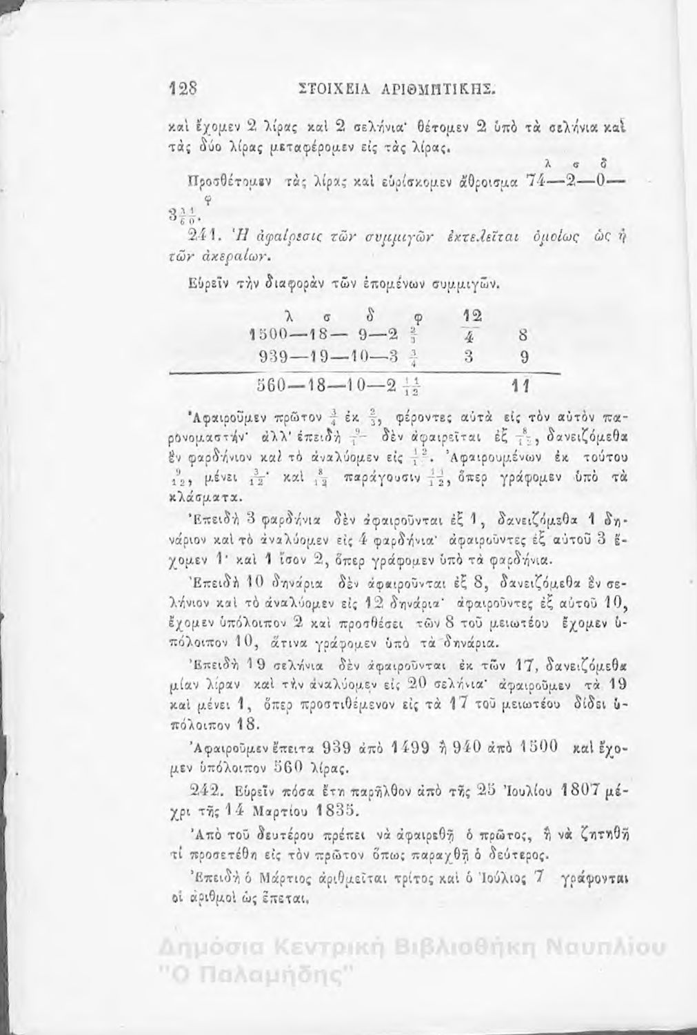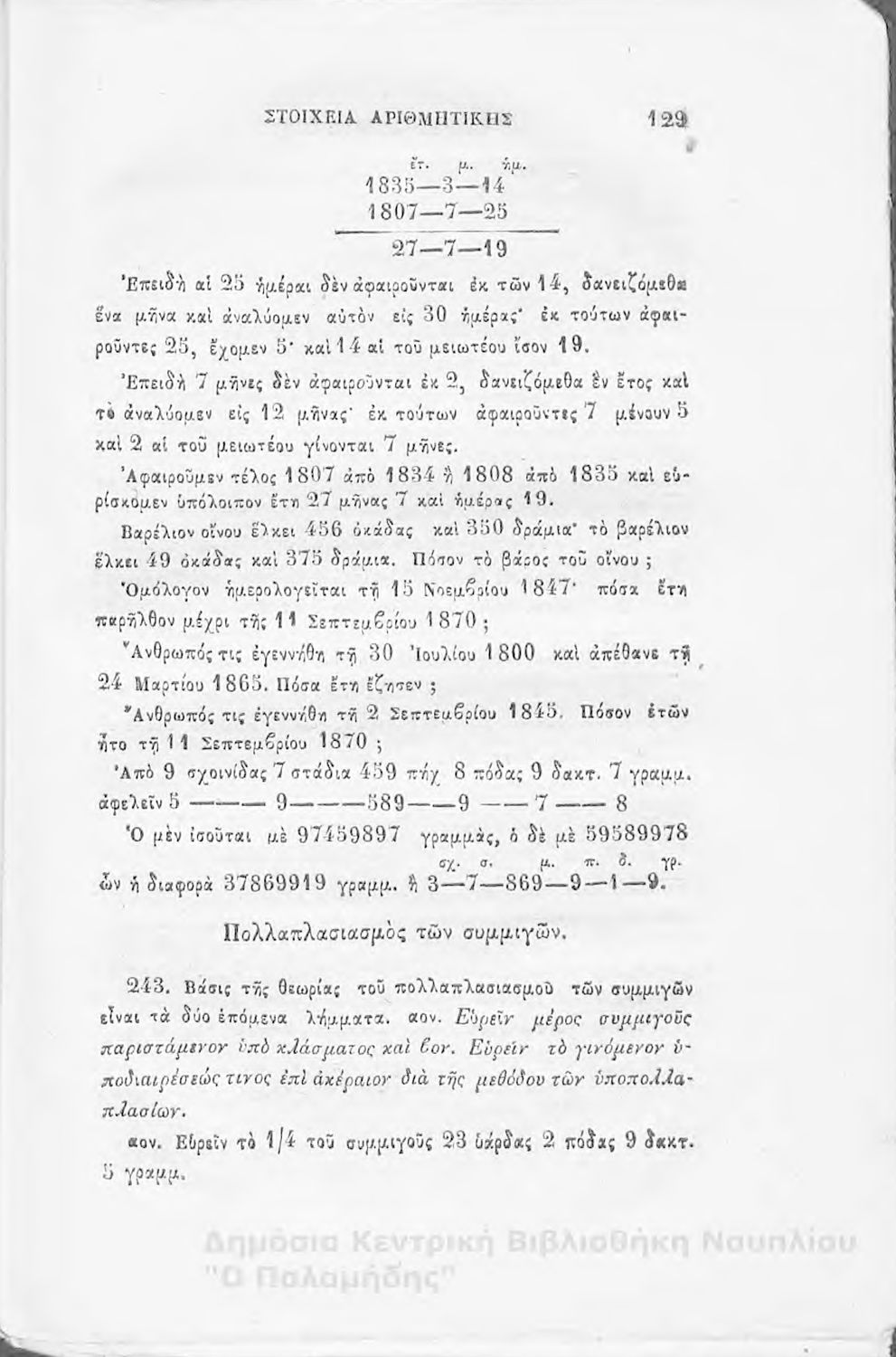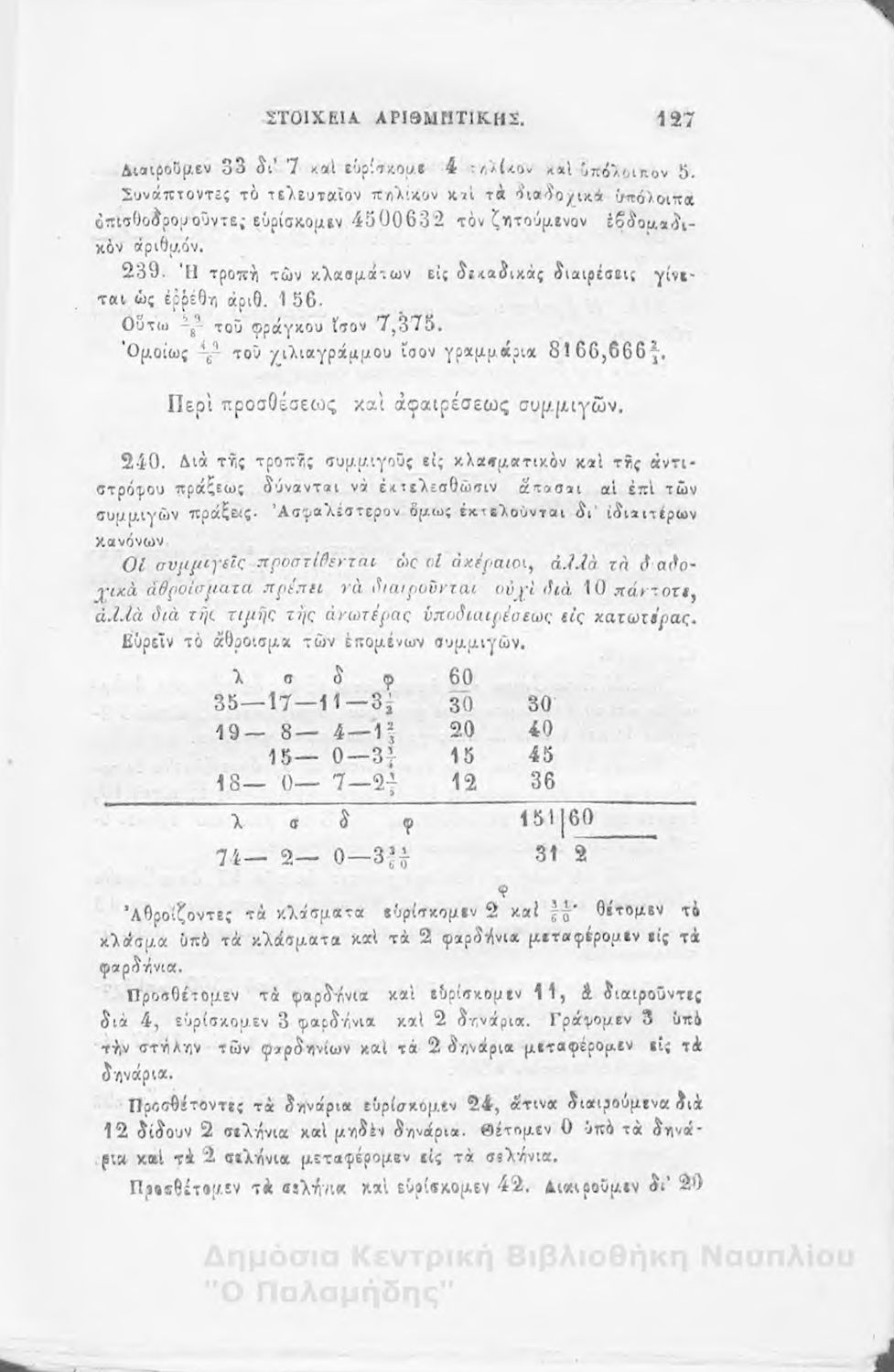 Τίτλος: Στοιχεία Αριθμητικής προς χρήσιν των Γυμνασίων