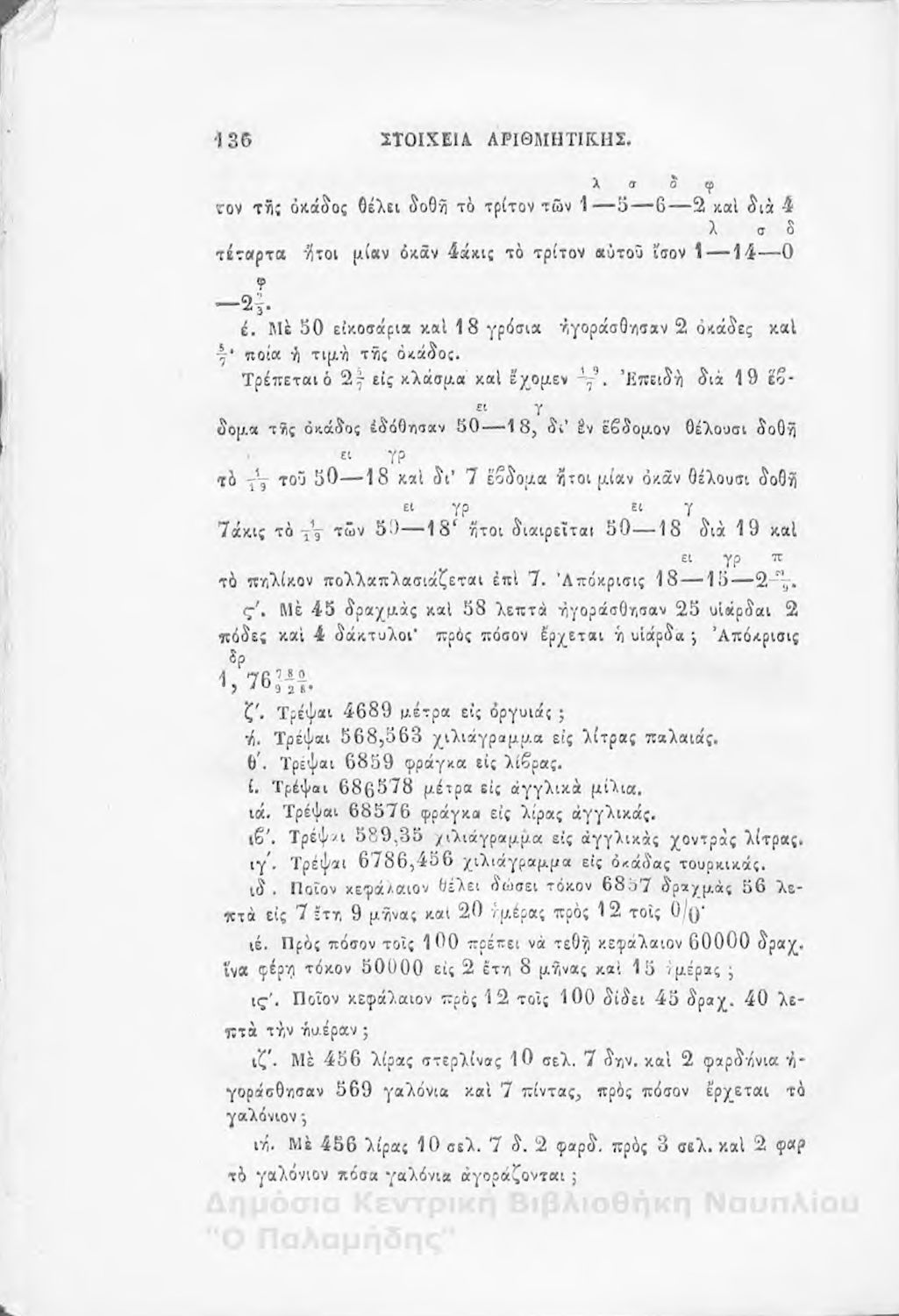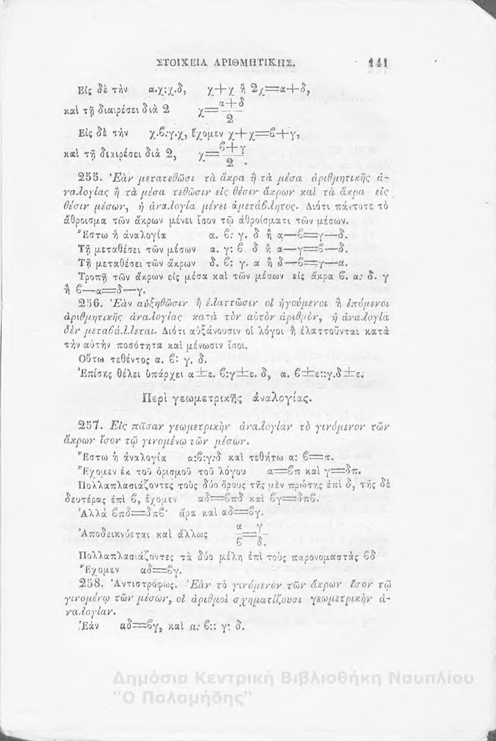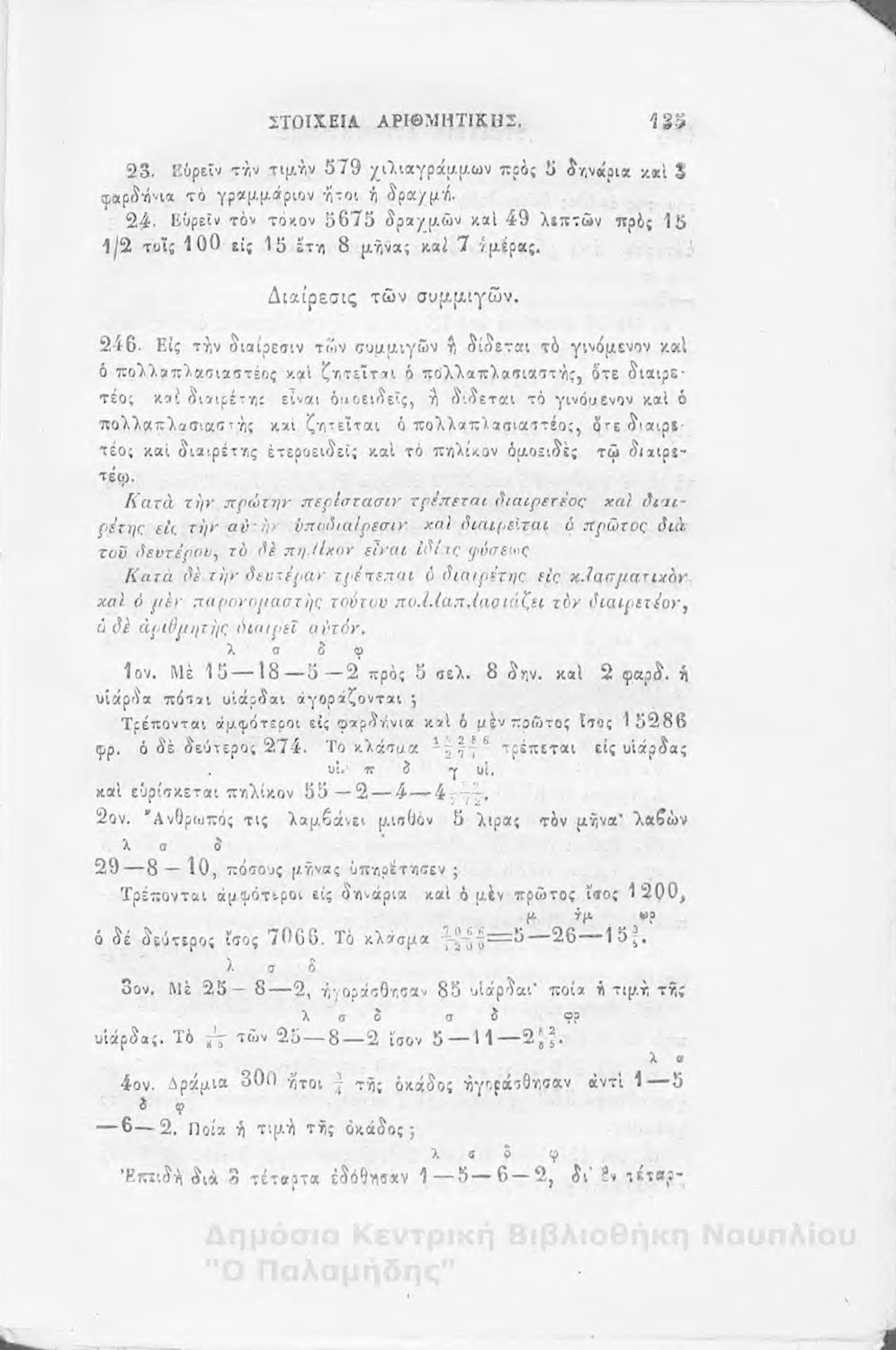 Βαθμίδα εκπαίδευσης: Δευτεροβάθμια Μάθημα: Αριθμητική Γλώσσα: Καθαρεύουσα |