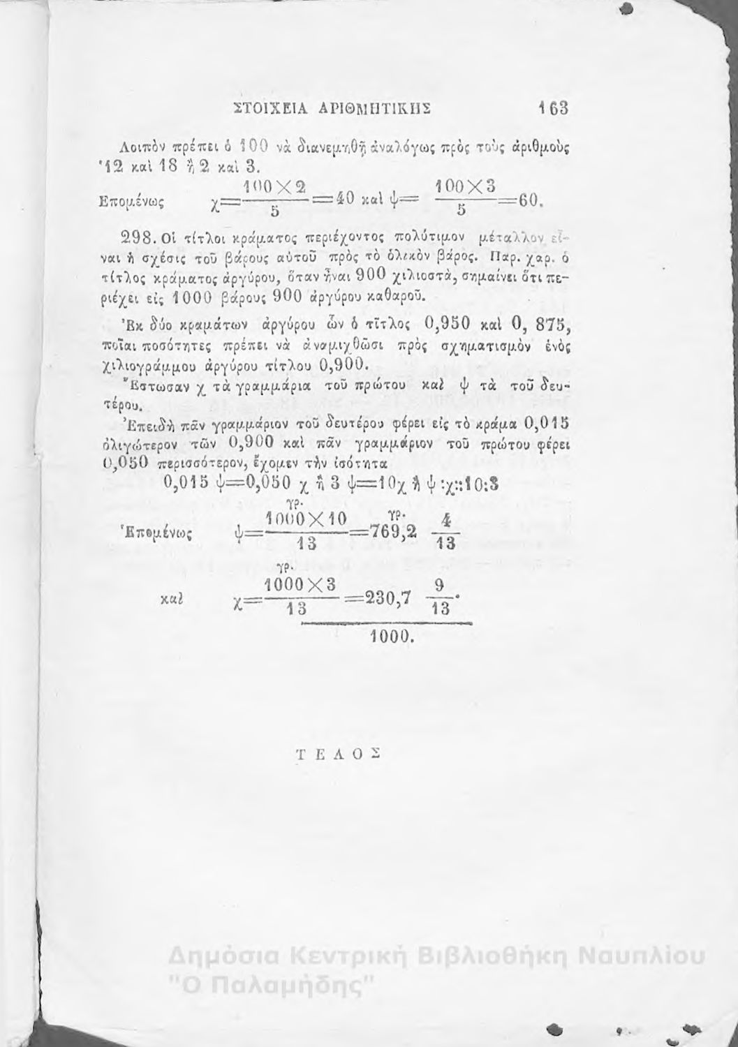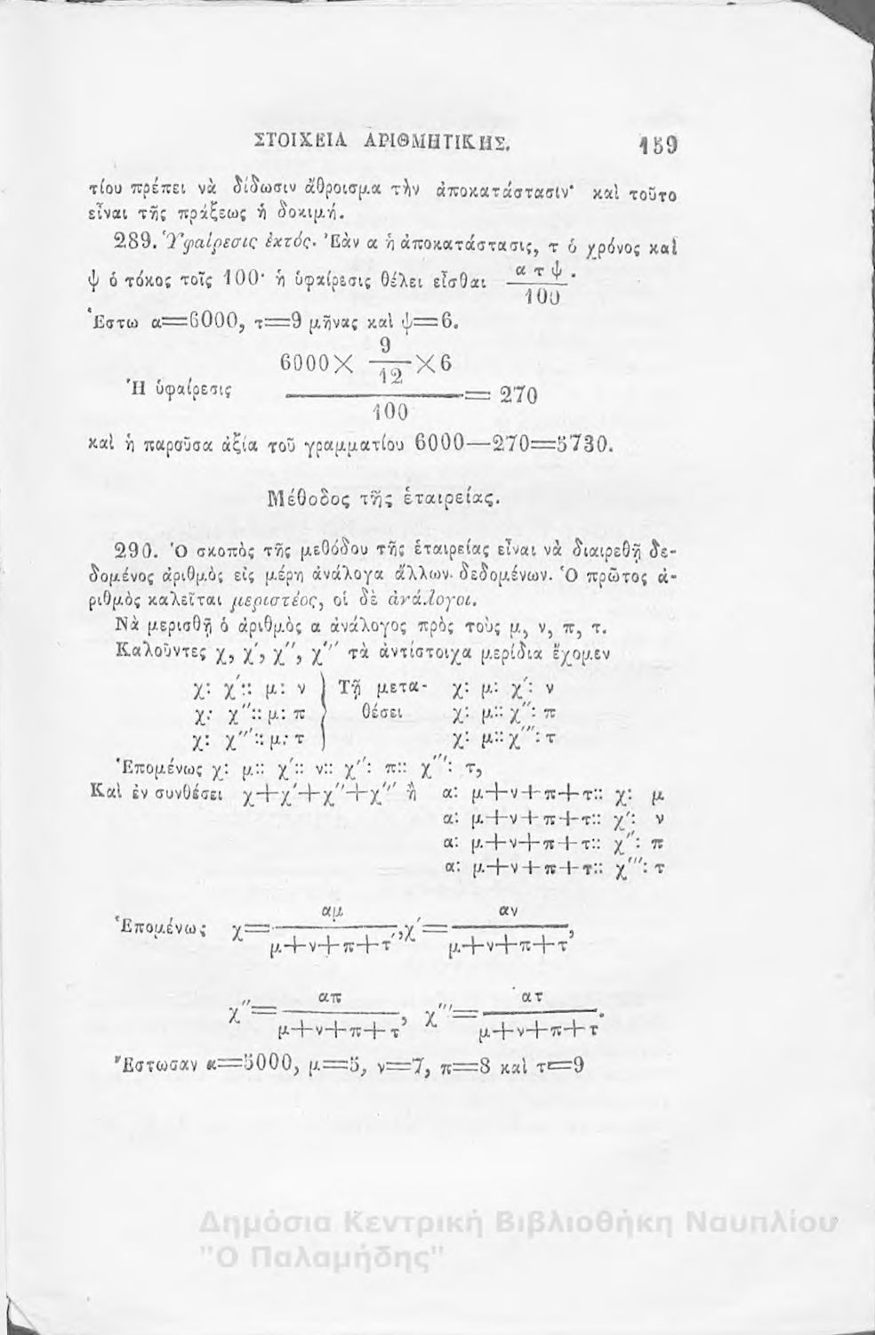 Τίτλος: Στοιχεία Αριθμητικής προς χρήσιν των Γυμνασίων
