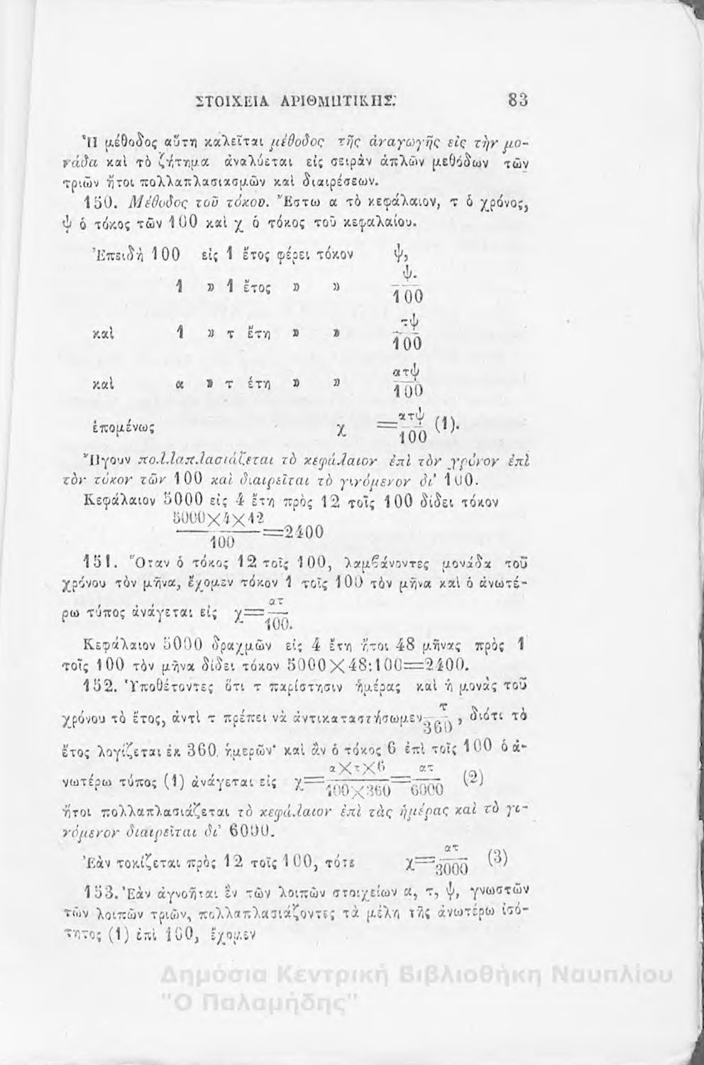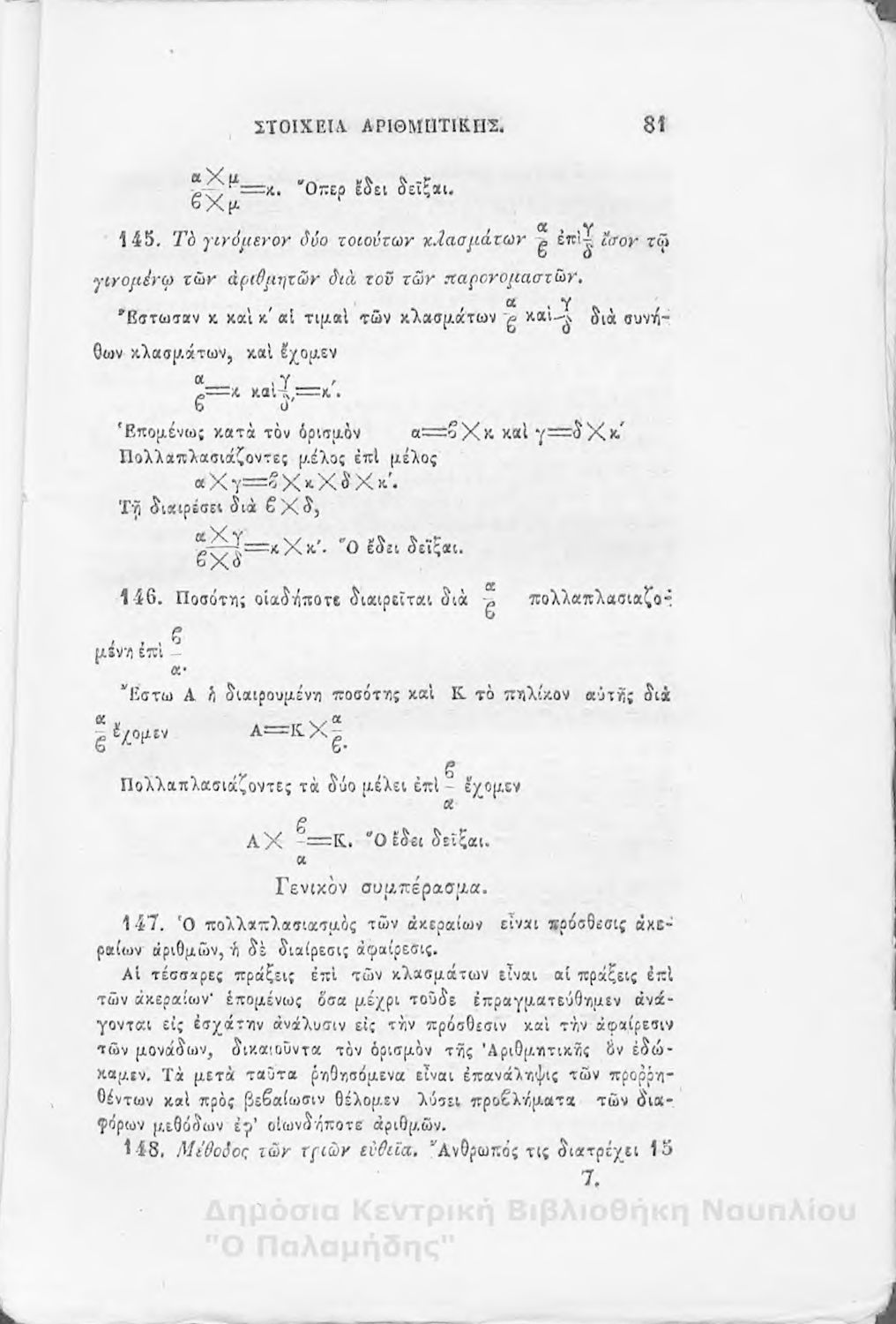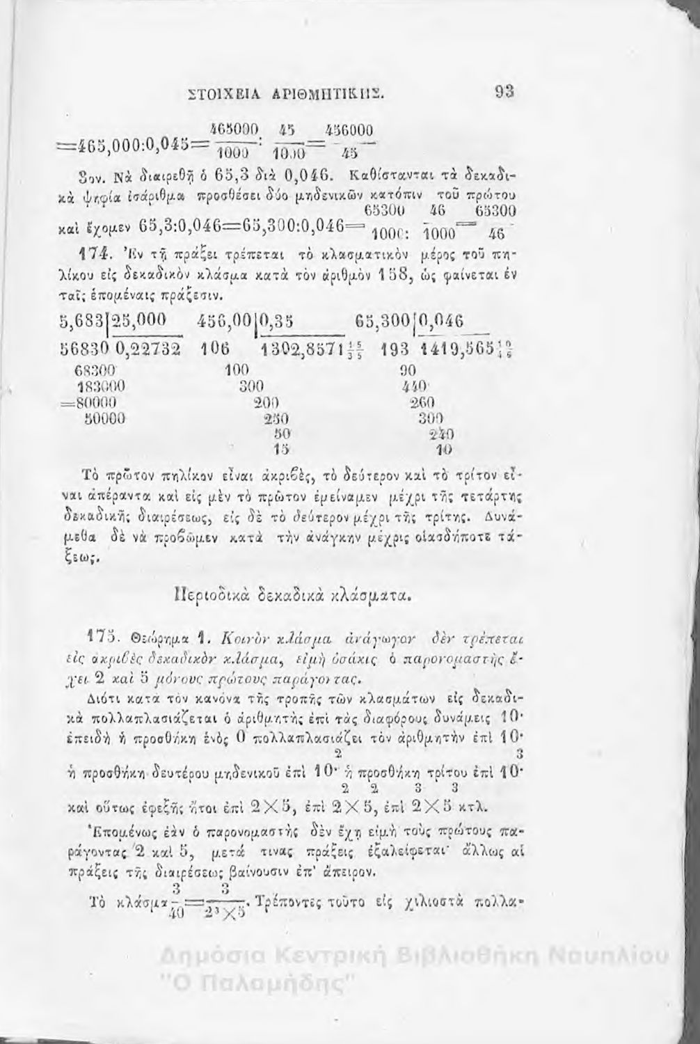 Βαθμίδα εκπαίδευσης: Δευτεροβάθμια Μάθημα: Αριθμητική Γλώσσα: Καθαρεύουσα |