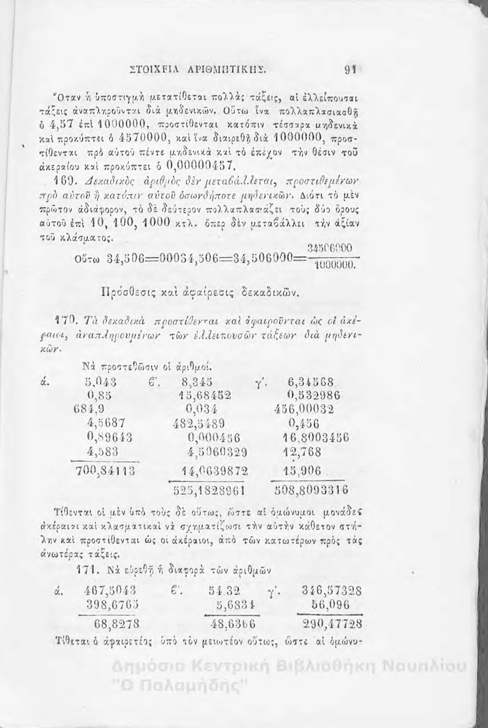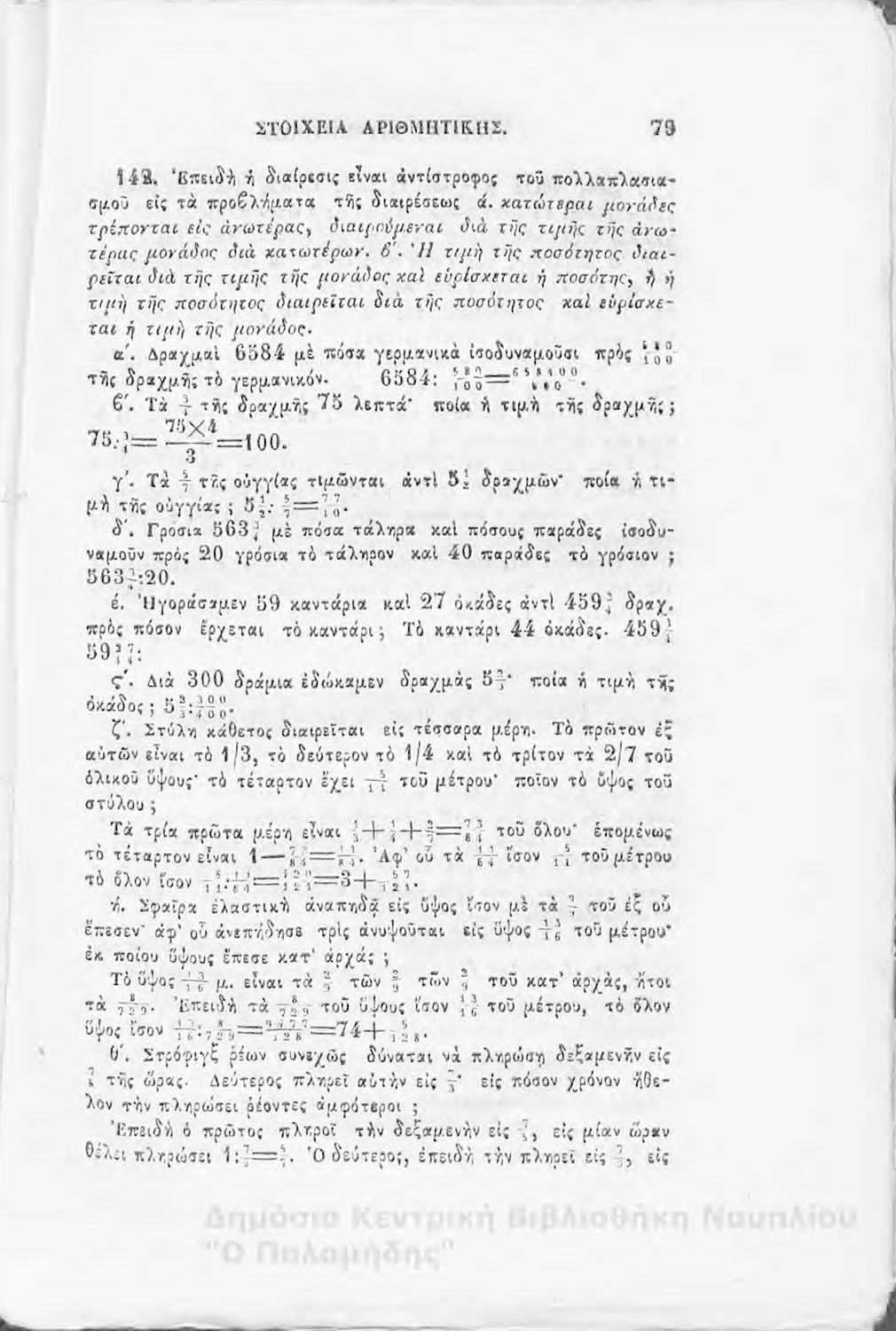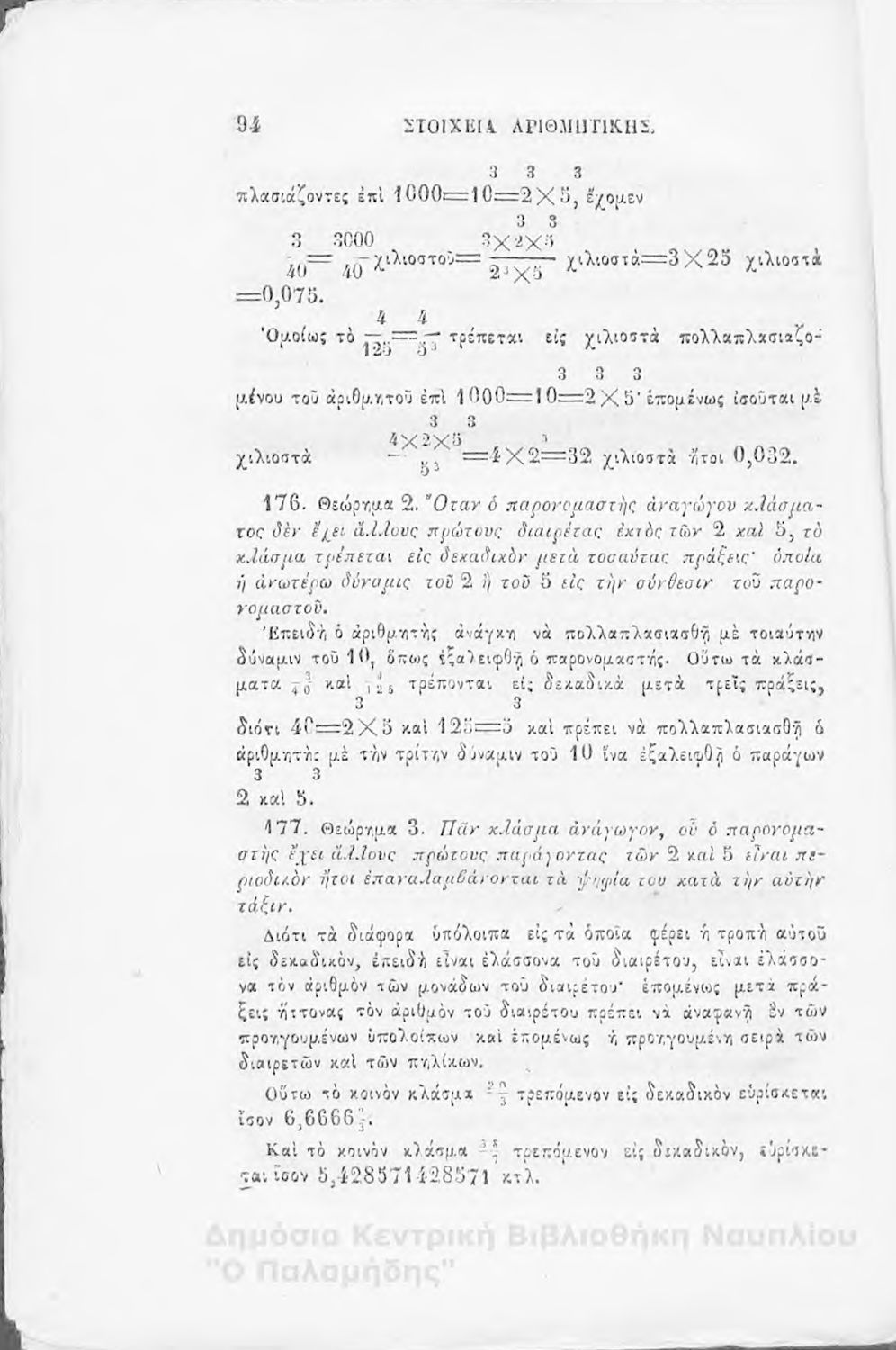 Βαθμίδα εκπαίδευσης: Δευτεροβάθμια Μάθημα: Αριθμητική Γλώσσα: Καθαρεύουσα |
