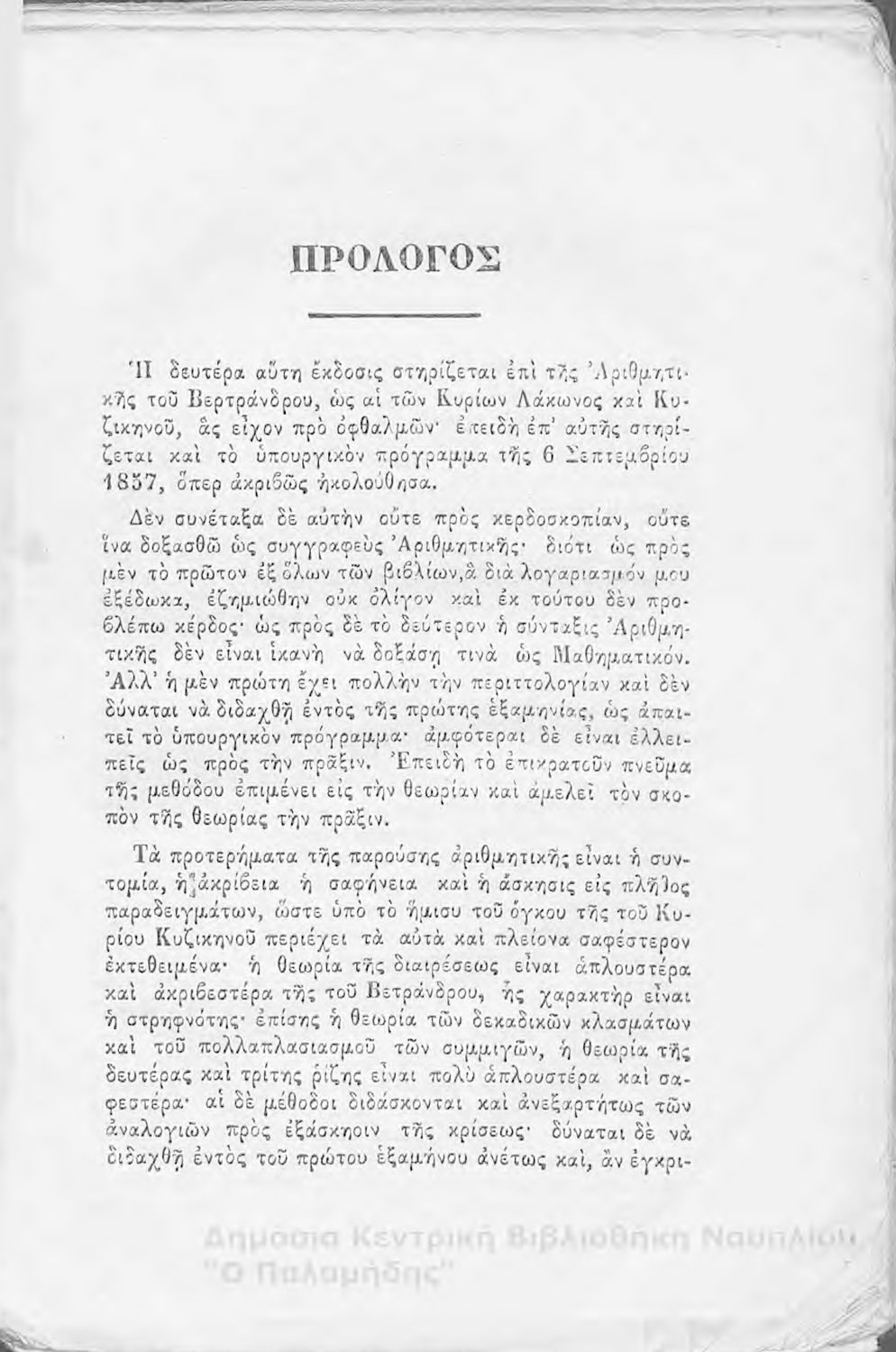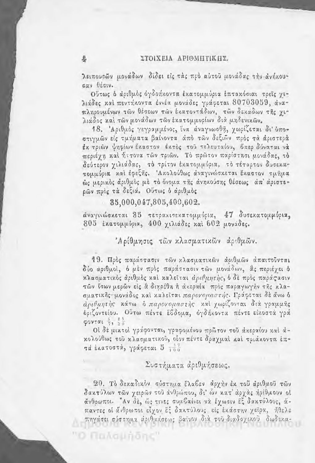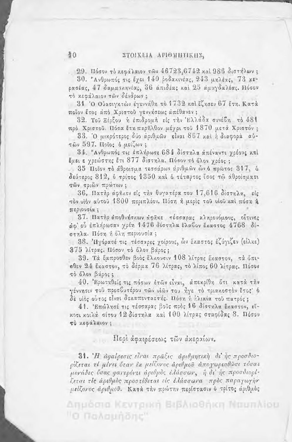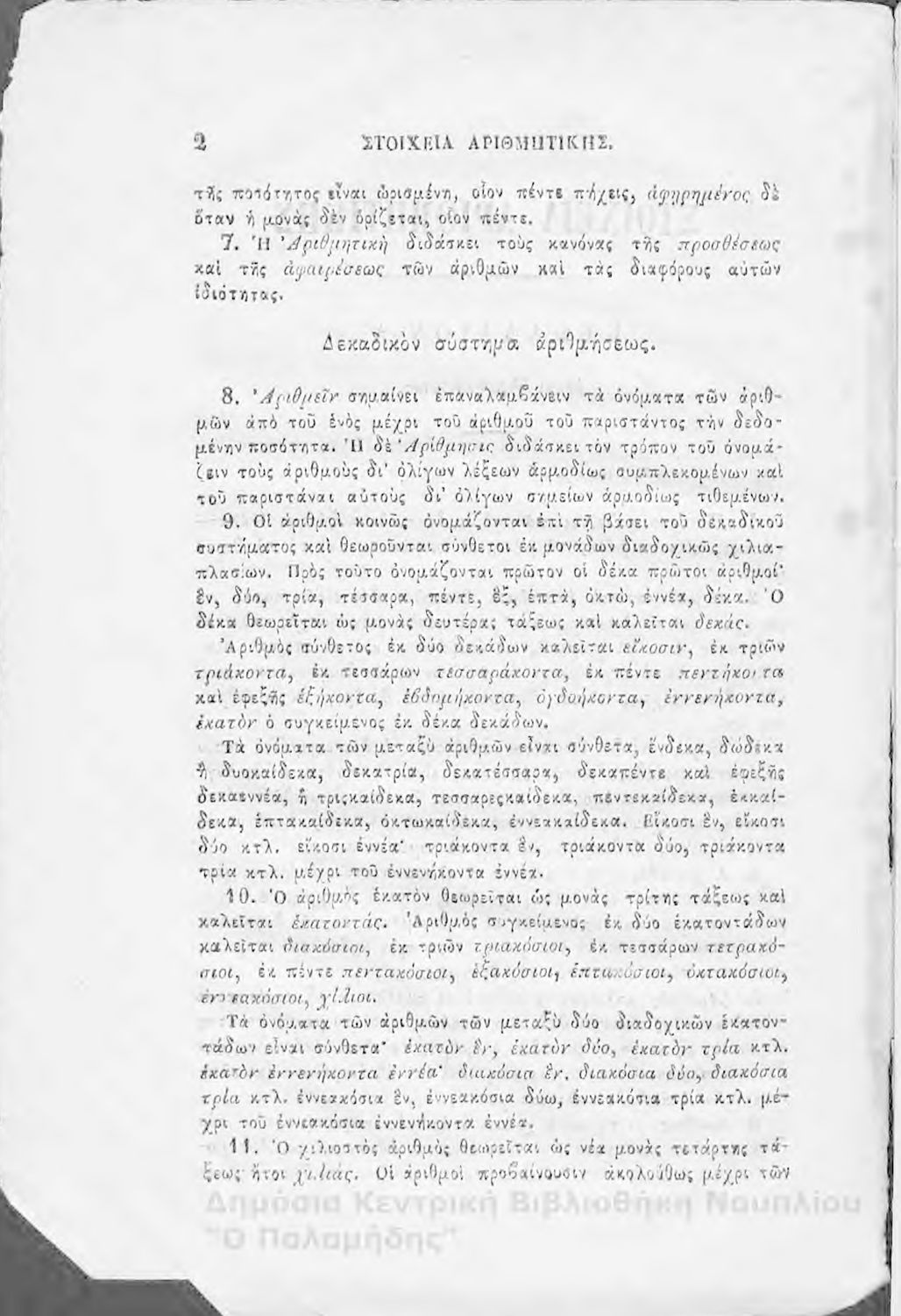 Τίτλος: Στοιχεία Αριθμητικής προς χρήσιν των Γυμνασίων