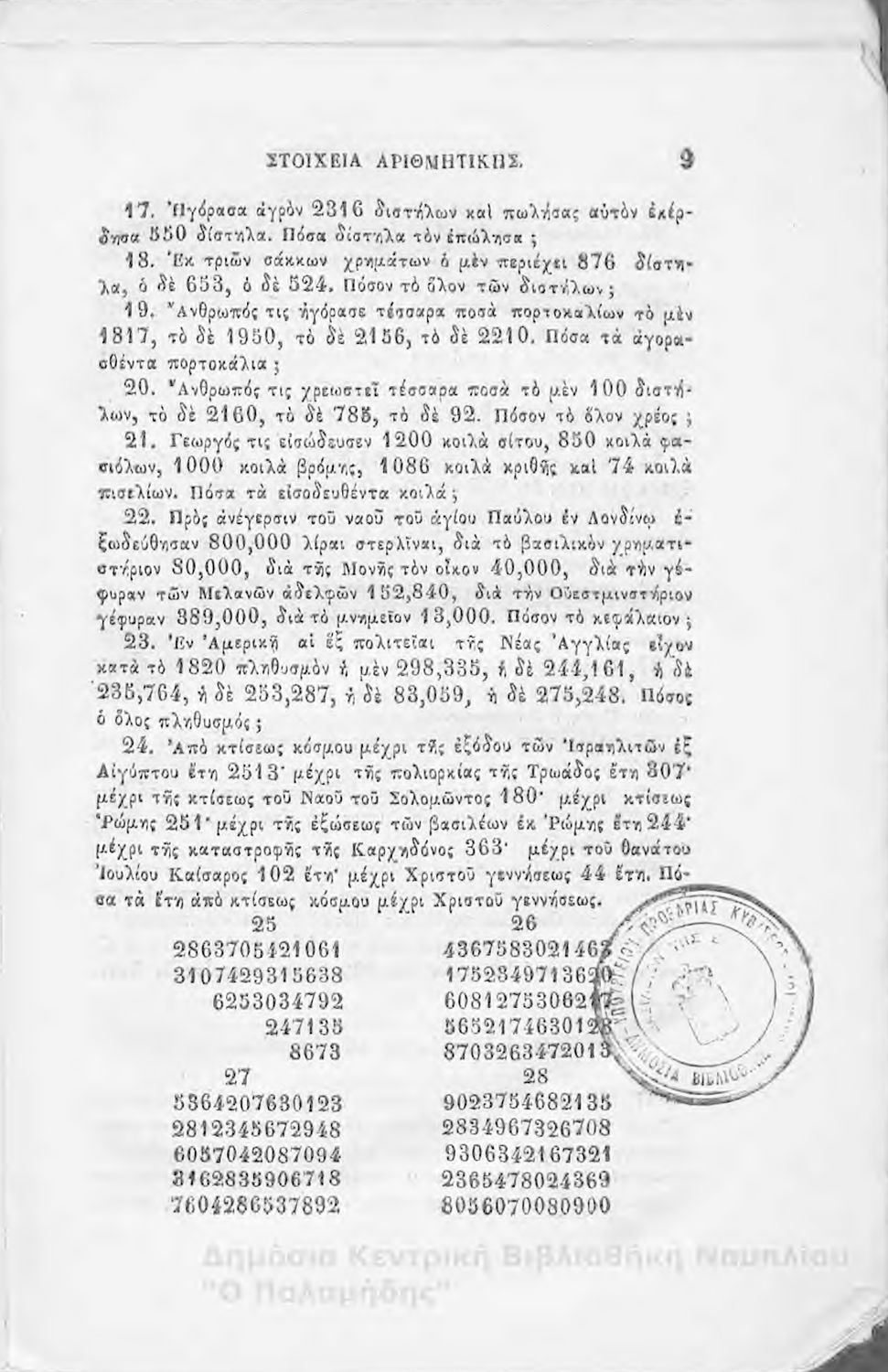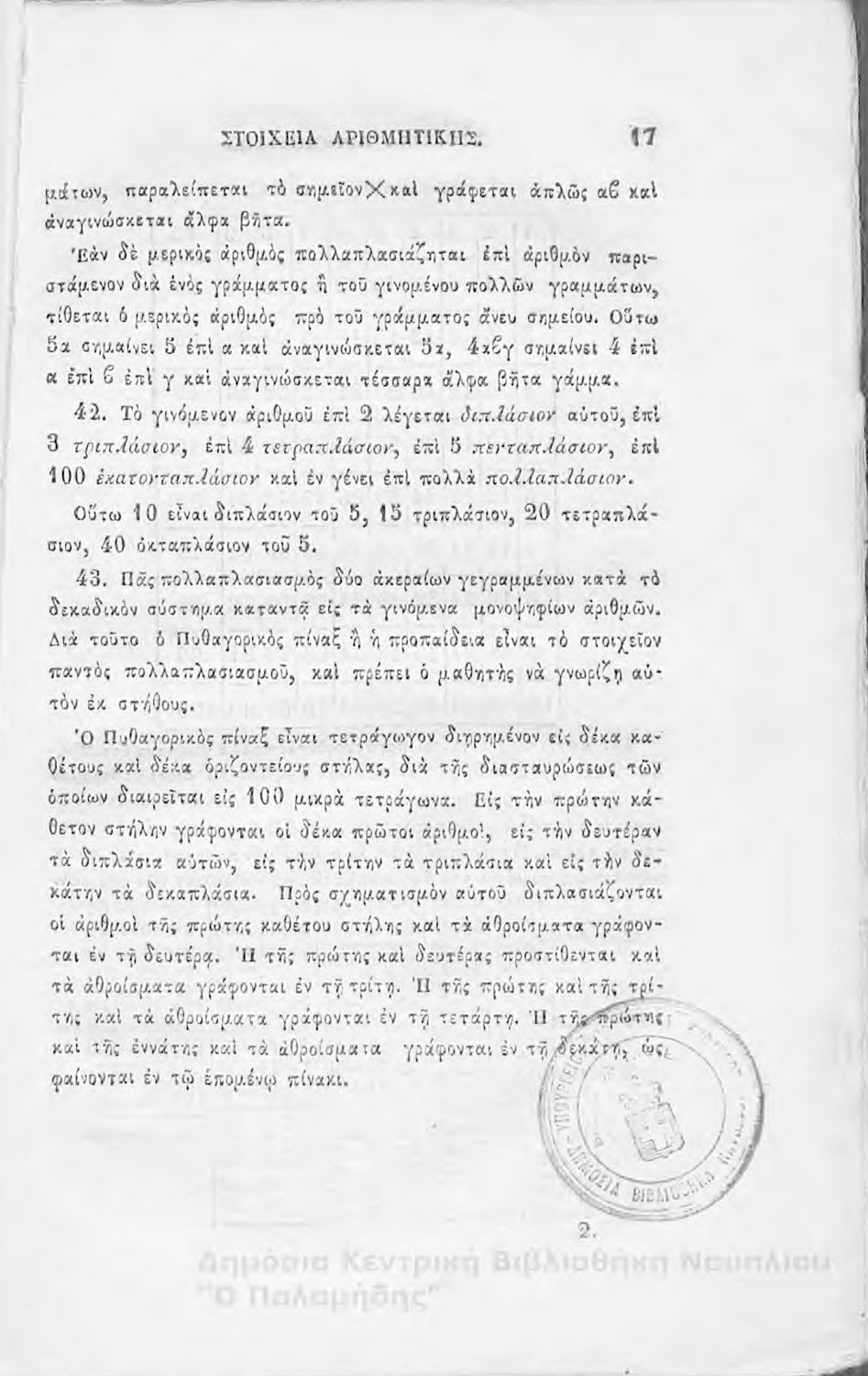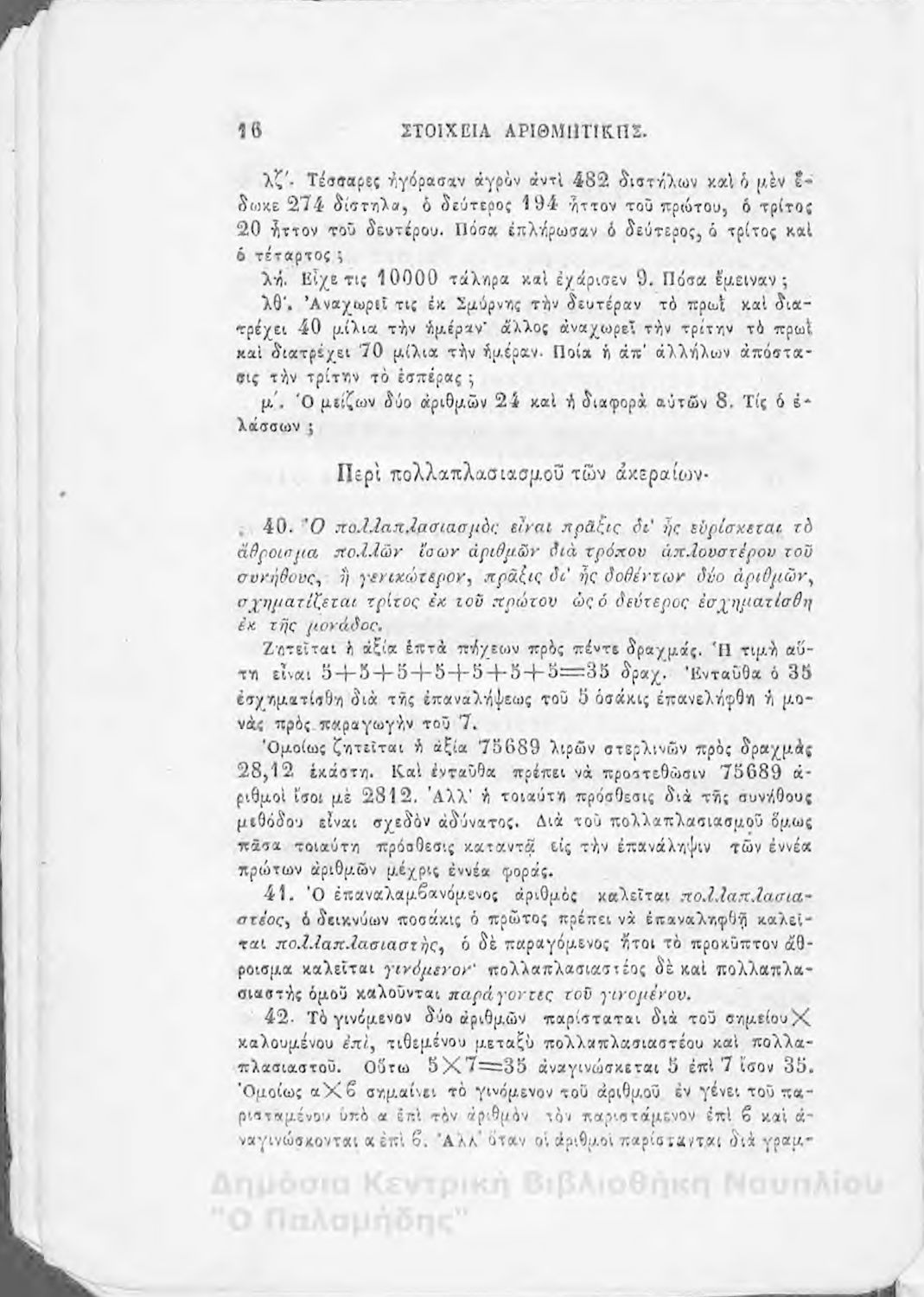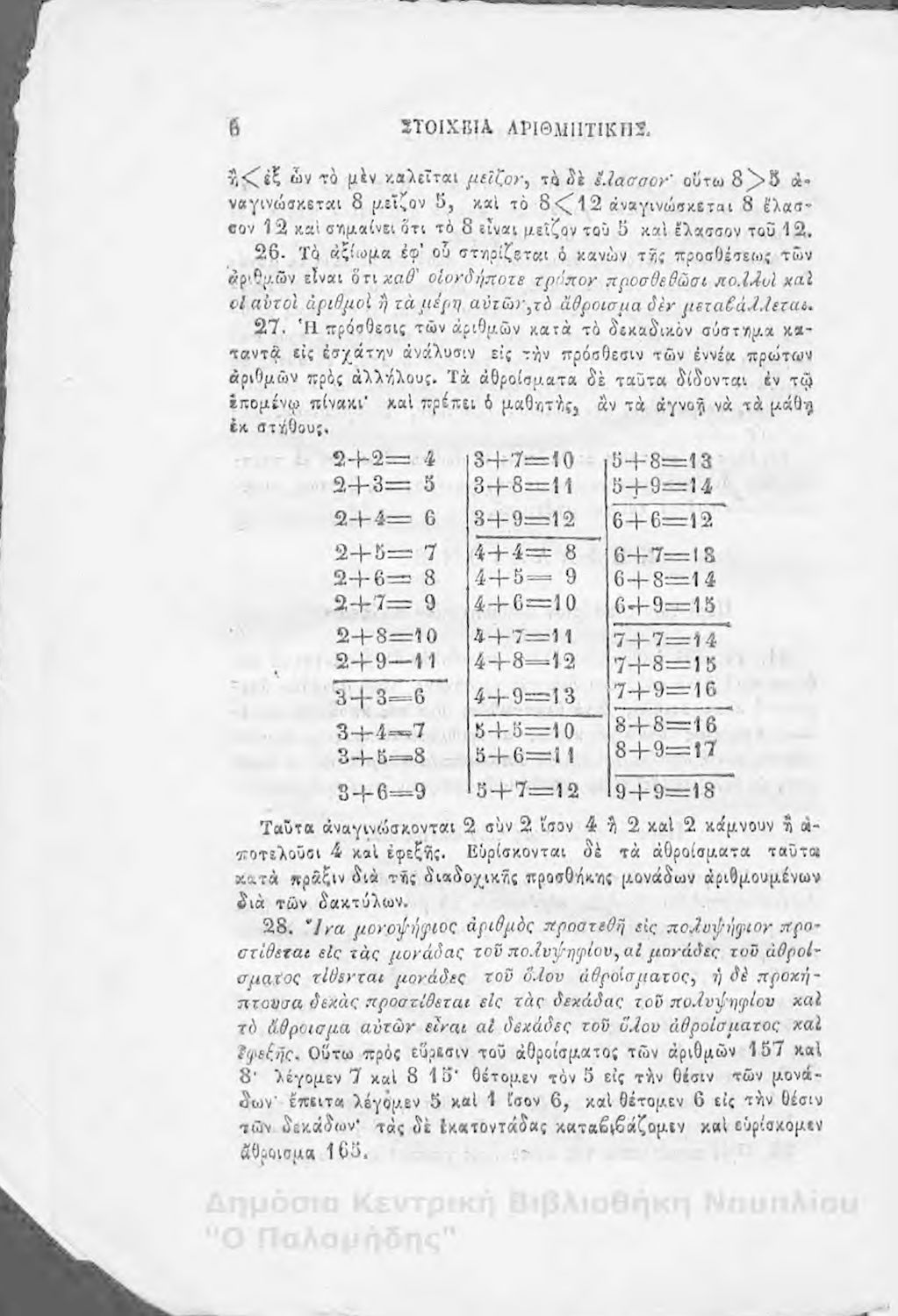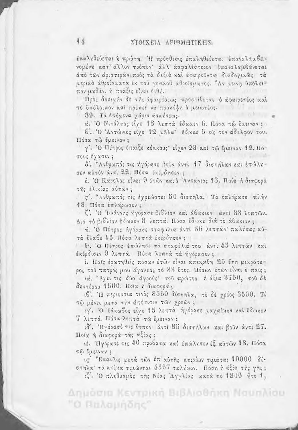 Τίτλος: Στοιχεία Αριθμητικής προς χρήσιν των Γυμνασίων