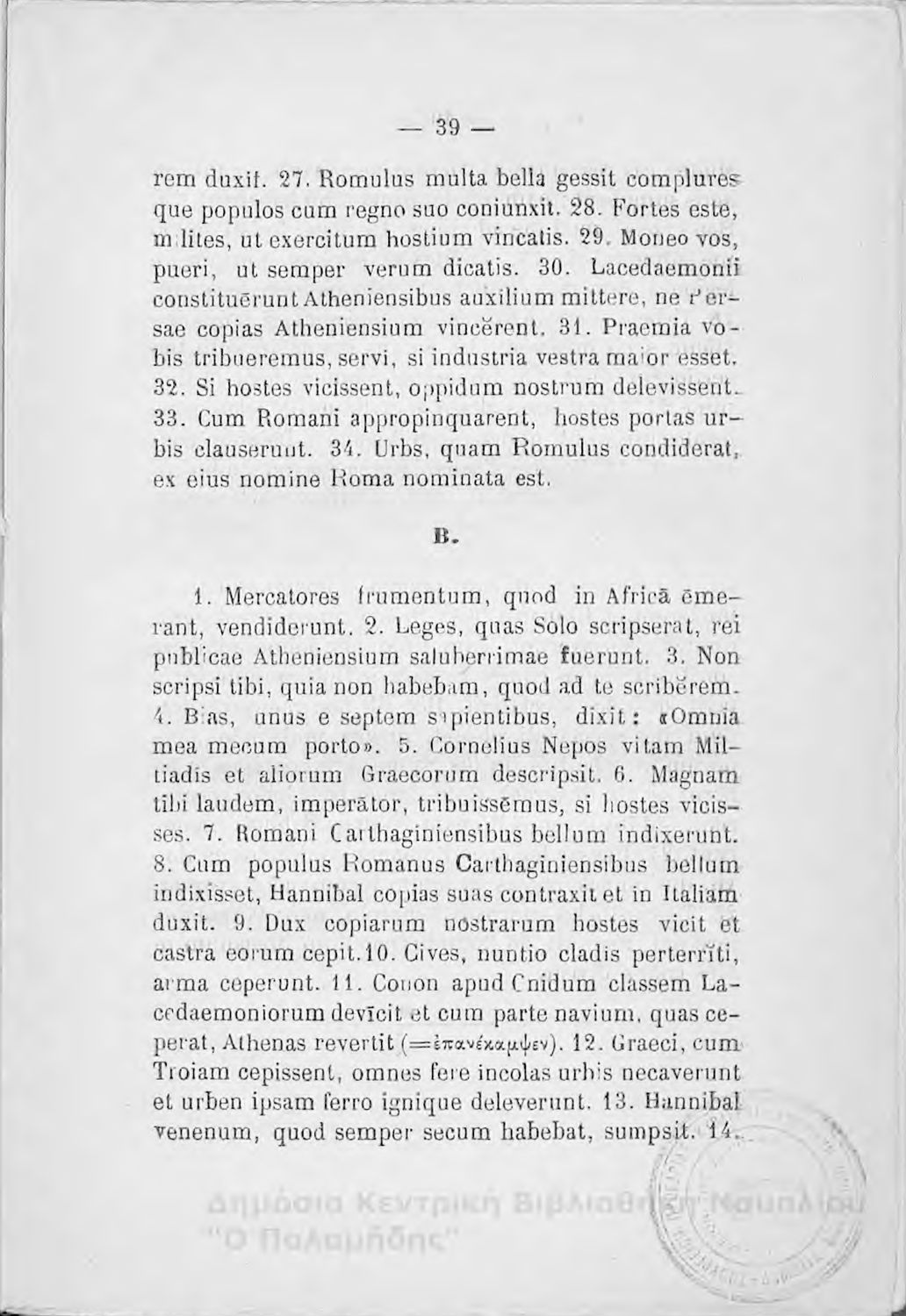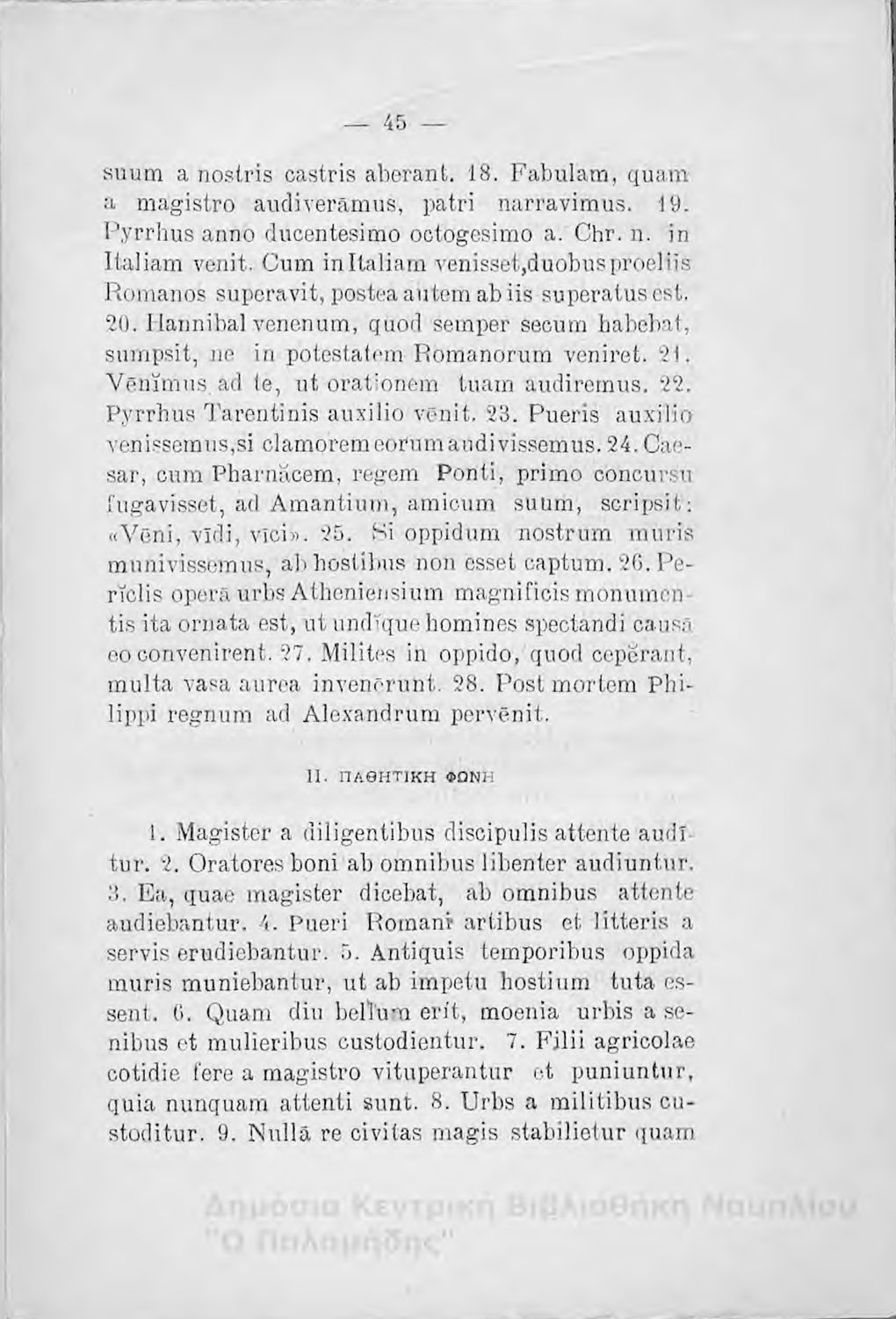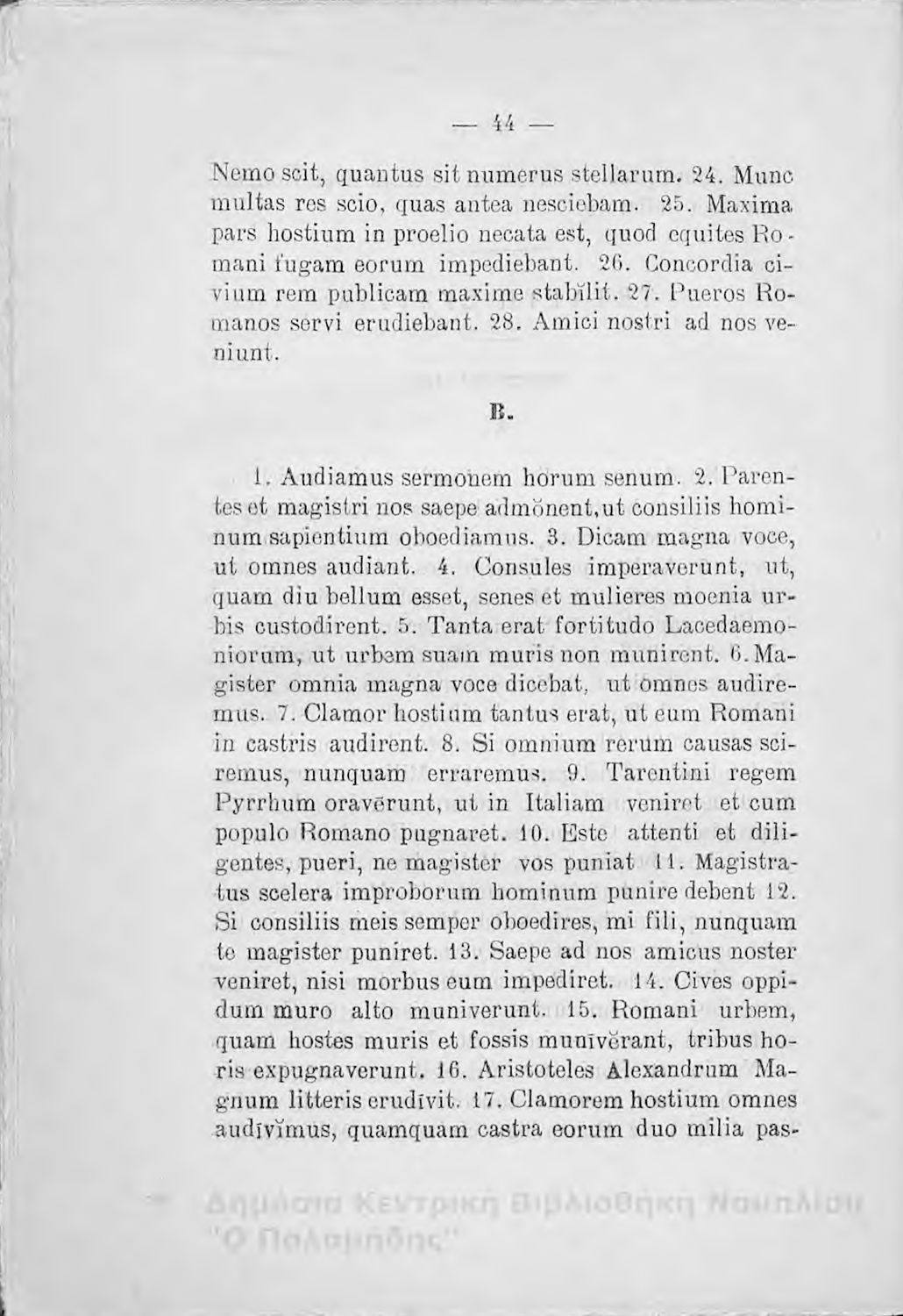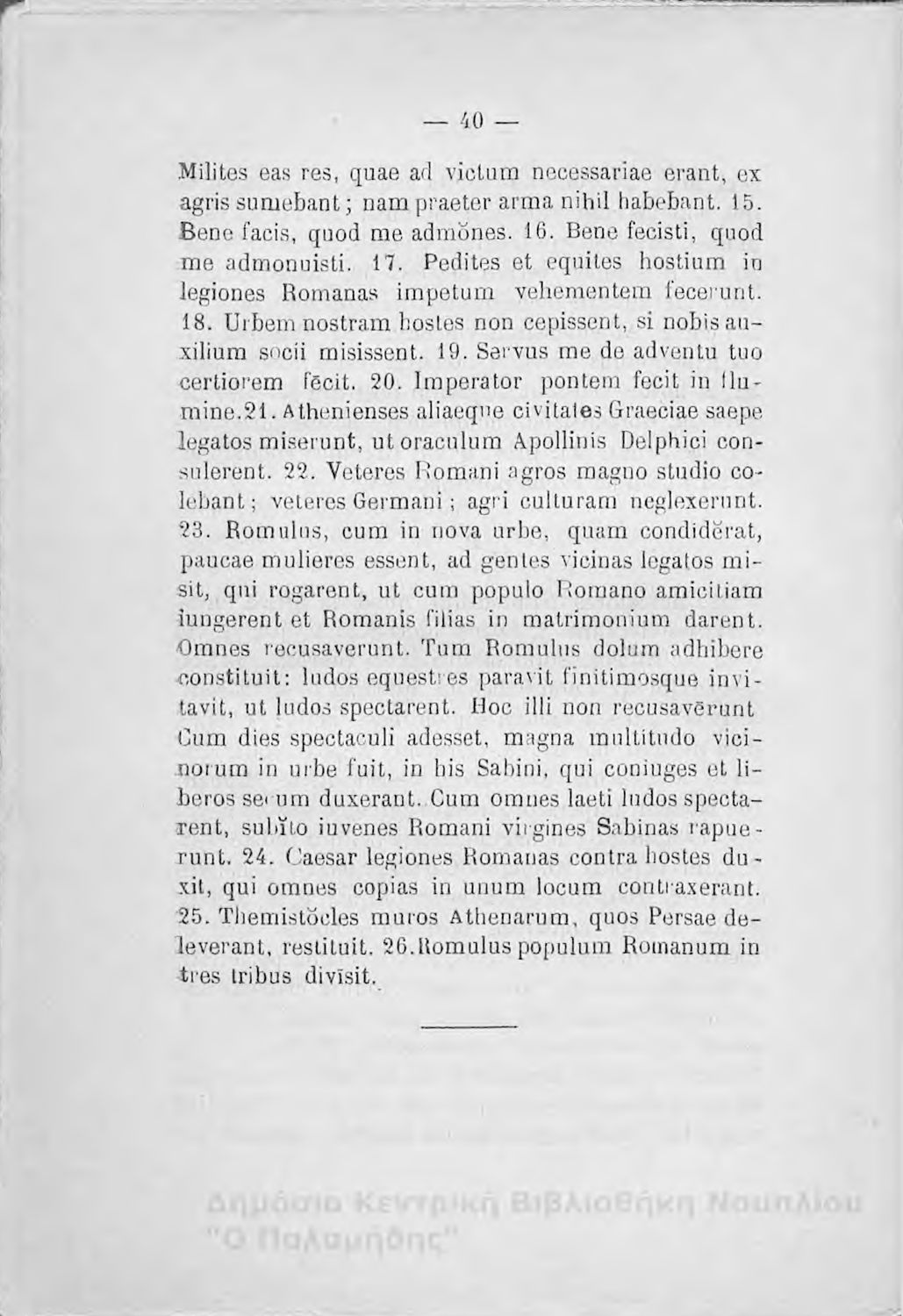 Βαθμίδα εκπαίδευσης: Δευτεροβάθμια Μάθημα: Λατινικά Γλώσσα: Λατινικά |