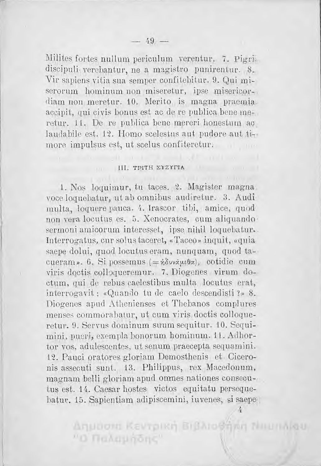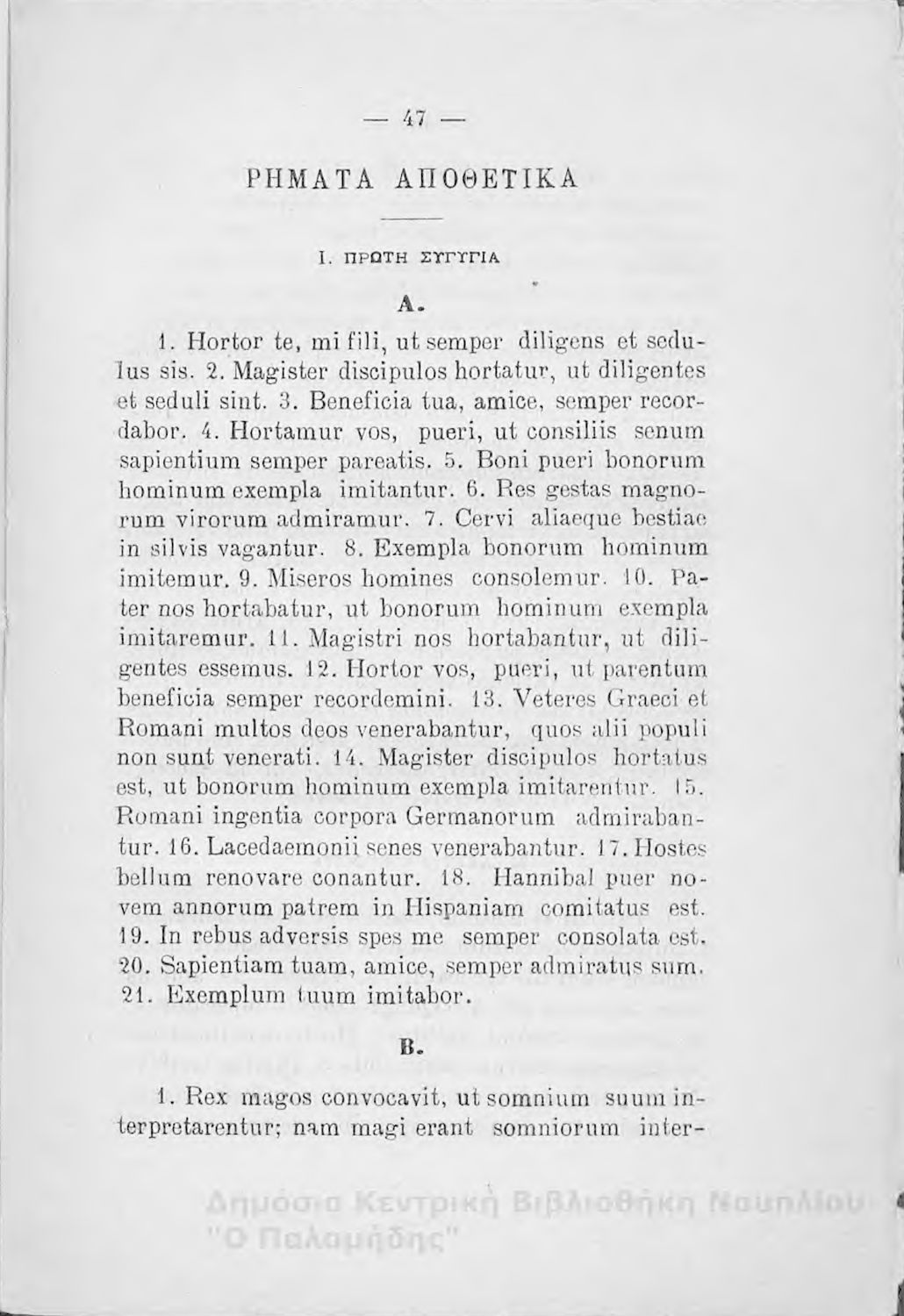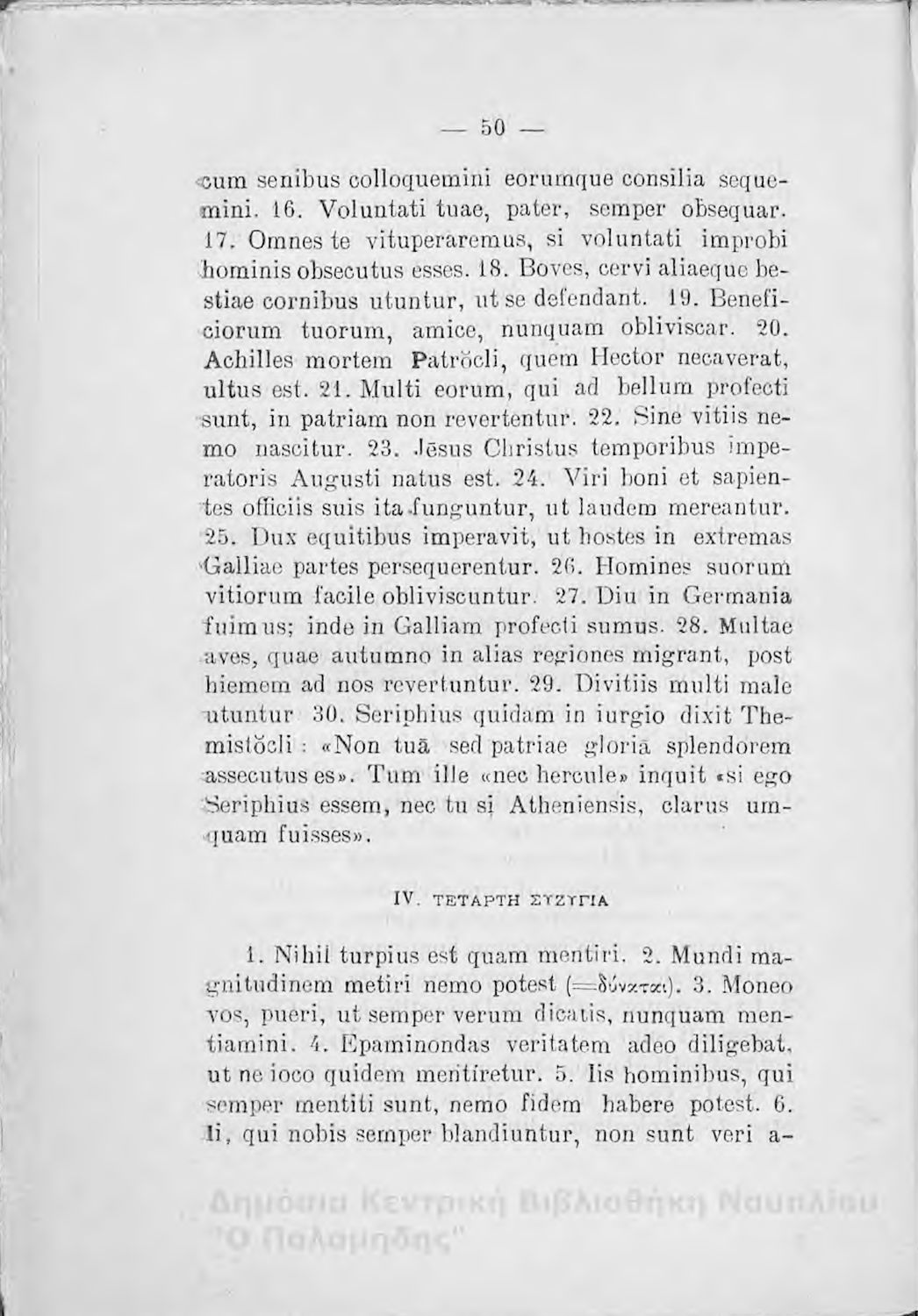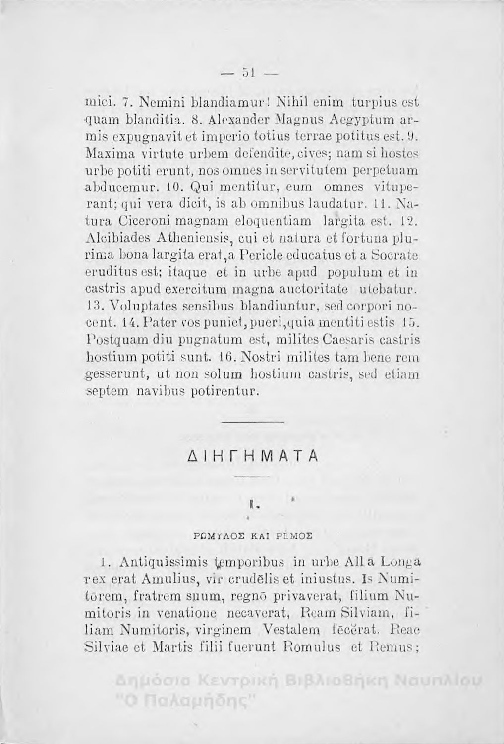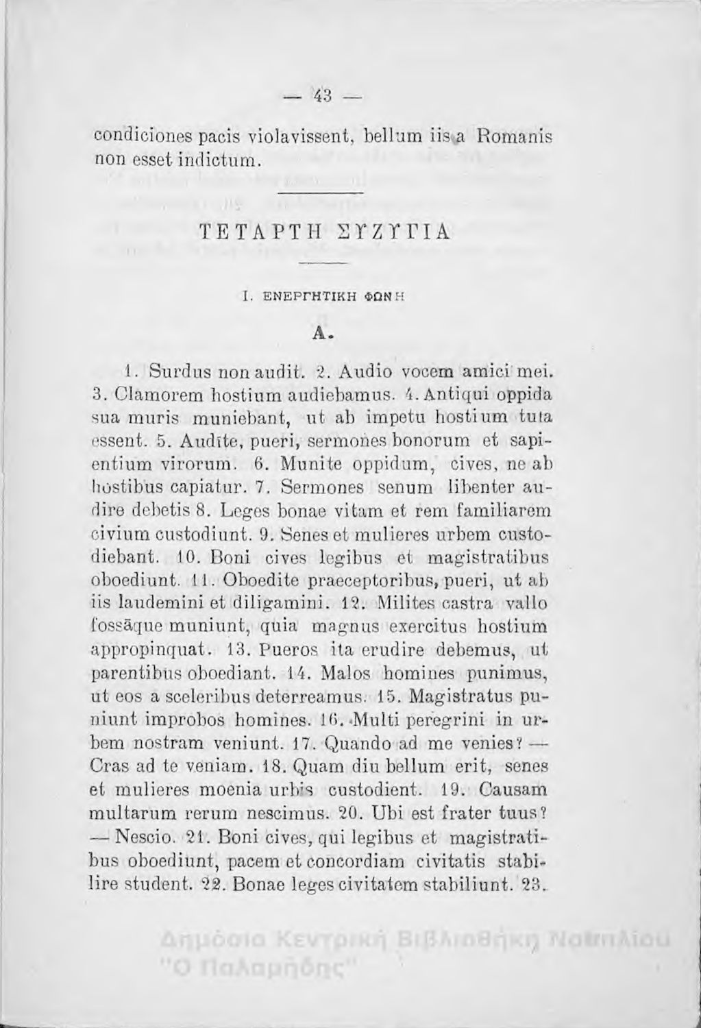 Βαθμίδα εκπαίδευσης: Δευτεροβάθμια Μάθημα: Λατινικά Γλώσσα: Λατινικά |
