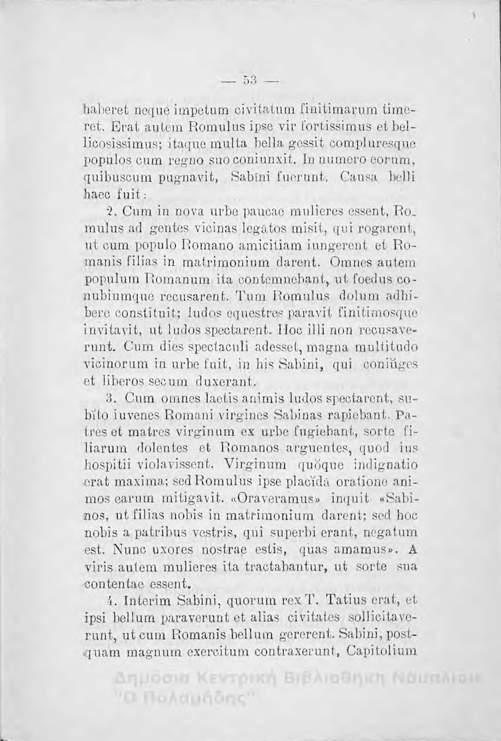 Κωδικός αναγνώρισης: 84-81182 Τίτλος: Λατινικόν αναγνωσματάριον: πρός χρήσιν των ελληνικών σχολείων Συγγραφέας: Σωτήριος Α. Σακελλαρόπουλος Μέγεθος και υπόστρωμα: Σχολικό εγχειρίδιο, 328 σελίδες. |