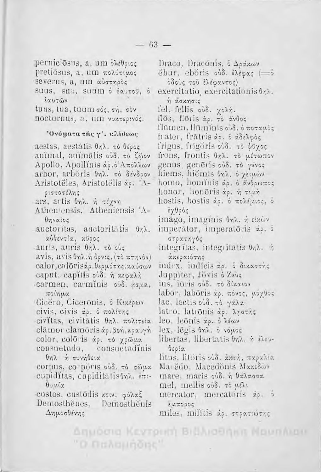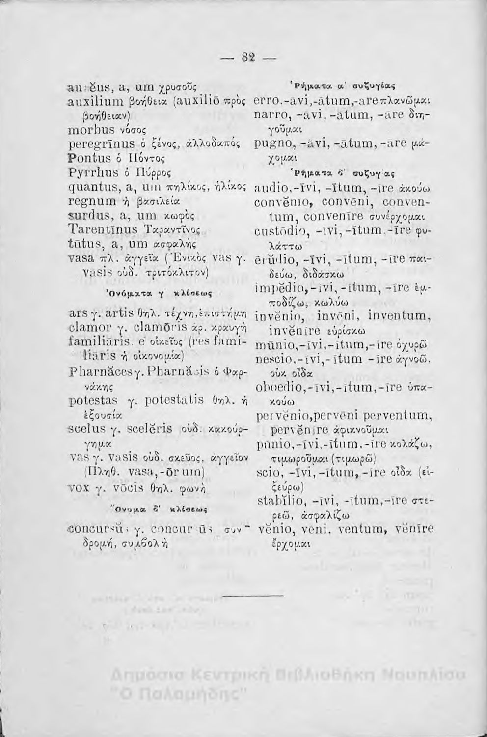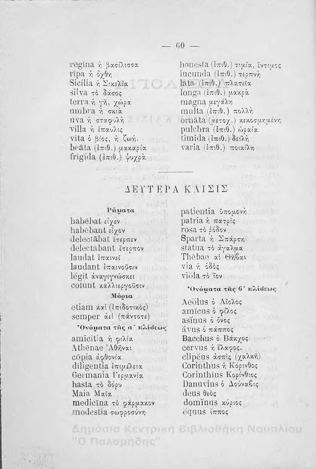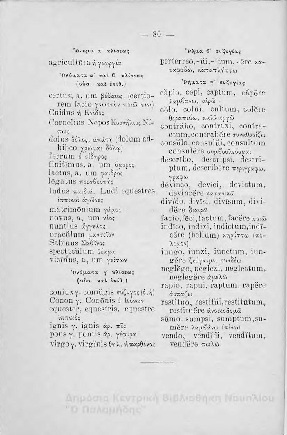 Σχολικό εγχειρίδιο Λατινικών που περιλαμβάνει γραμματική, συντακτικό, κείμενα και λεξιλόγιο.