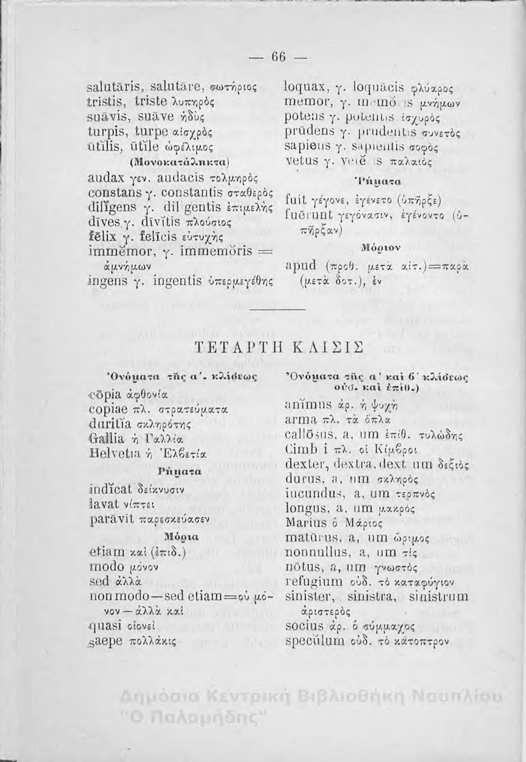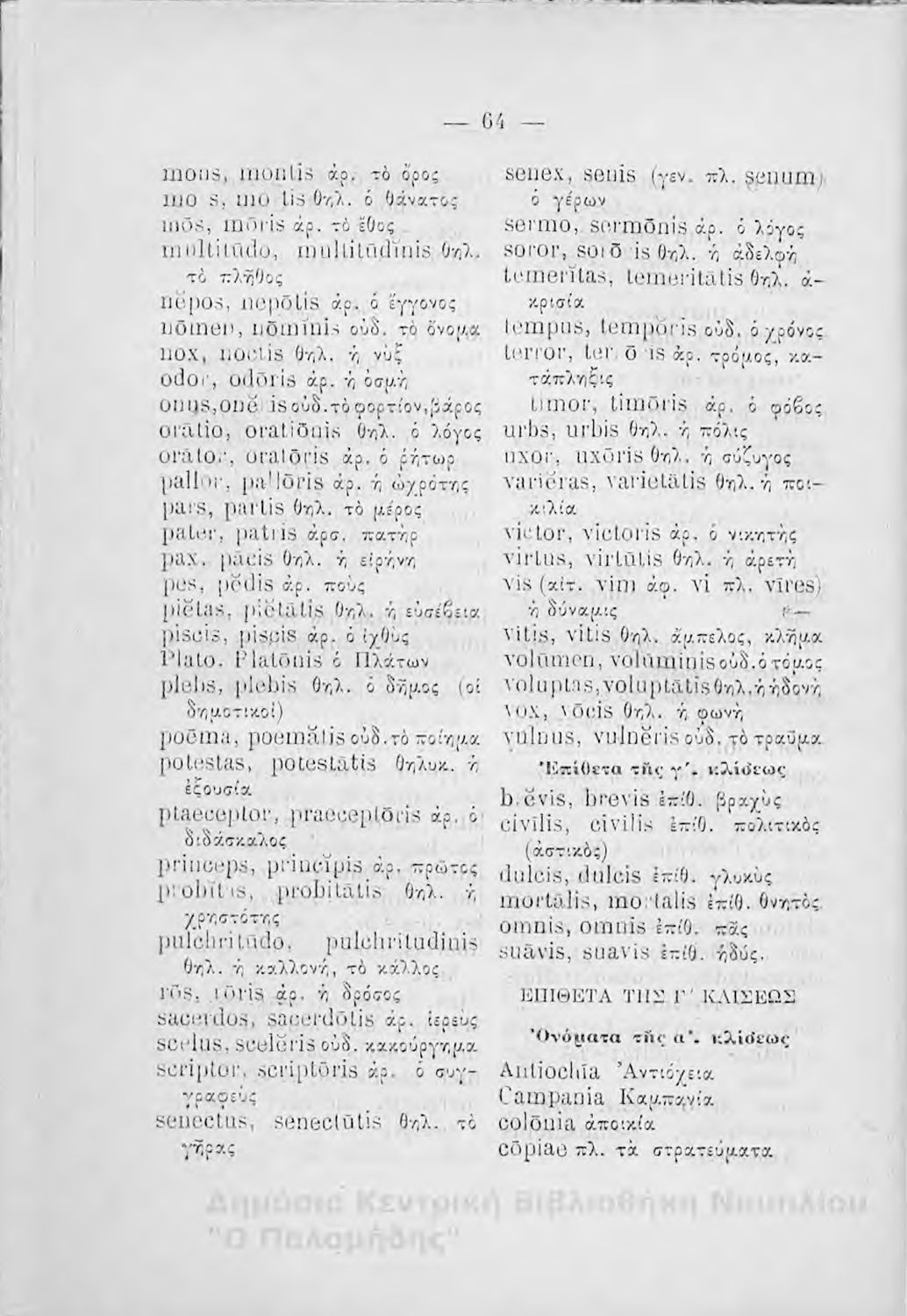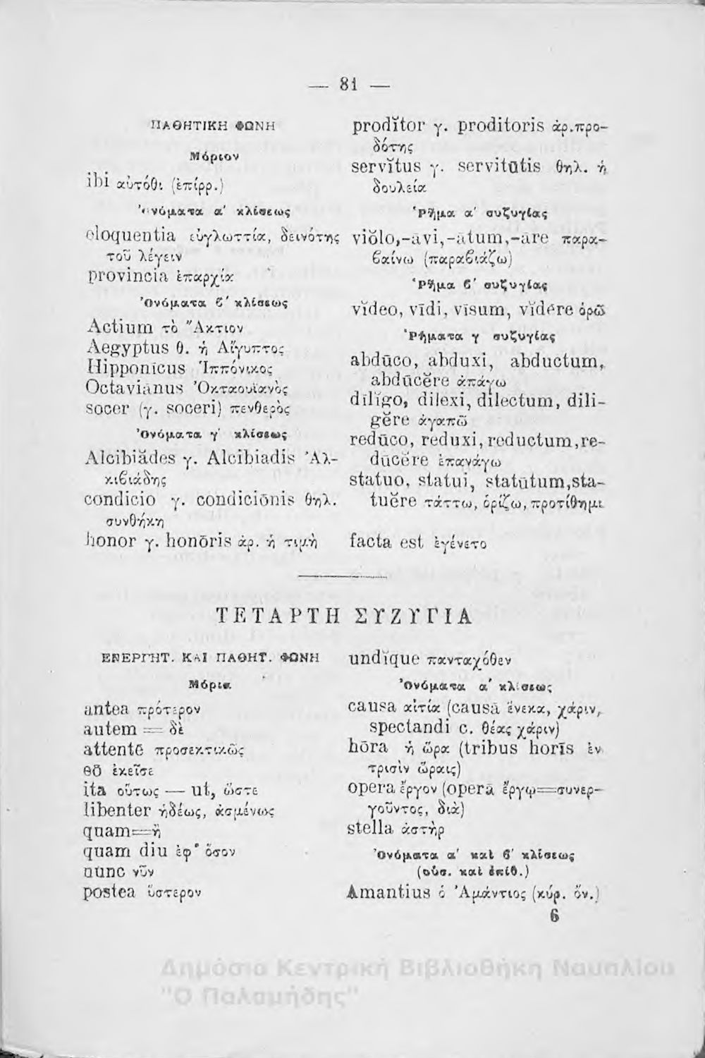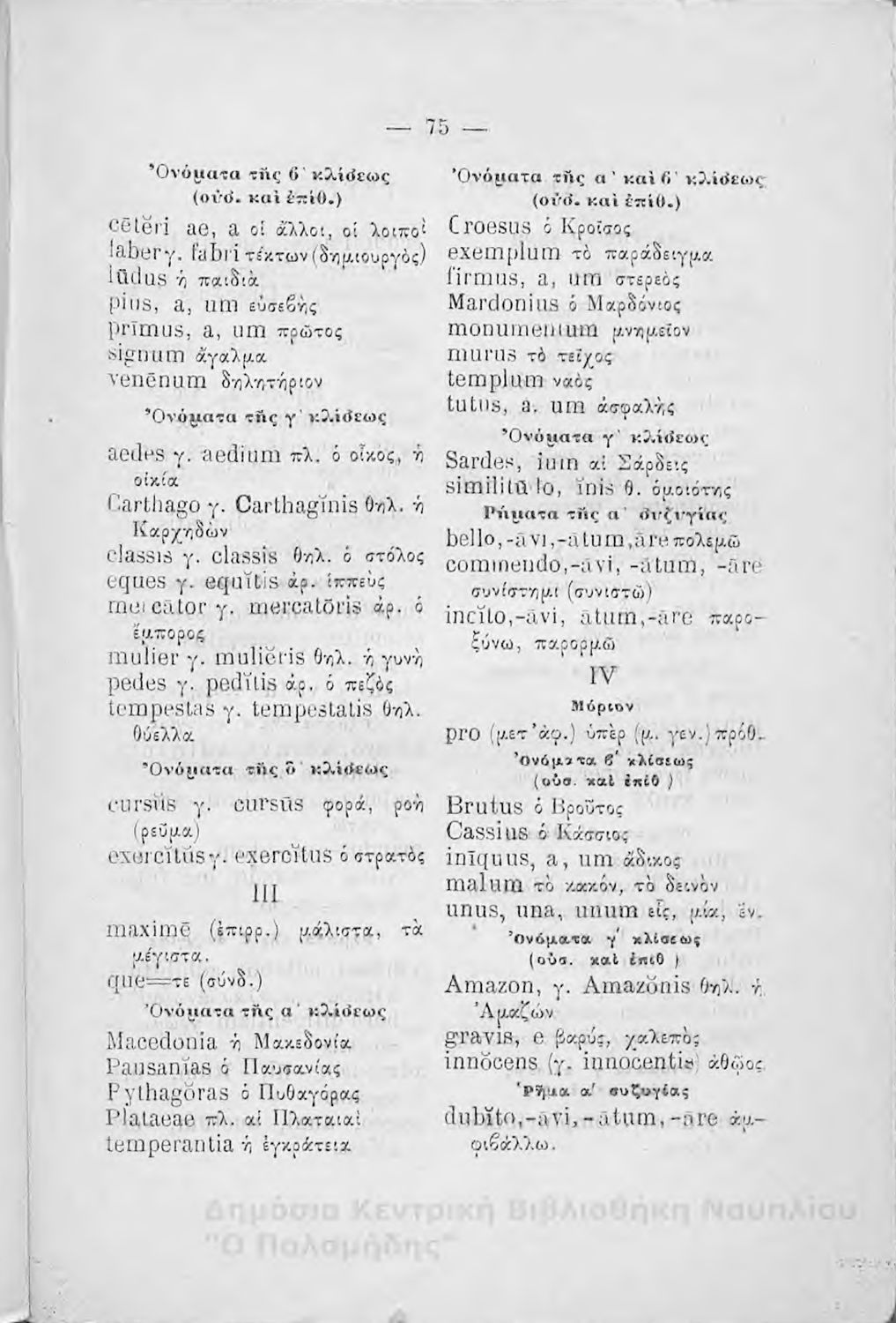 Σχολικό εγχειρίδιο Λατινικών για τα Ελληνικά Σχολεία που περιλαμβάνει τους γραμματικούς κανόνες.