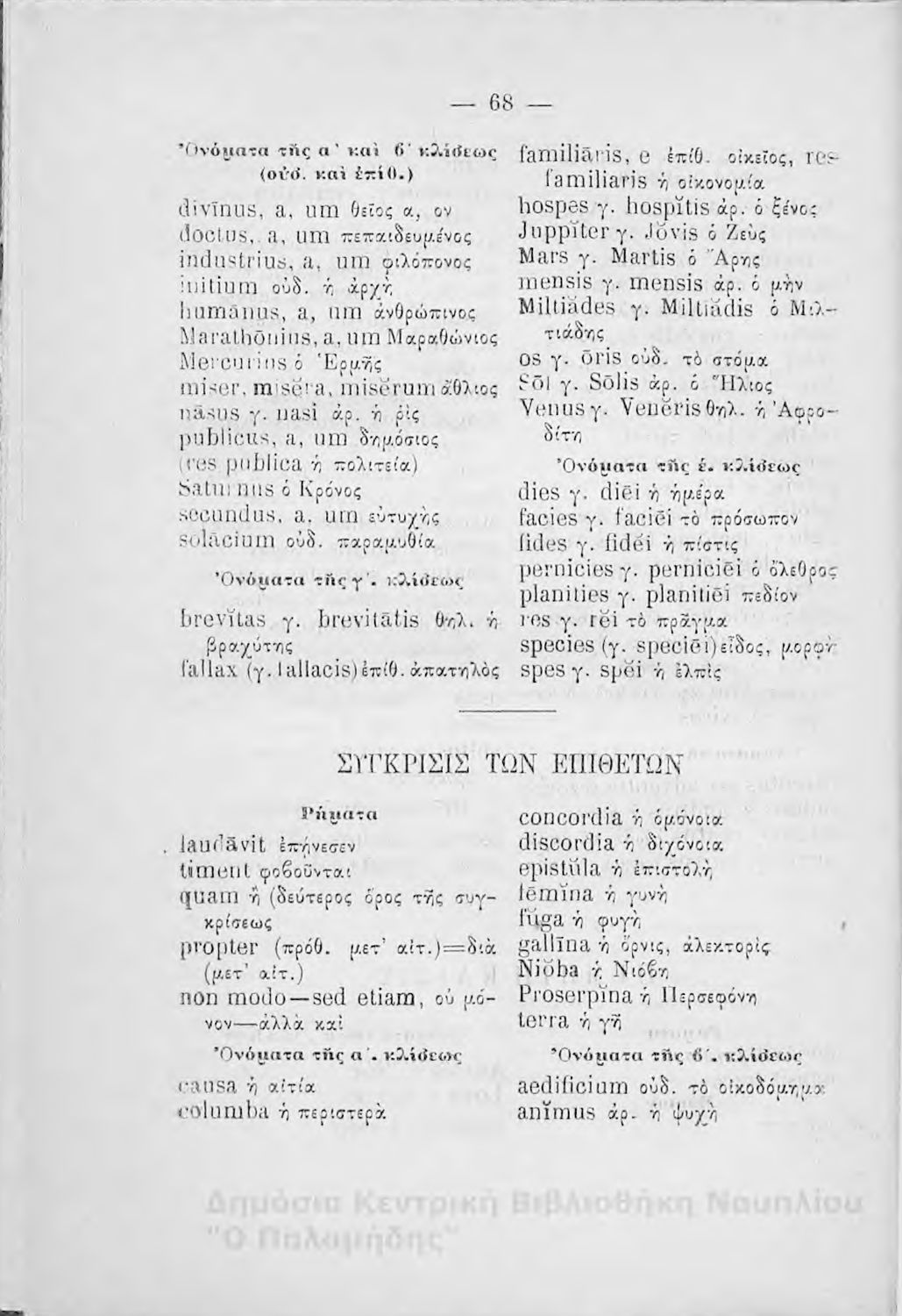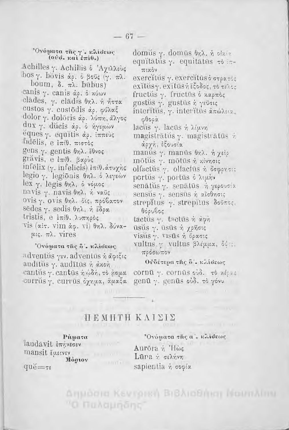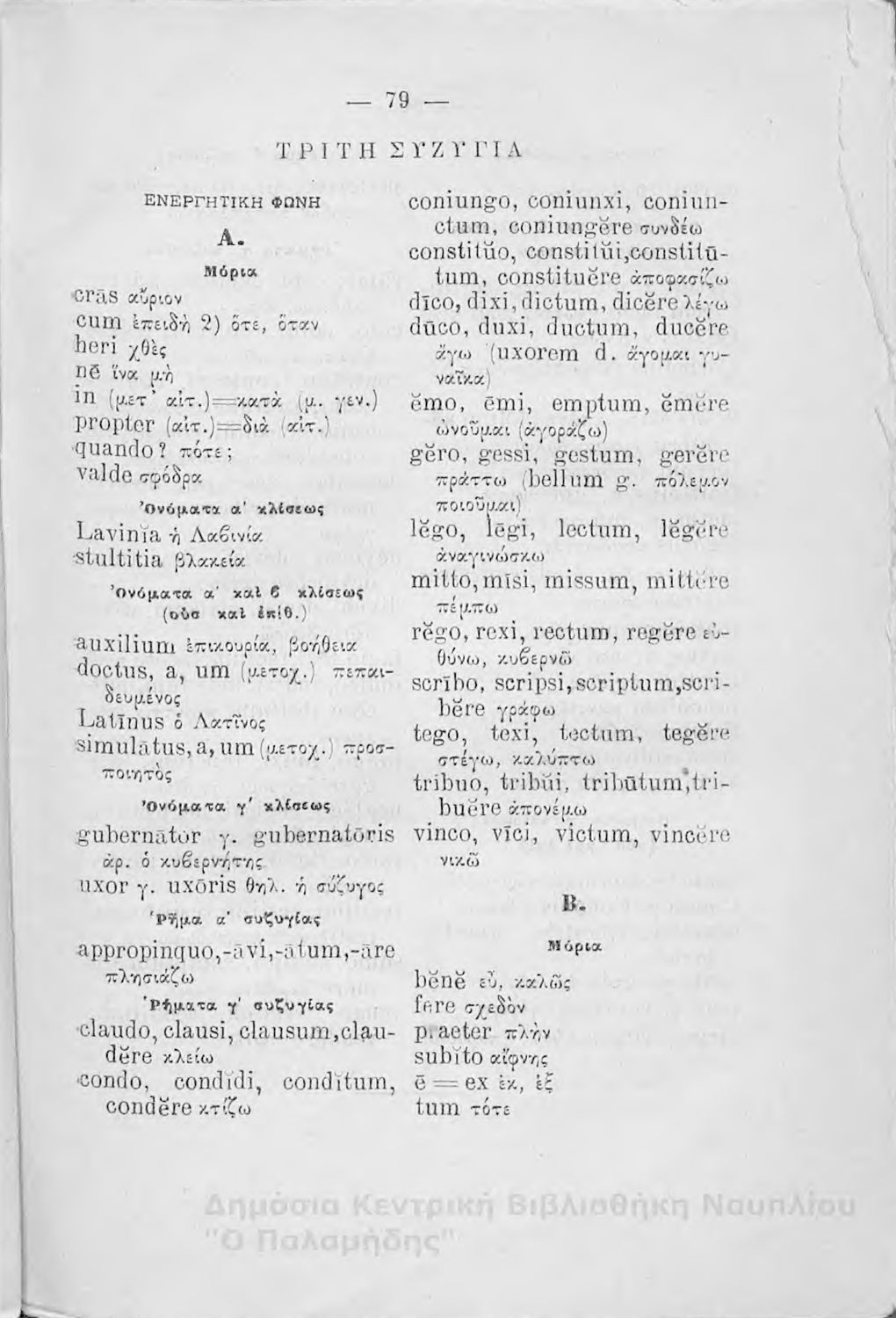 Σχολικό εγχειρίδιο Λατινικών για τα Ελληνικά Σχολεία που περιλαμβάνει τη γραμματική της λατινικής γλώσσας.